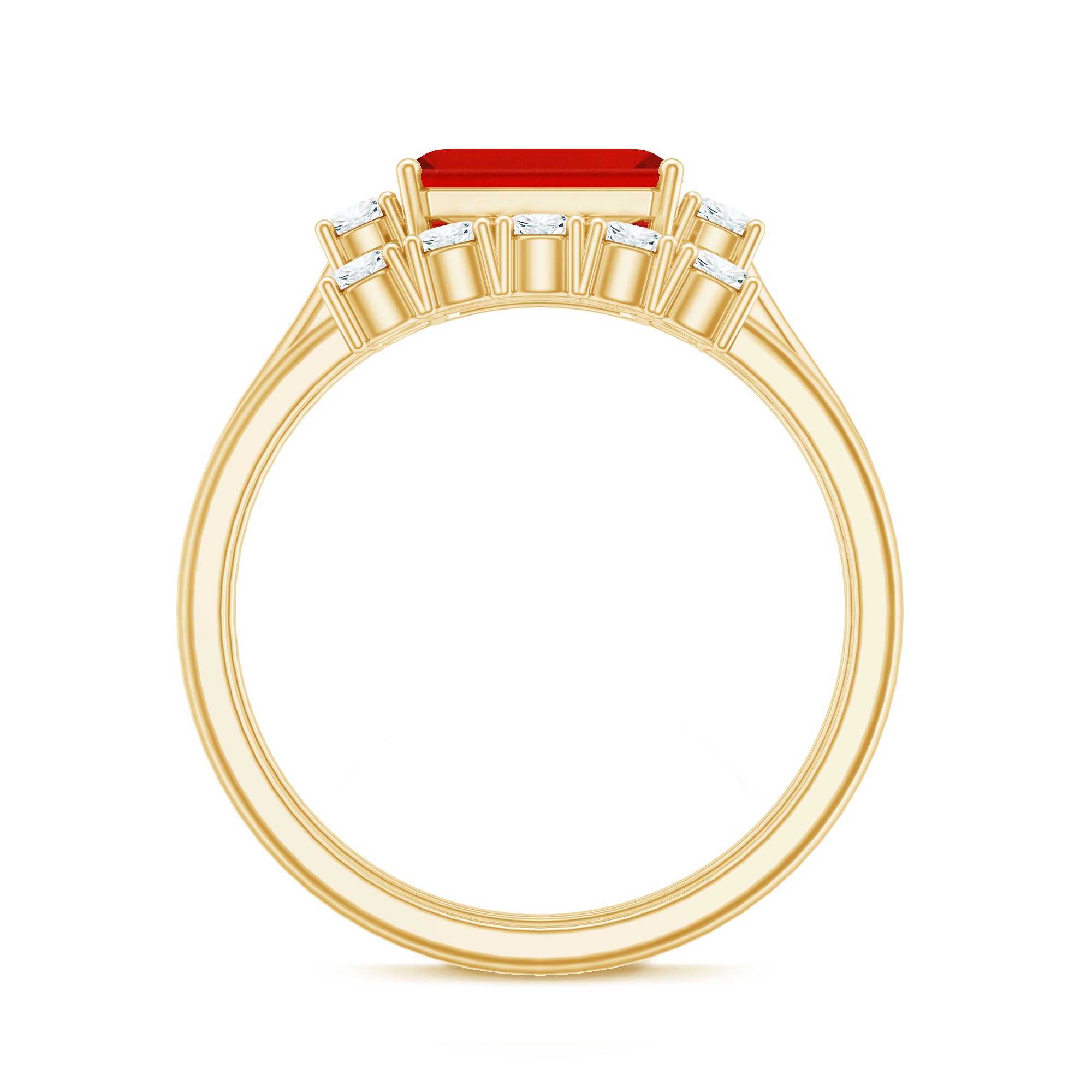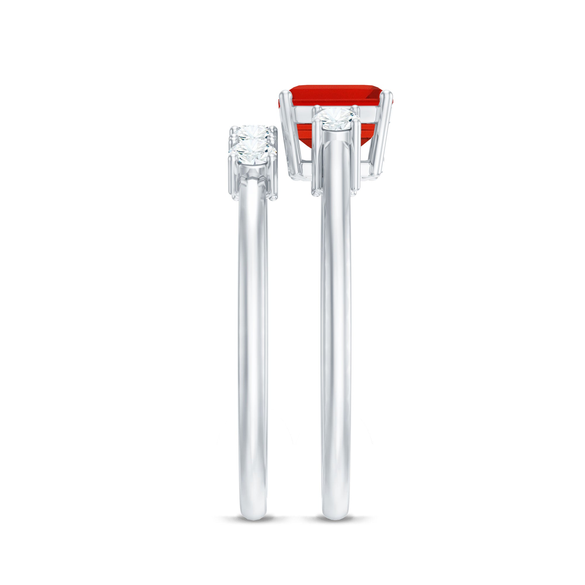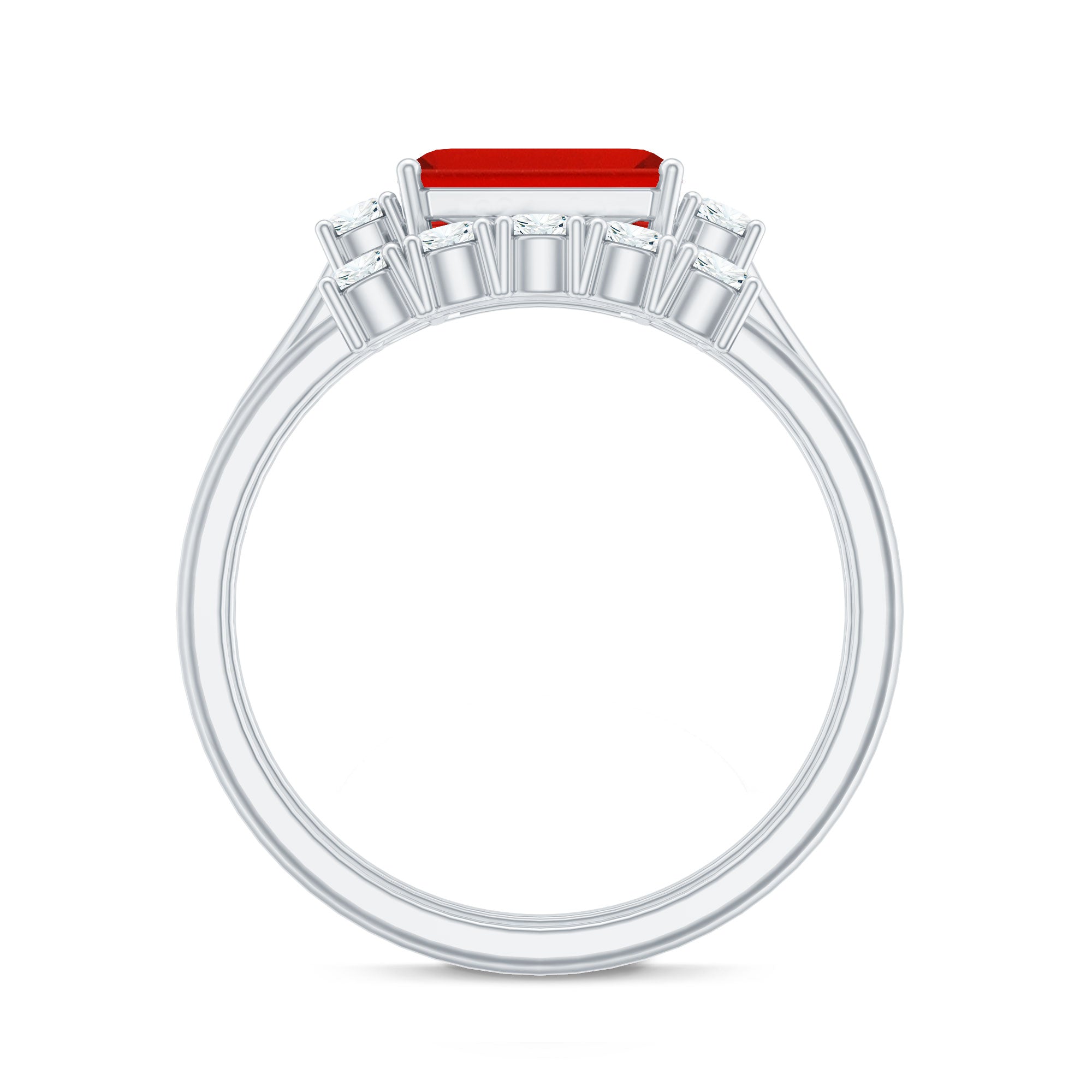 The Emerald Cut Fire Opal in Prong Setting with Moissanite as on the band of Bridal Ring Set makes a unique piece for that special moment of your life.