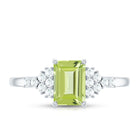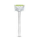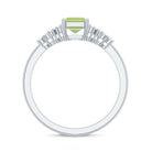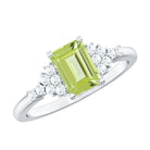 Emerald Cut Peridot and Diamond Solitaire Engagement Ring