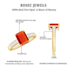 Emerald Cut Real Fire Opal Solitaire Engagement Ring with Diamond