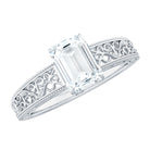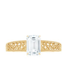 Certified Emerald Cut Moissanite Filigree Engagement Ring for Women