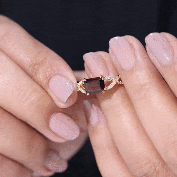 Make your special day unforgettable with this Emerald Cut Engagement Ring in a stunning East West style, a design that dares to be different while staying effortlessly elegant. The vibrant red 6X8 mm Garnet of Emerald Cut, set horizontally in Double Prong Setting, shines with a bold and modern charm that symbolizes passion and everlasting love. Its emerald cut catches the light with every movement, while the sparkling Diamond Crossover Shank wraps around it in a graceful embrace, reflecting unity and devotion. Together, they create a mesmerizing harmony of fire and brilliance, a perfect representation of two souls intertwined. Handcrafted with care, this Garnet Diamond Ring offers a balance of sophistication and sentiment, making it a breathtaking choice for engagements or romantic milestones. Presented in a signature jewelry box, this East West Engagement Ring arrives ready to capture hearts and mark the most precious moments of life. Available in various ring sizes, this Emerald Cut Garnet Ring is a lasting promise, a celebration of love and a treasure meant to shine forever.
