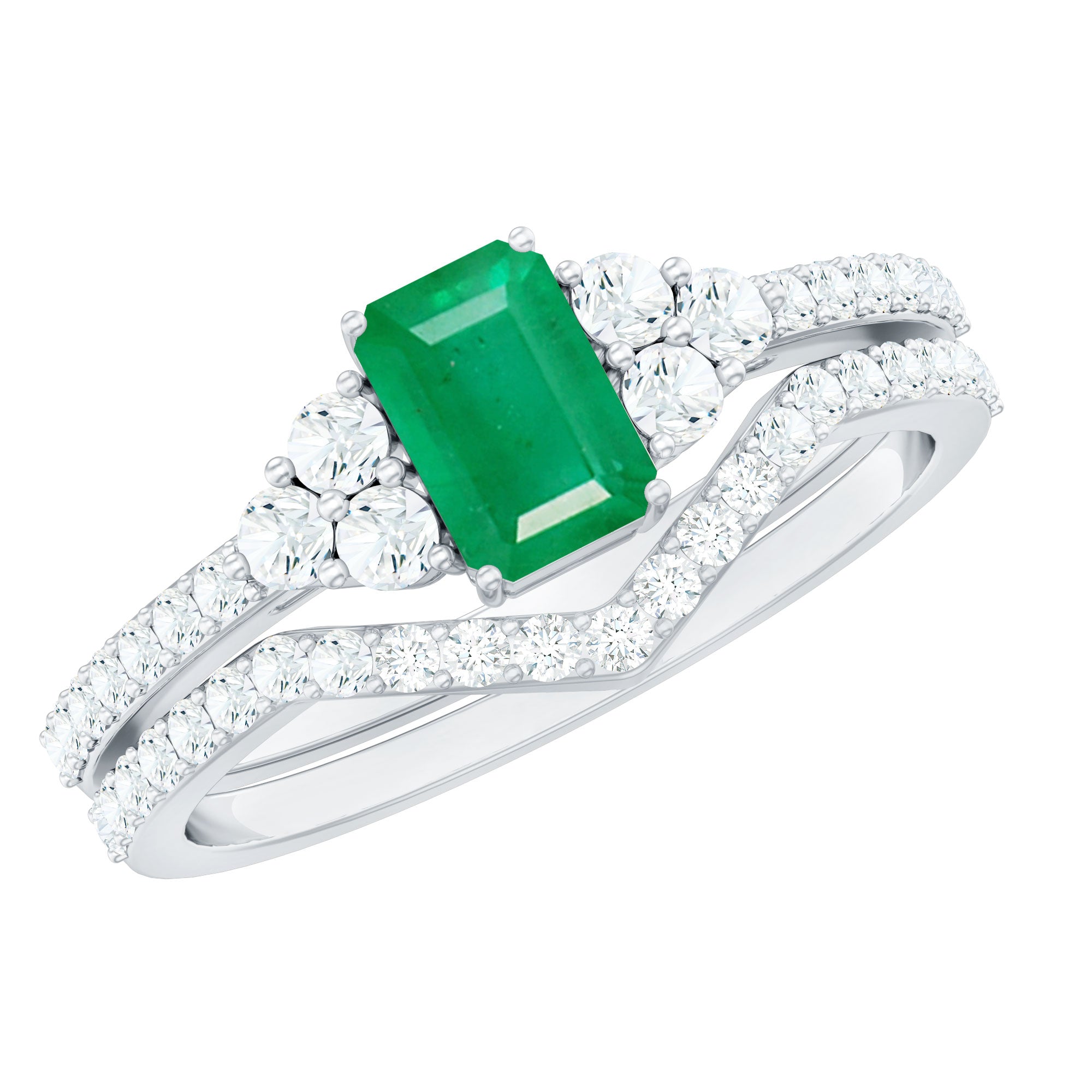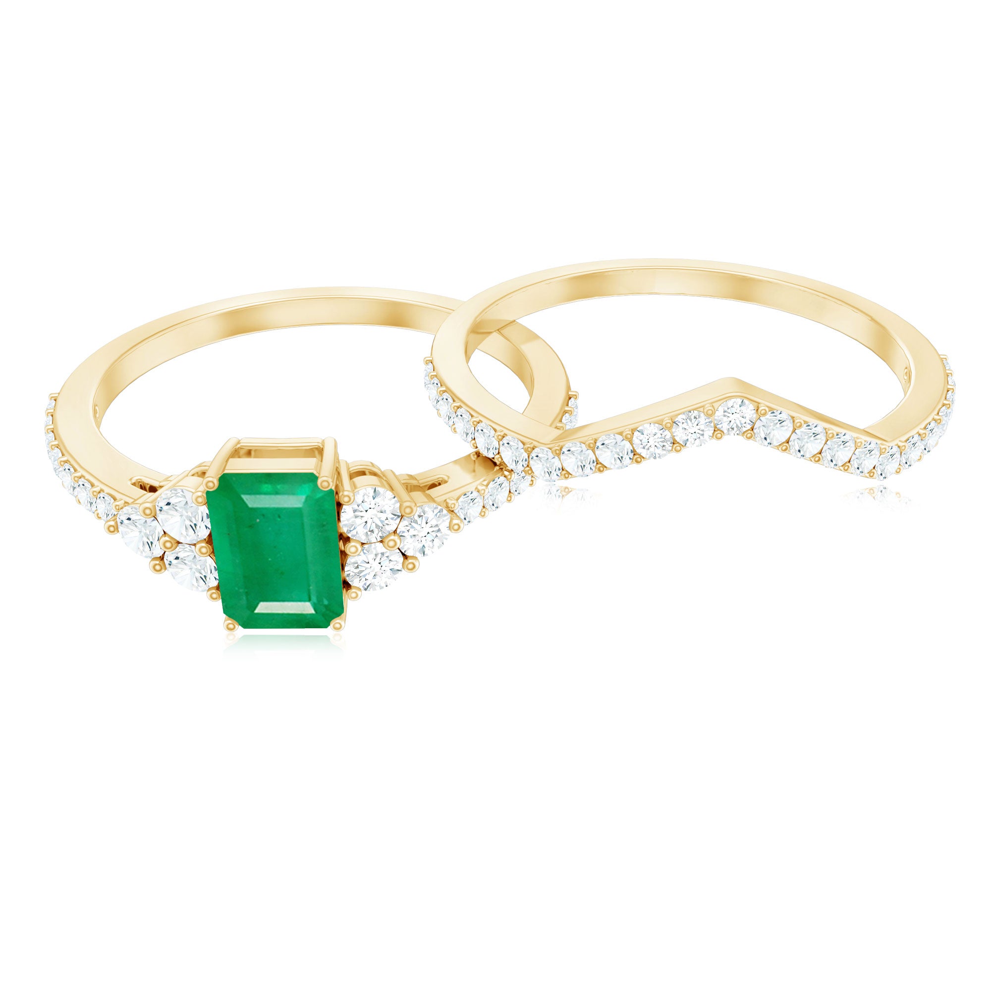 Genuine Emerald Cut Emerald Diamond Bridal Ring Set of 2