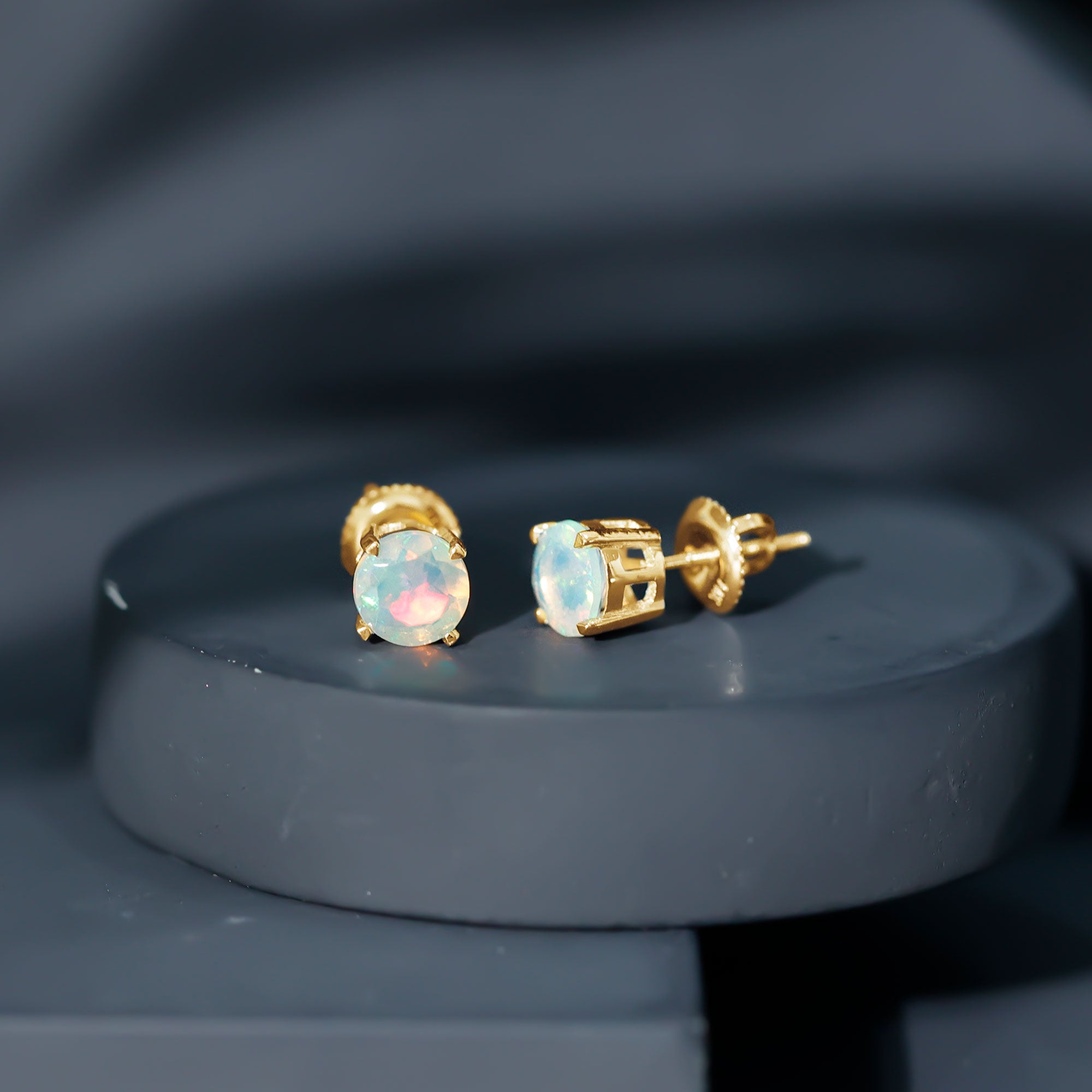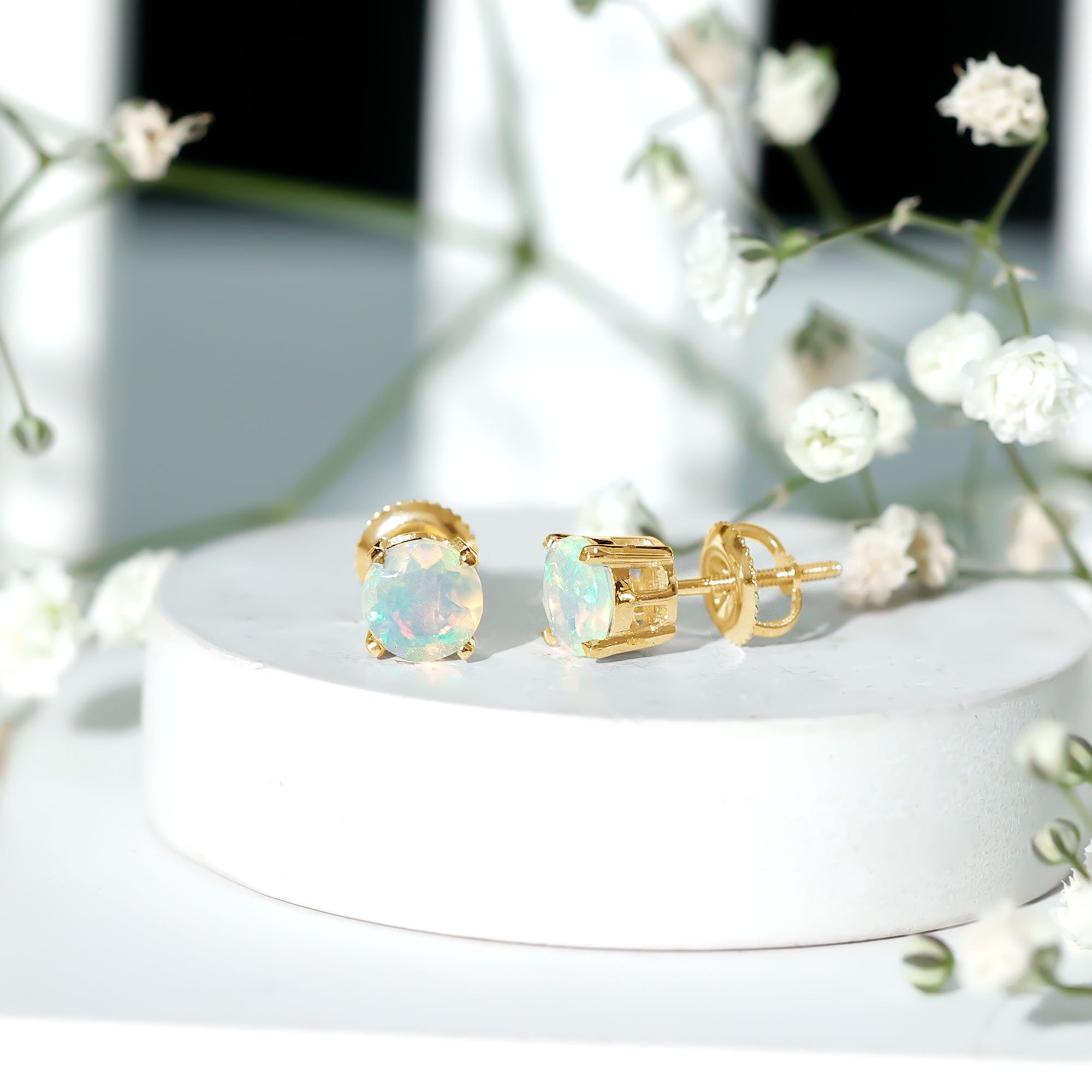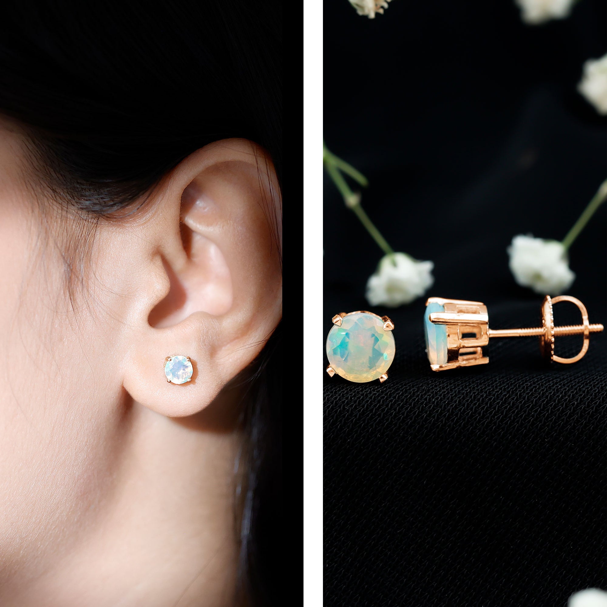 Infuse a touch of enchantment into your jewelry collection with these Ethiopian Opal Earrings. Each earring showcases a 6 MM Round Shape Ethiopian Opal set in claw setting, meticulously chosen for its vivid color and clarity. The Screw Back Closure guarantees a secure and comfortable fit throughout the day. As the birthstone for October, Opal represents creativity, love, and emotional balance, making these Opal Stud Earrings a heartfelt gift for a loved one or a delightful treat for yourself. Whether you are marking a birthday, an anniversary, or simply seeking something distinctive, these Solitaire Studs are a classic choice. Absolutely gorgeous, these Everyday Earrings provide just the right touch of sparkle for both daily outfits and special events. Pair them with your favorite necklace or let them dazzle on their own, they are sure to attract attention. Delivered in an elegant jewelry box, these October Birthstone Earrings are set to impress. From romantic gestures to thoughtful surprises, they are a lovely way to express your affection. These Real Opal Earrings will become your new favorite for adding a sprinkle of everyday magic.