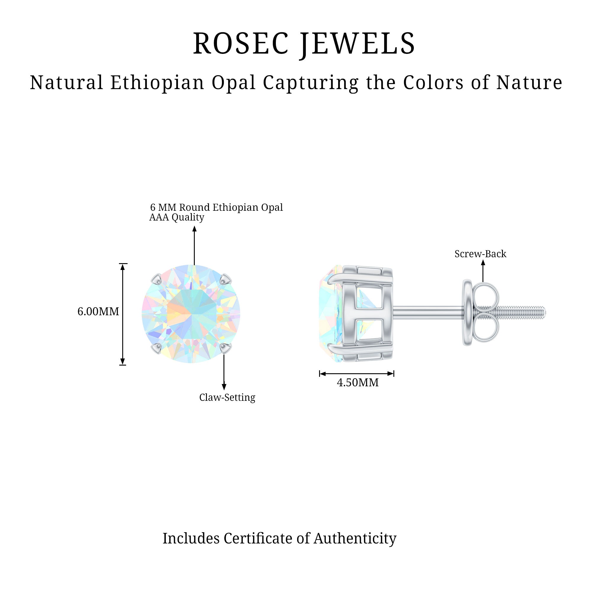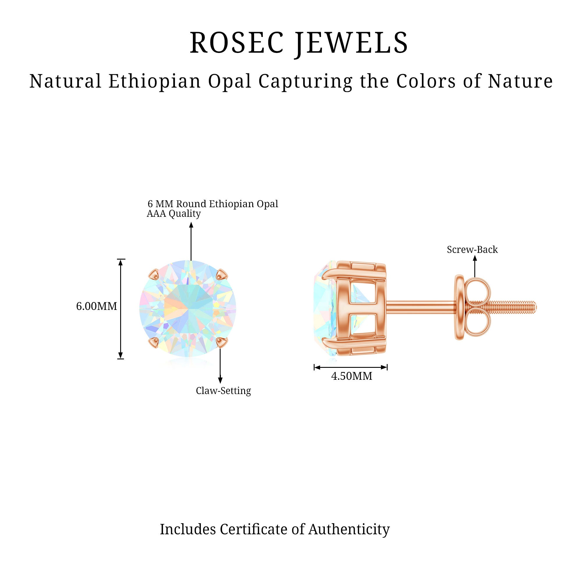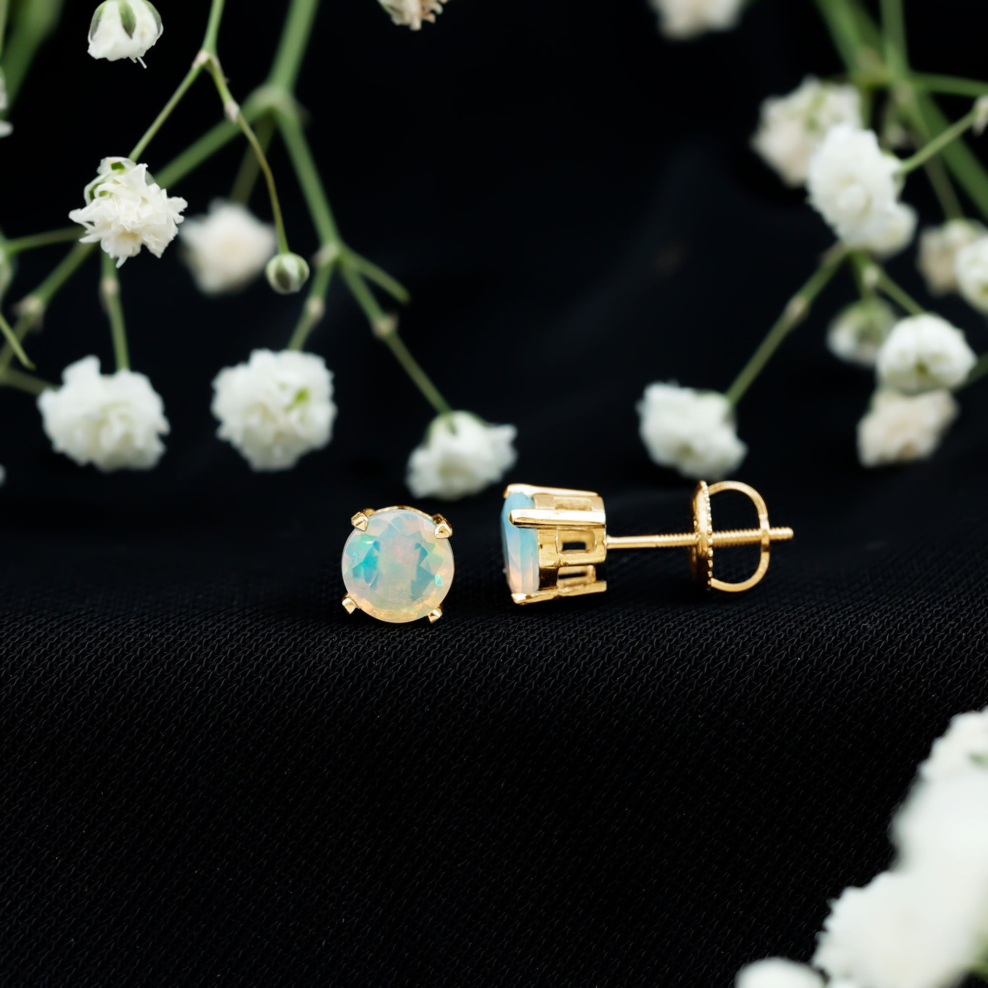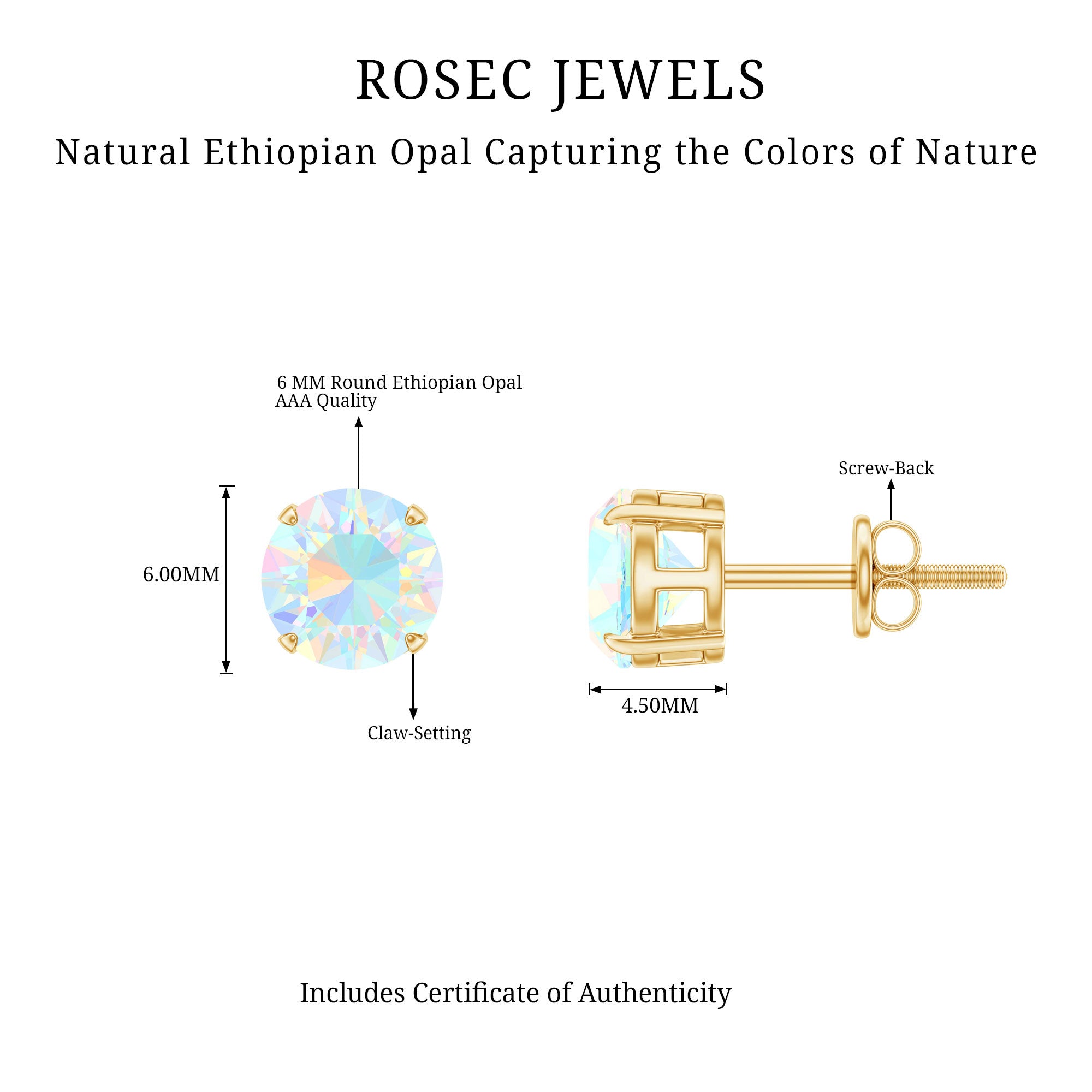 Infuse a touch of enchantment into your jewelry collection with these Ethiopian Opal Earrings. Each earring showcases a 6 MM Round Shape Ethiopian Opal set in claw setting, meticulously chosen for its vivid color and clarity. The Screw Back Closure guarantees a secure and comfortable fit throughout the day. As the birthstone for October, Opal represents creativity, love, and emotional balance, making these Opal Stud Earrings a heartfelt gift for a loved one or a delightful treat for yourself. Whether you are marking a birthday, an anniversary, or simply seeking something distinctive, these Solitaire Studs are a classic choice. Absolutely gorgeous, these Everyday Earrings provide just the right touch of sparkle for both daily outfits and special events. Pair them with your favorite necklace or let them dazzle on their own, they are sure to attract attention. Delivered in an elegant jewelry box, these October Birthstone Earrings are set to impress. From romantic gestures to thoughtful surprises, they are a lovely way to express your affection. These Real Opal Earrings will become your new favorite for adding a sprinkle of everyday magic.