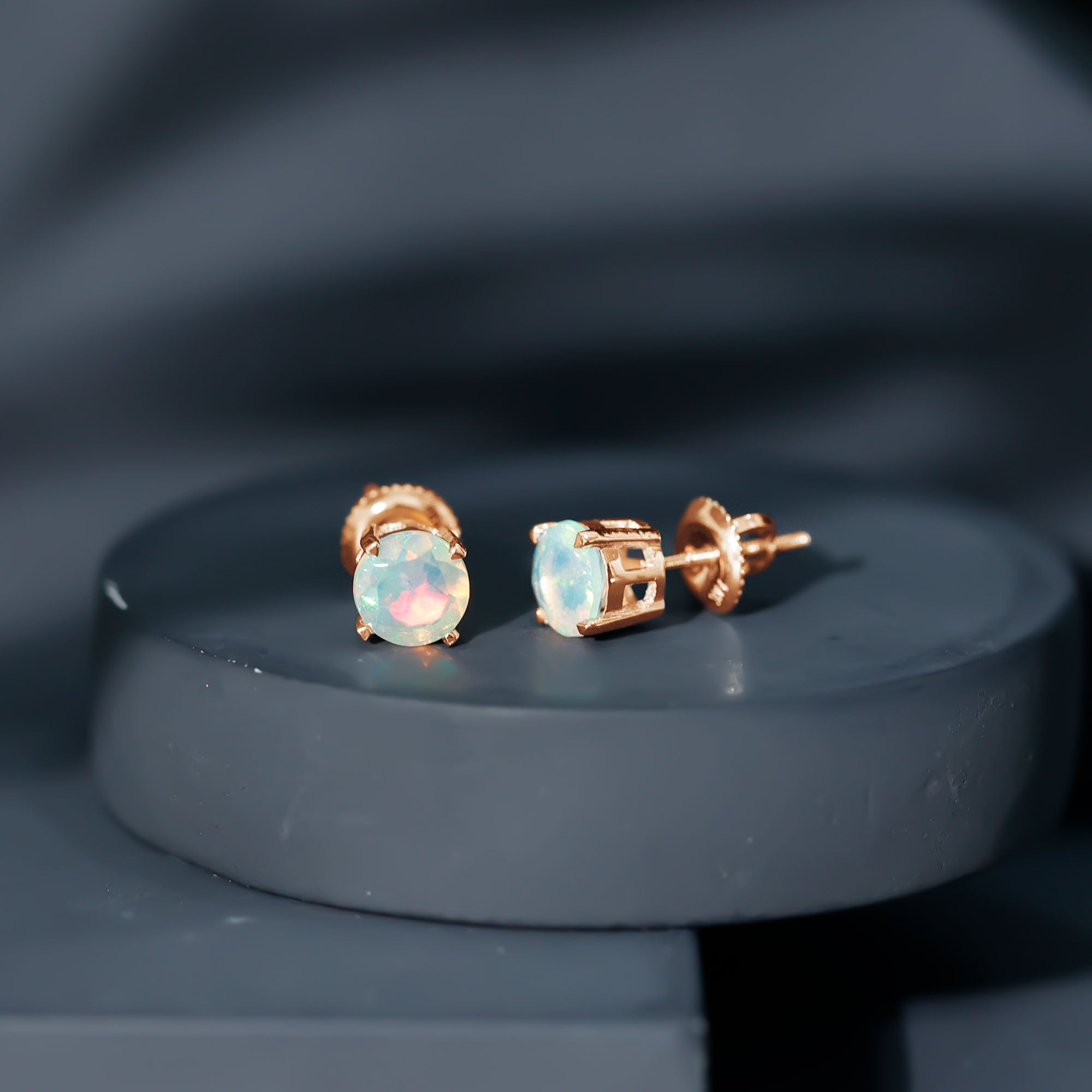 October Birthstone Ethiopian Opal Solitaire Stud Earring
