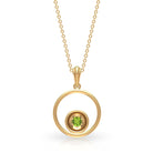 Set trends by wearing this Open Circle Pendant featuring Round Cut Peridot adorned in Solid Gold.