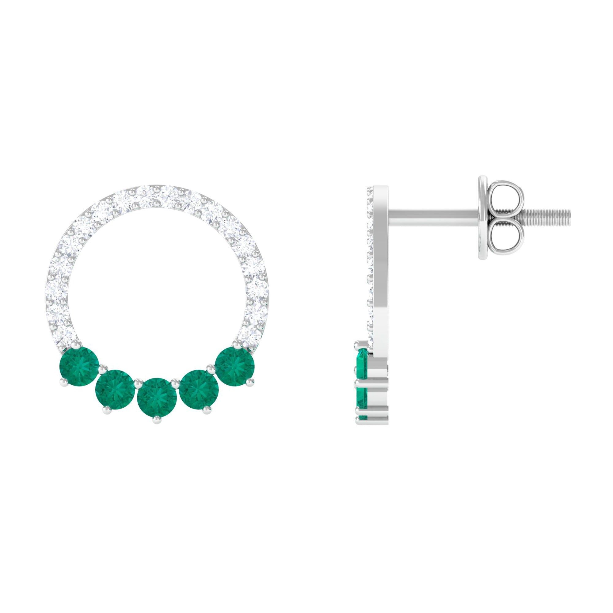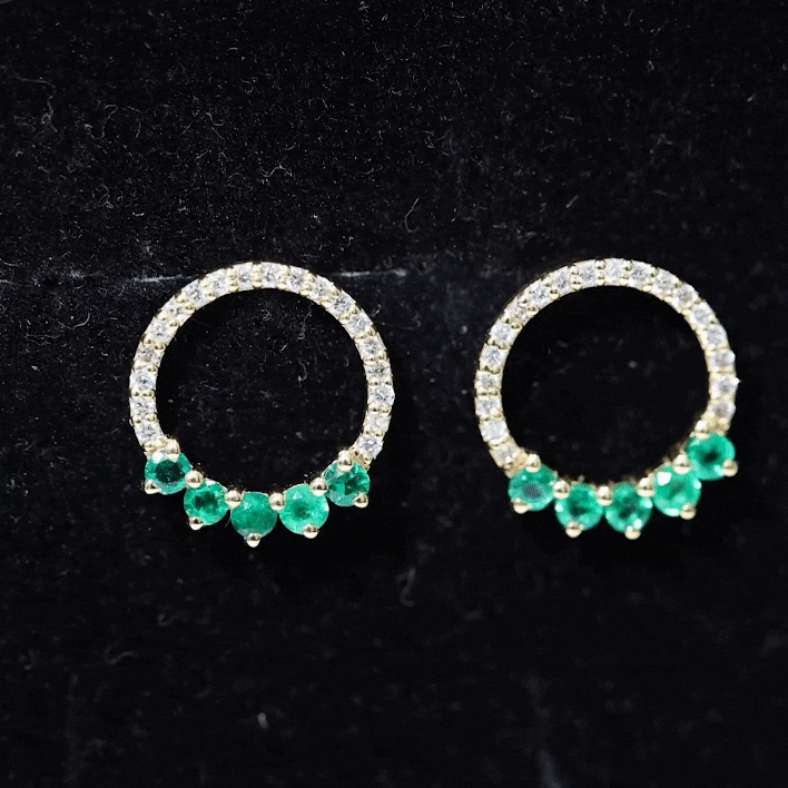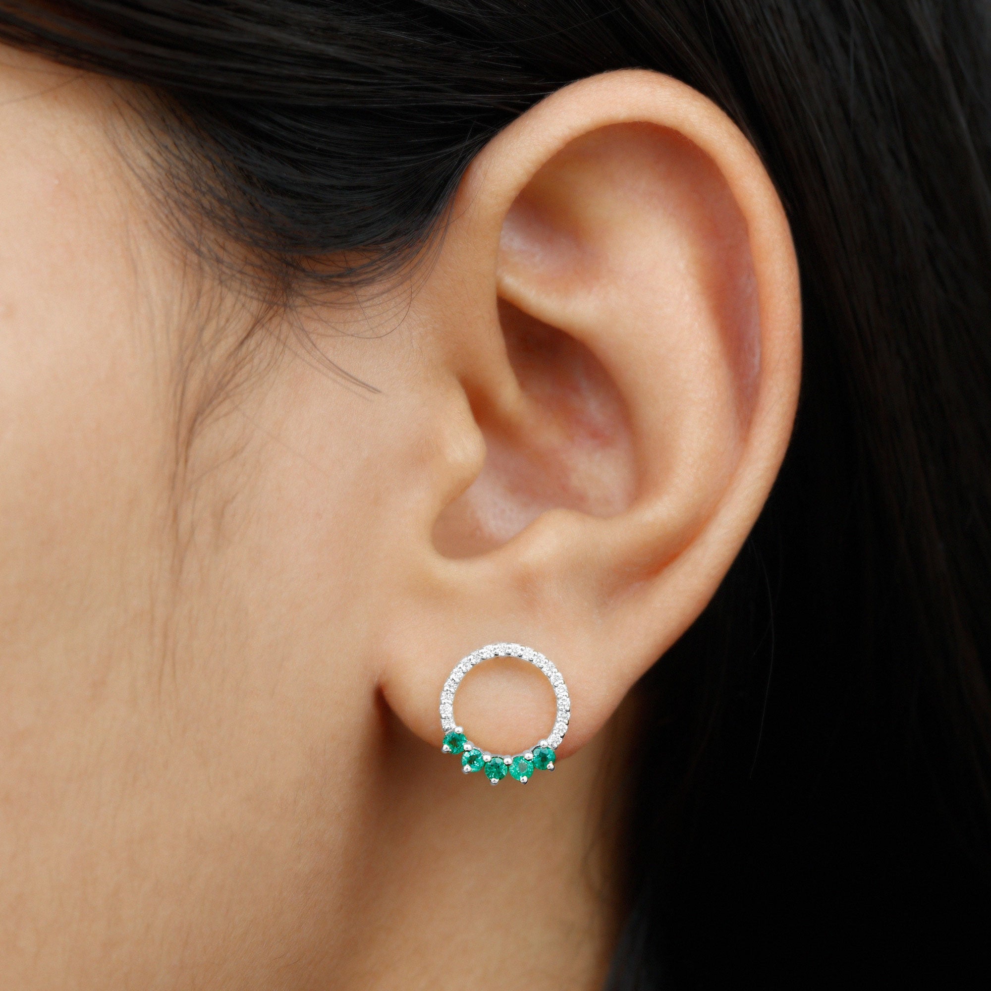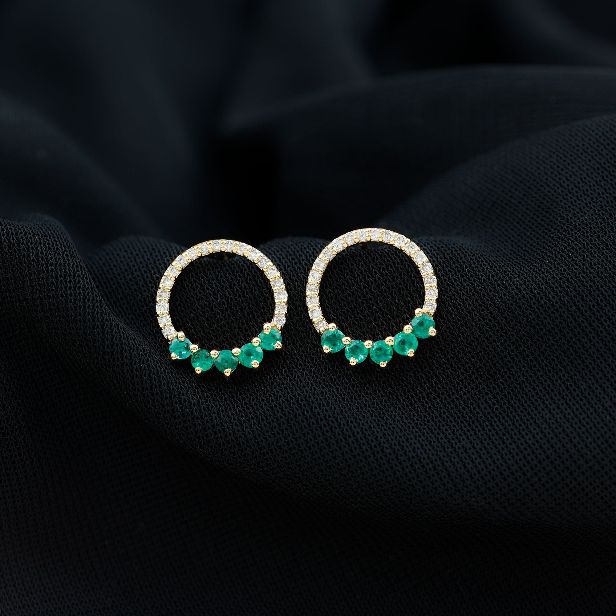 Elevate your elegance with our Open Circle Stud Earrings, adorned with petite Round Shape Emerald Gemstones and Diamonds. These exquisite earrings effortlessly combine the allure of emeralds with the brilliance of diamonds, creating a captivating accessory that adds a touch of sophistication to any ensemble.