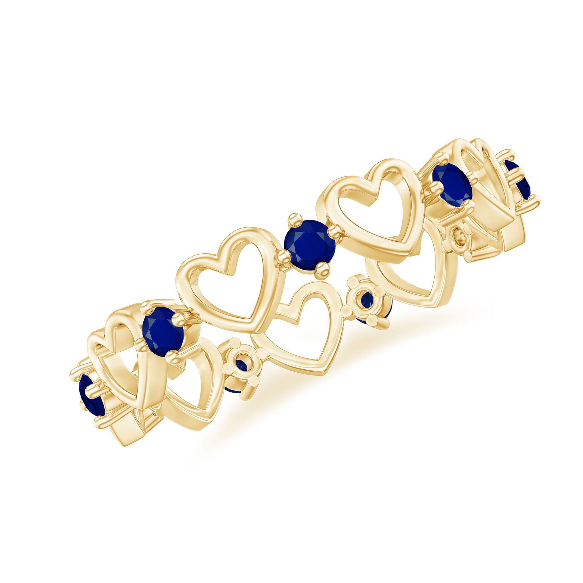 Open Gold Heart Blue Sapphire Band Ring in 2 Prong Setting