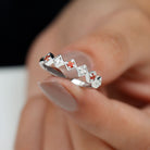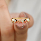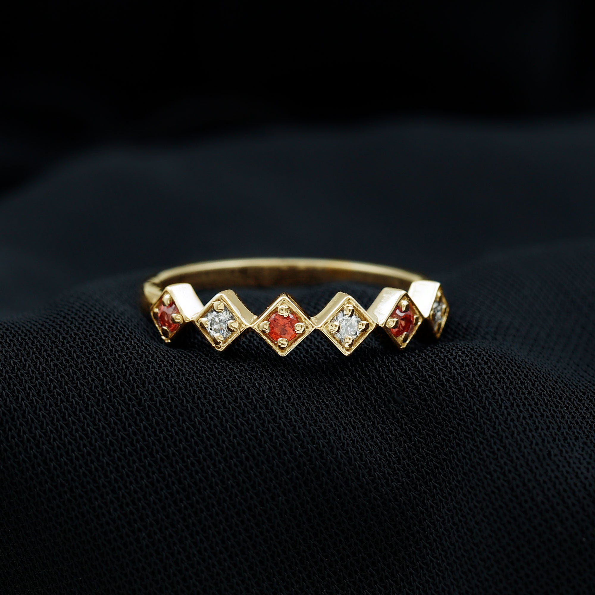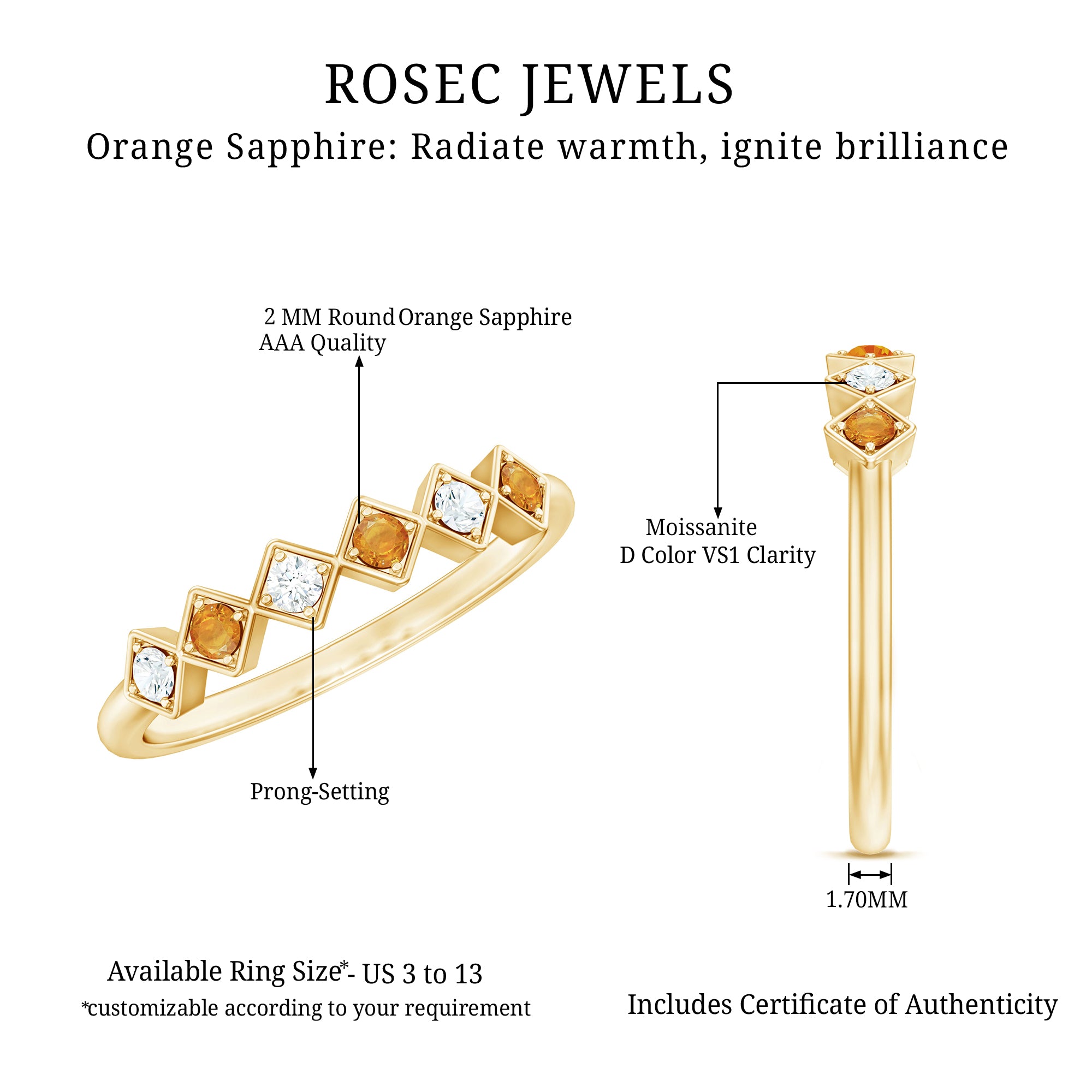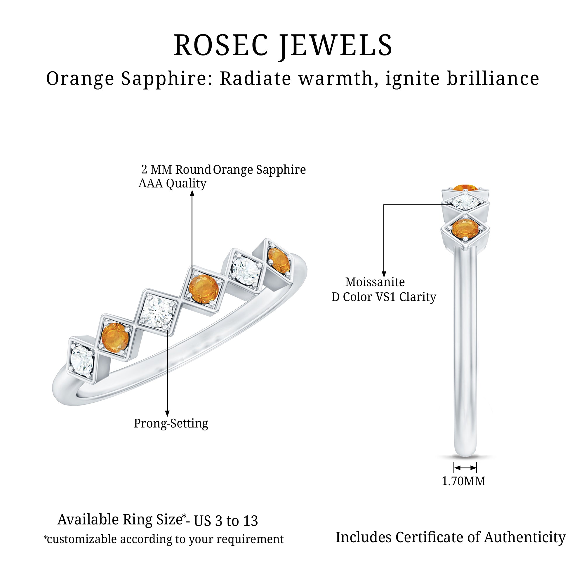 Orange Sapphire and Moissanite Geometric Half Eternity Ring