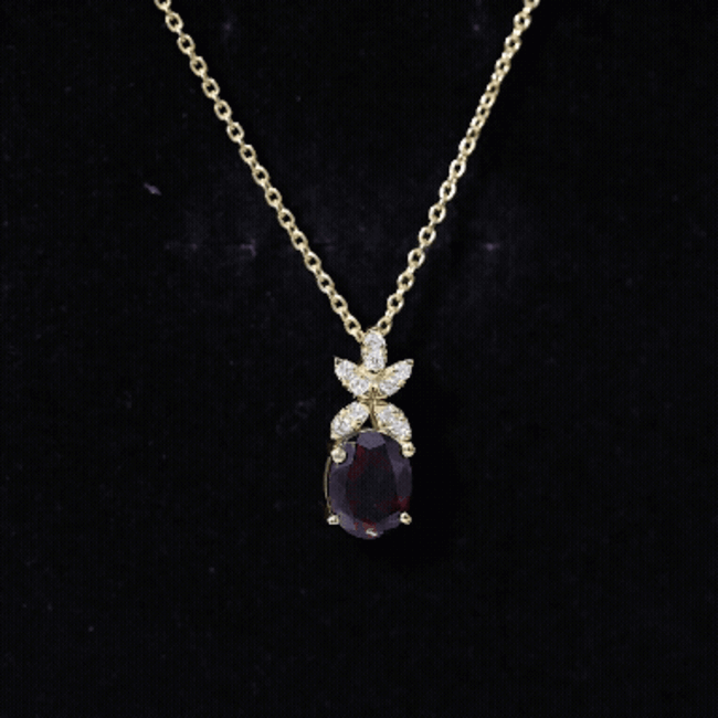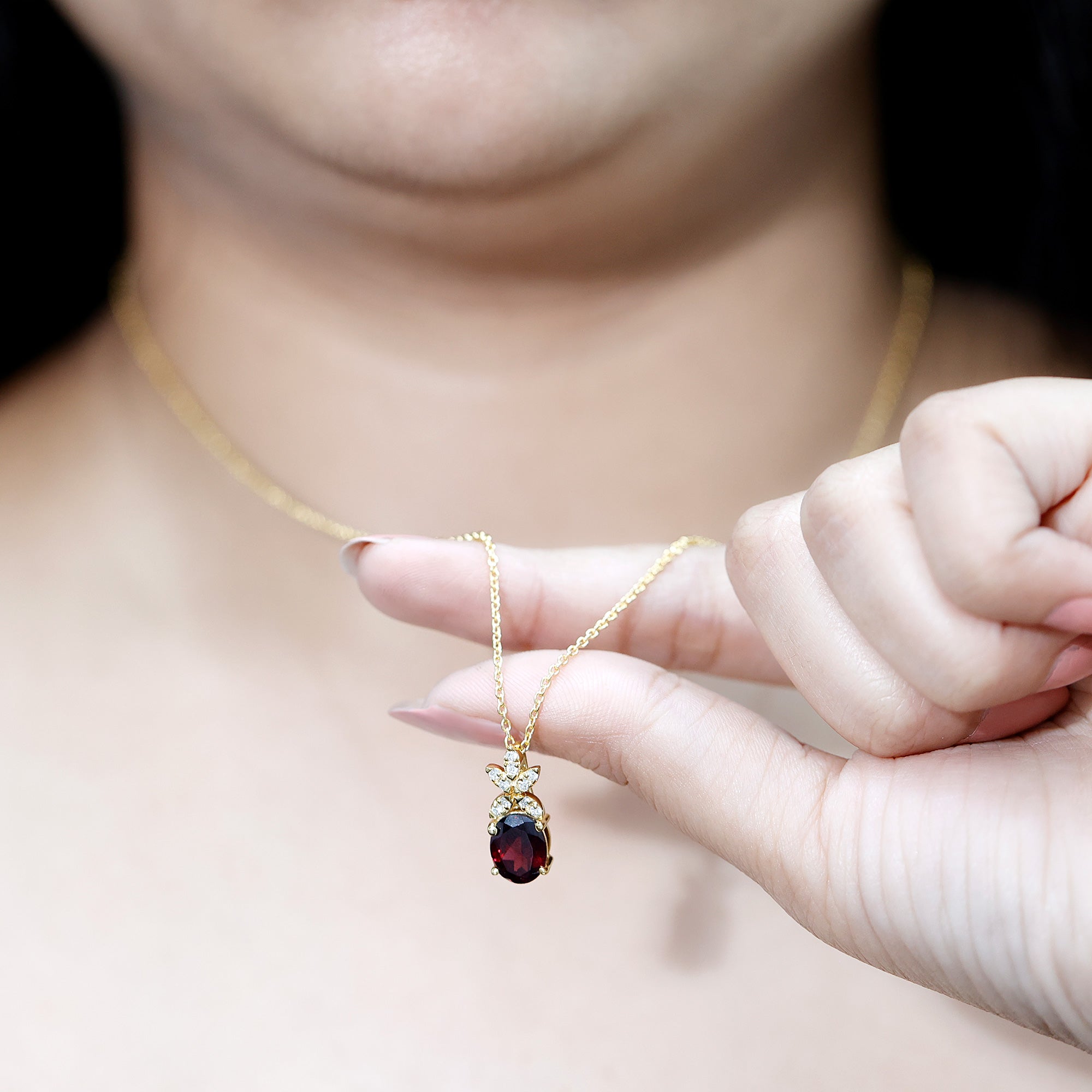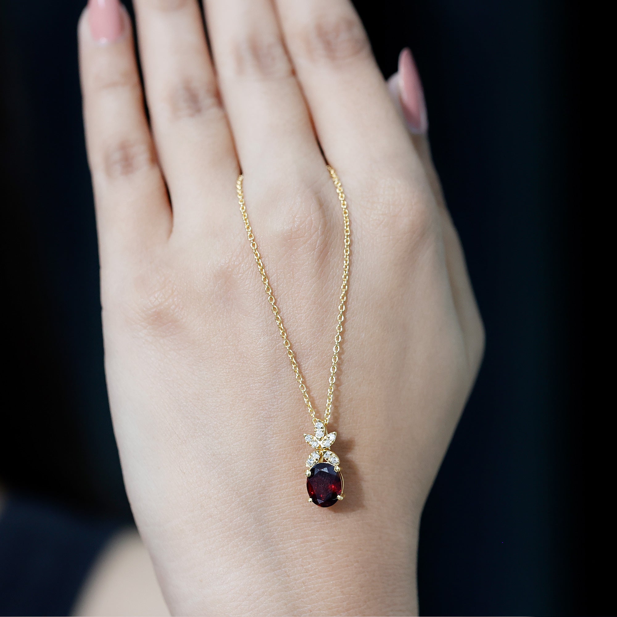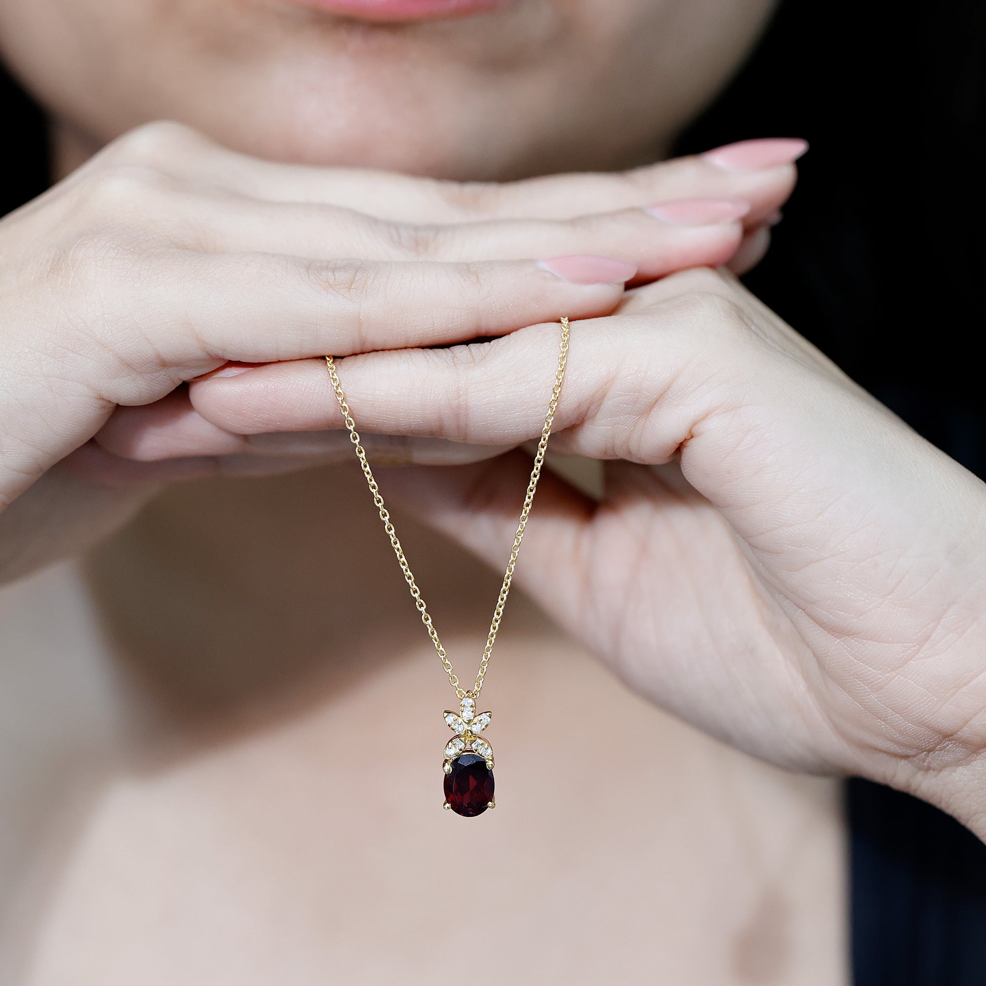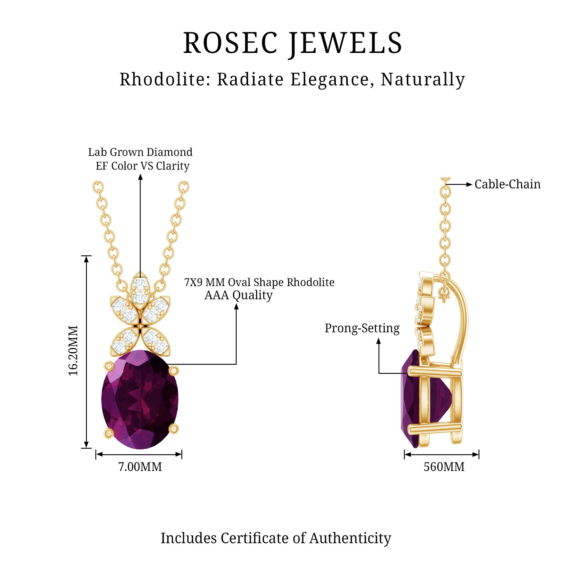 Oval 2.5 Carat Rhodolite Pendant Necklace with Diamond Flower