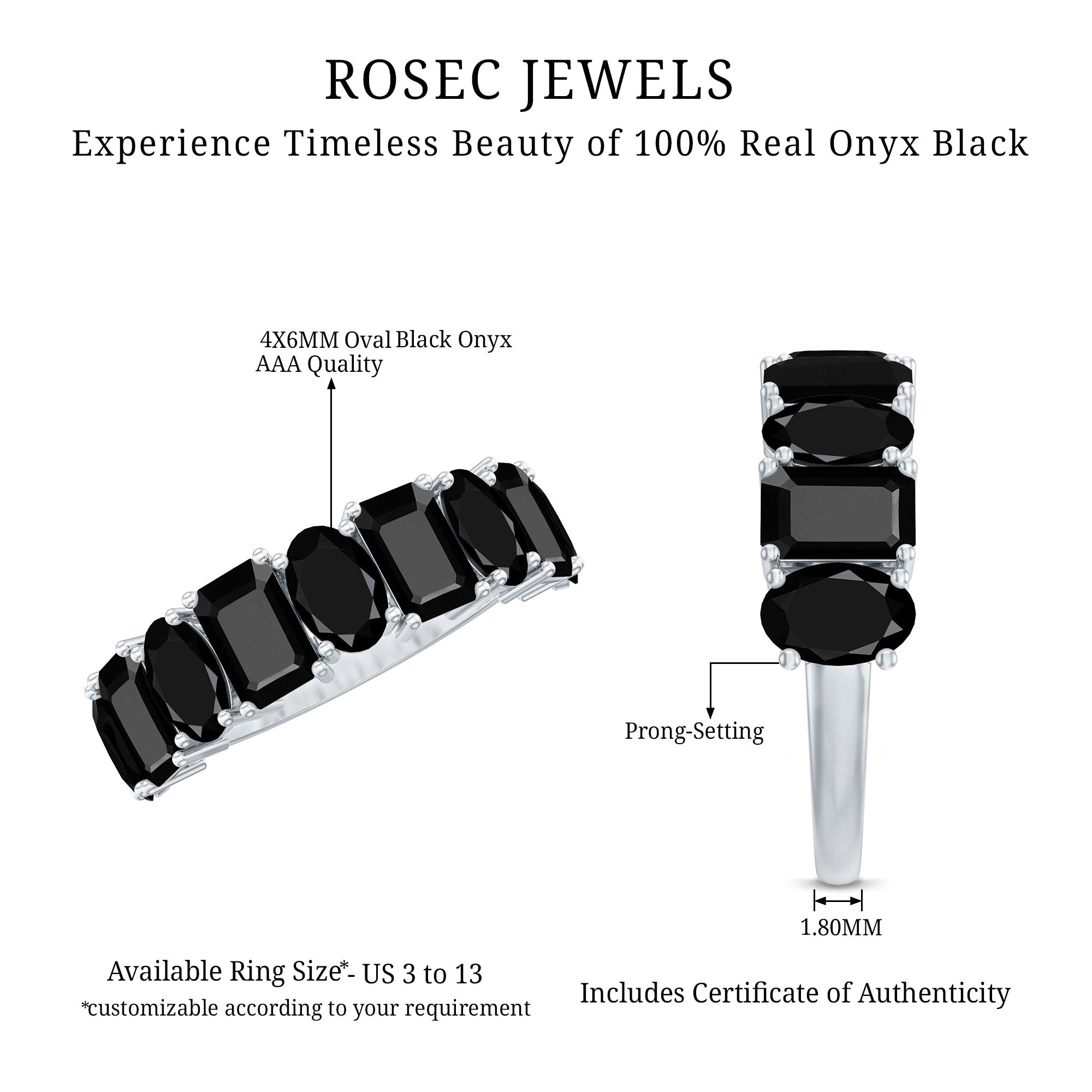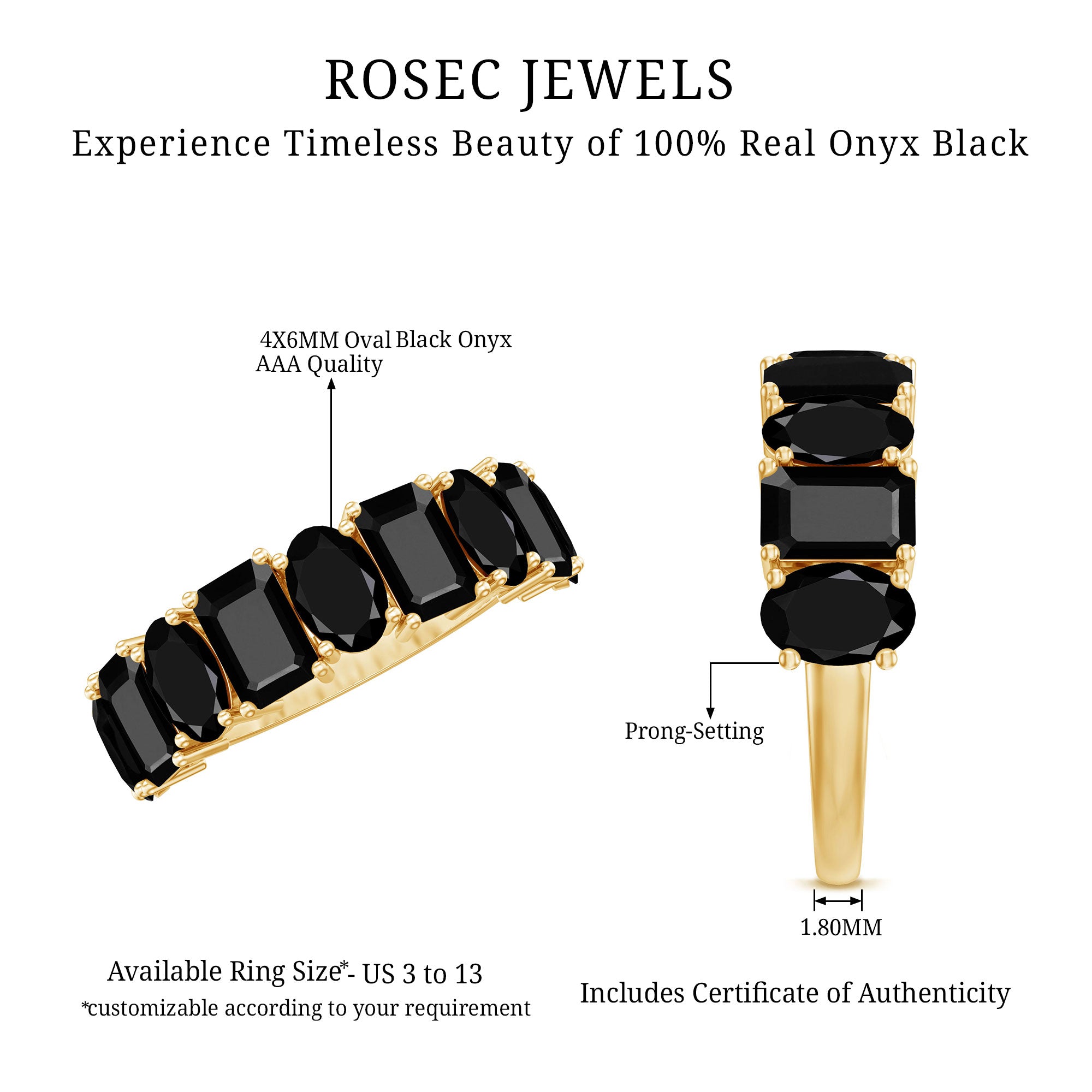 Oval and Emerald Cut Black Onyx Half Eternity Wedding Band