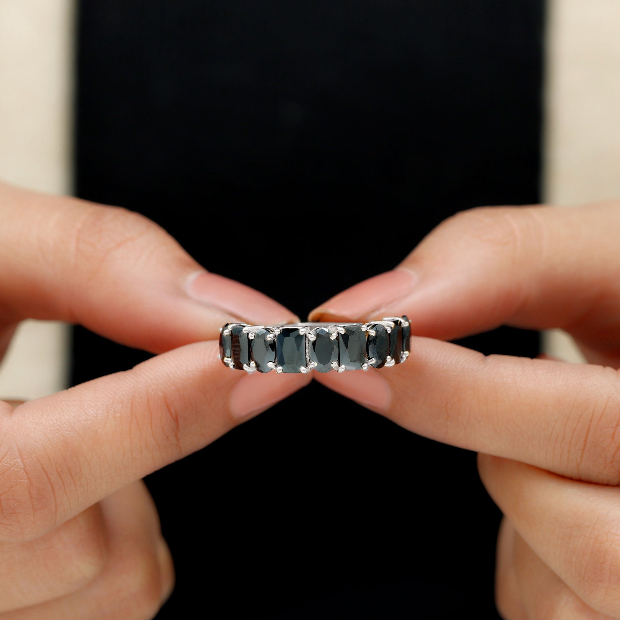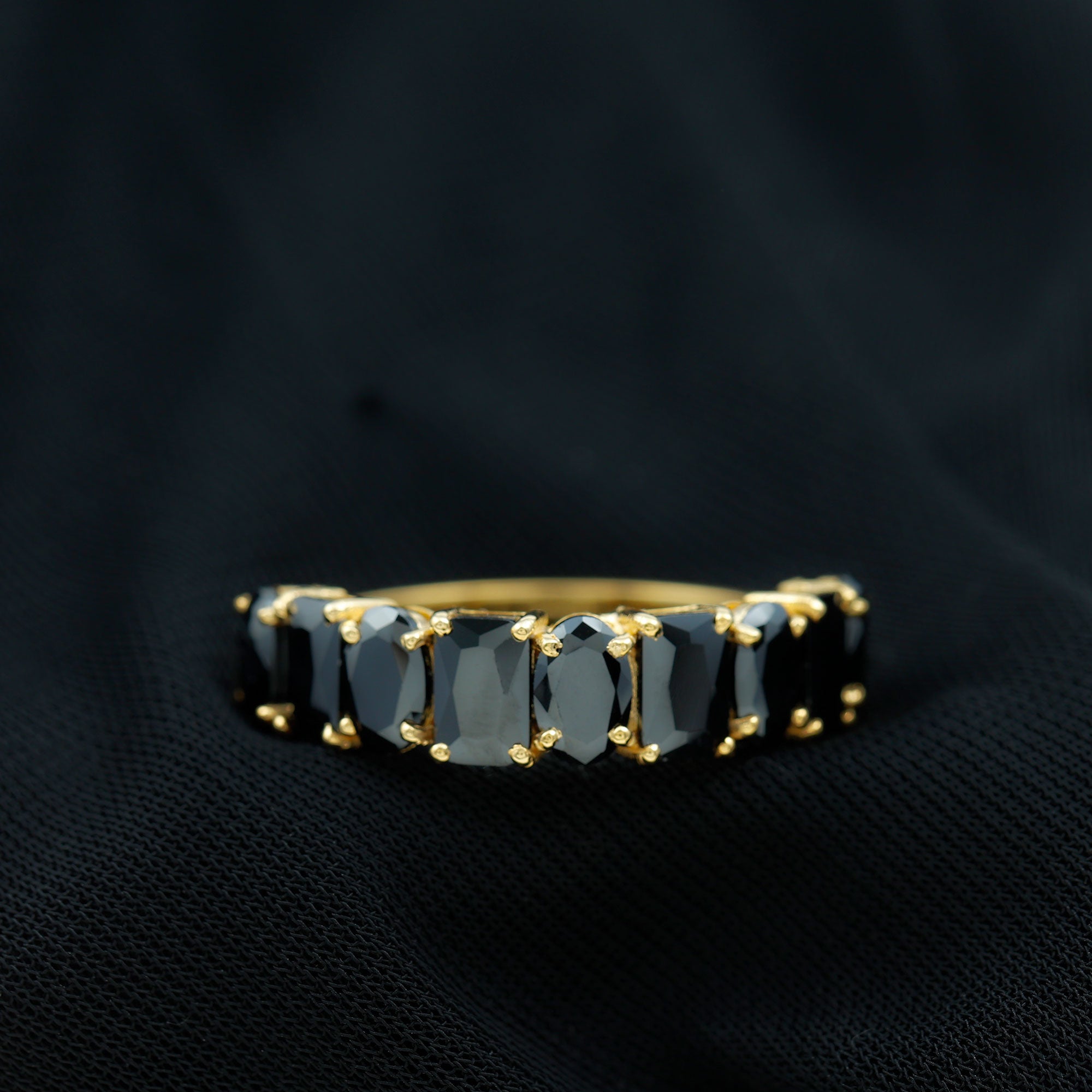 Designed to stand out with quiet strength and beauty, this Black Onyx Eternity Ring pairs elegance with deeper meaning. Featuring alternating 4X6 MM oval and emerald cut black onyx stones, each gem is carefully secured in prong setting, creating a graceful rhythm across half of the band. The unique combination of cuts brings movement to the design, while the deep black onyx adds mystery and charm. Known for its protective qualities, black onyx is believed to absorb negative energy and promote inner strength, making this Half Eternity Band not just beautiful, but also meaningful. Whether you are drawn to its striking appearance or the symbolism behind the stones, this Onyx Wedding Band brings something special to your everyday style. It is perfect for stacking or wearing solo, offering a look that is both timeless and modern. Thoughtfully crafted for comfort and durability, it makes a wonderful gift for someone who appreciates distinctive jewelry with intention. Available in multiple sizes and metal finishes, it is easy to choose one to fits your personal taste. From casual outings to special occasions, this Wedding Anniversary Ring brings a quiet elegance that lasts.