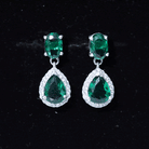 Oval and Pear Cut Lab Grown Emerald Bridal Earrings in Silver