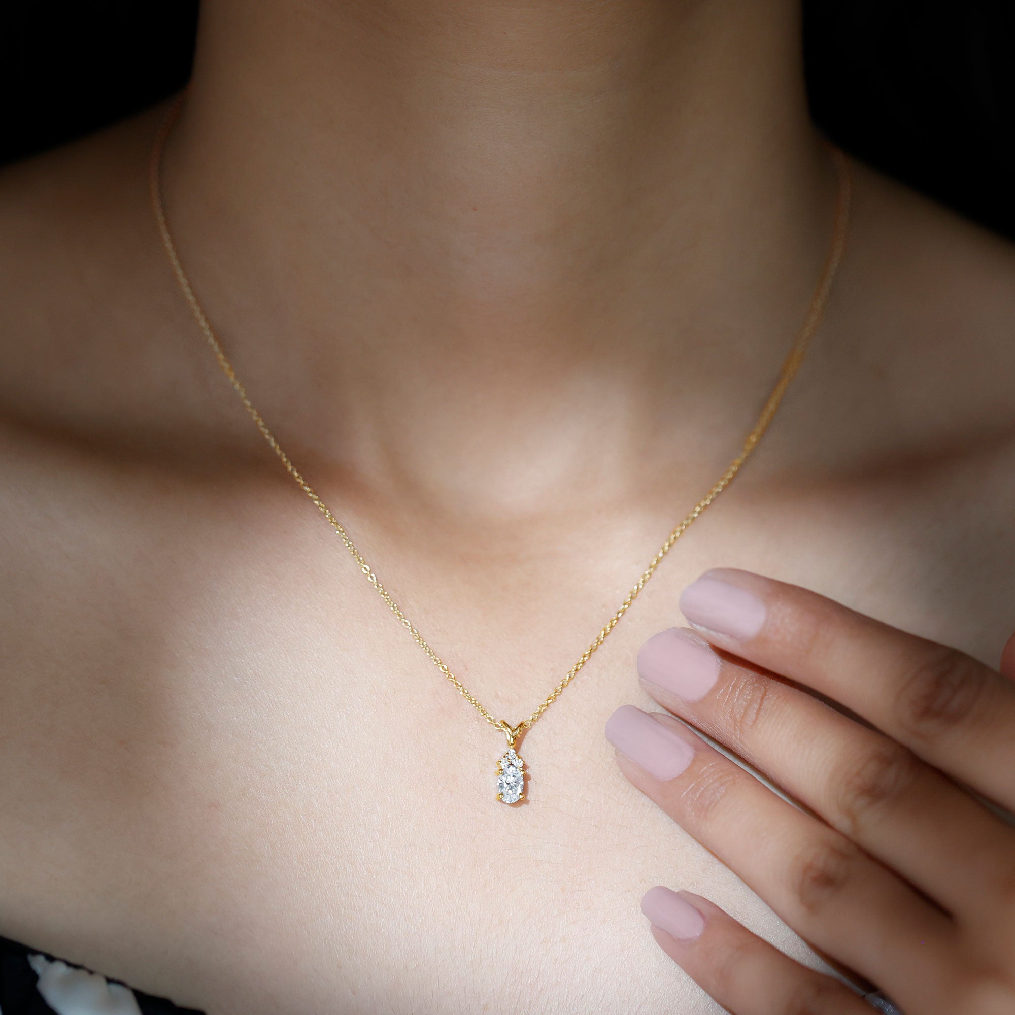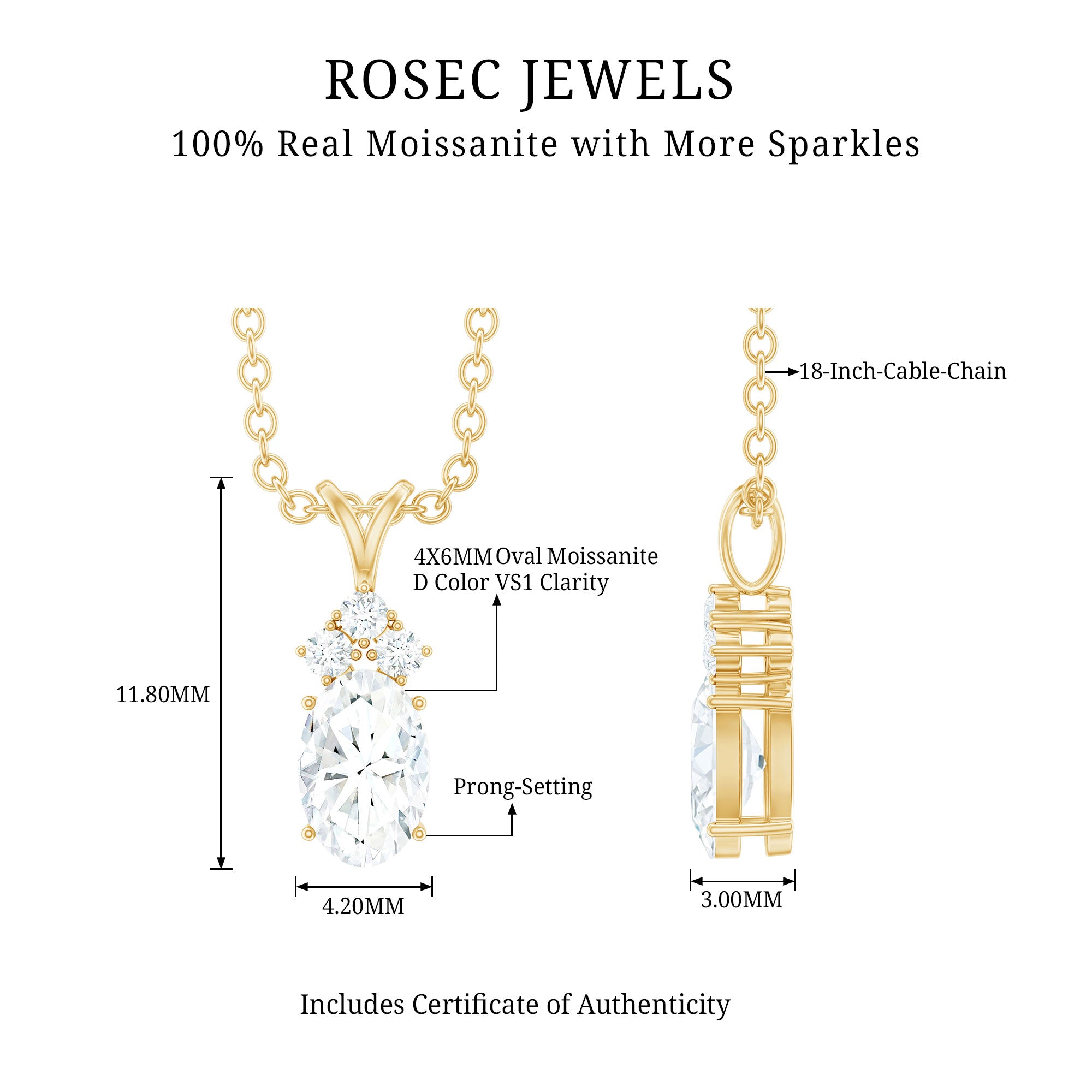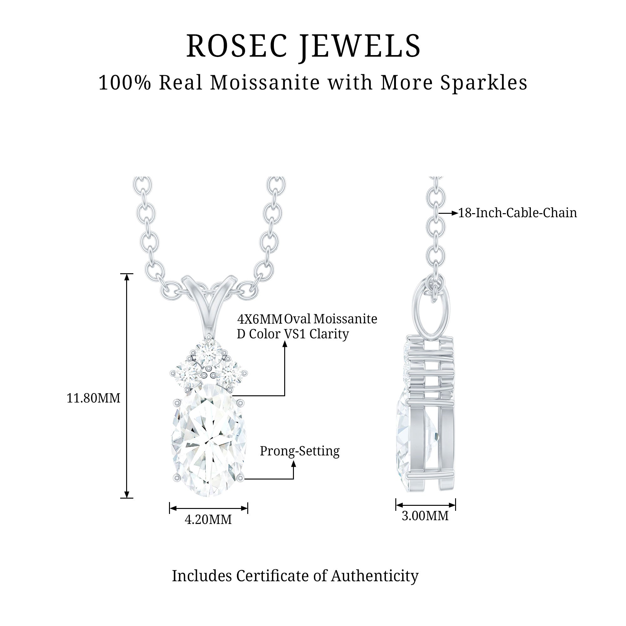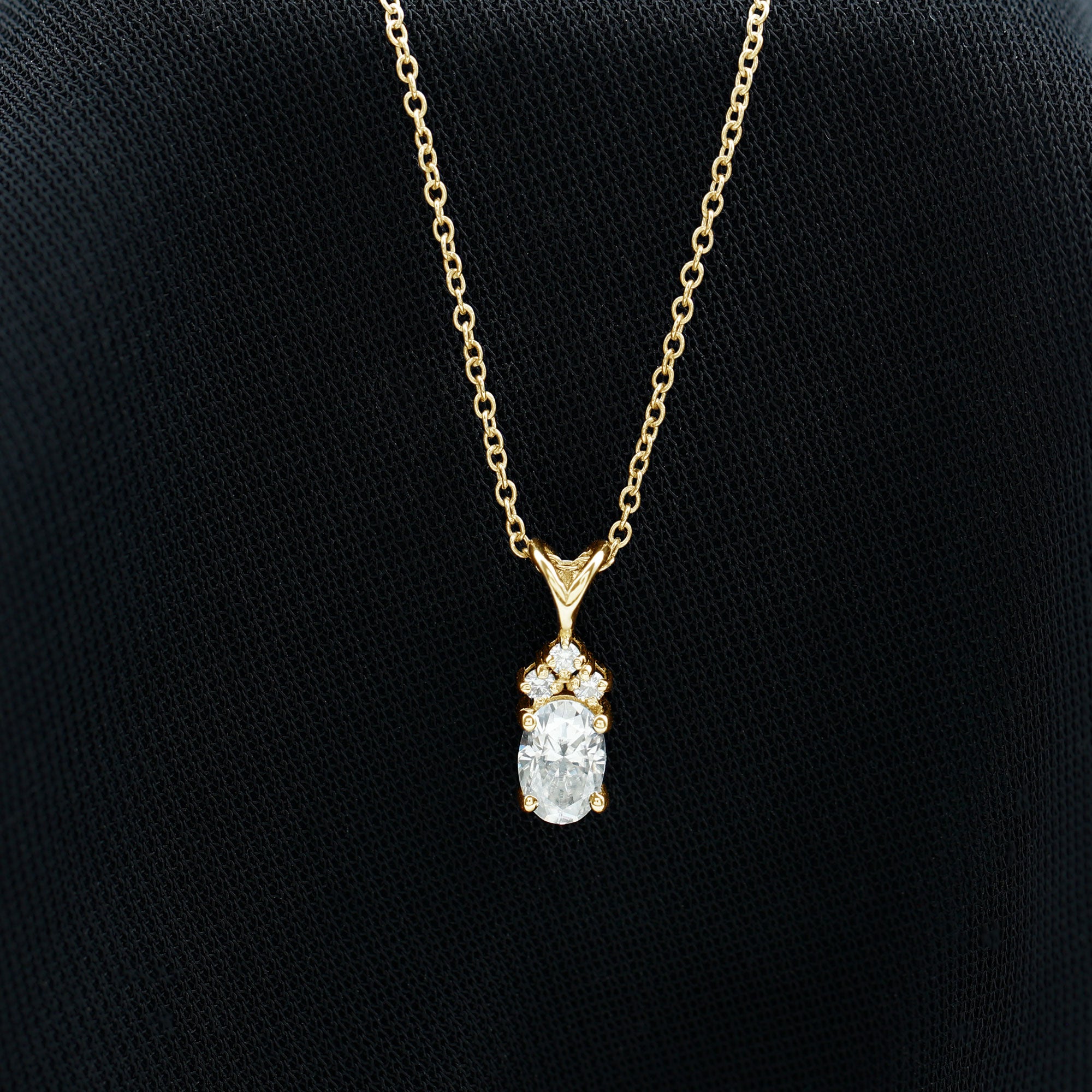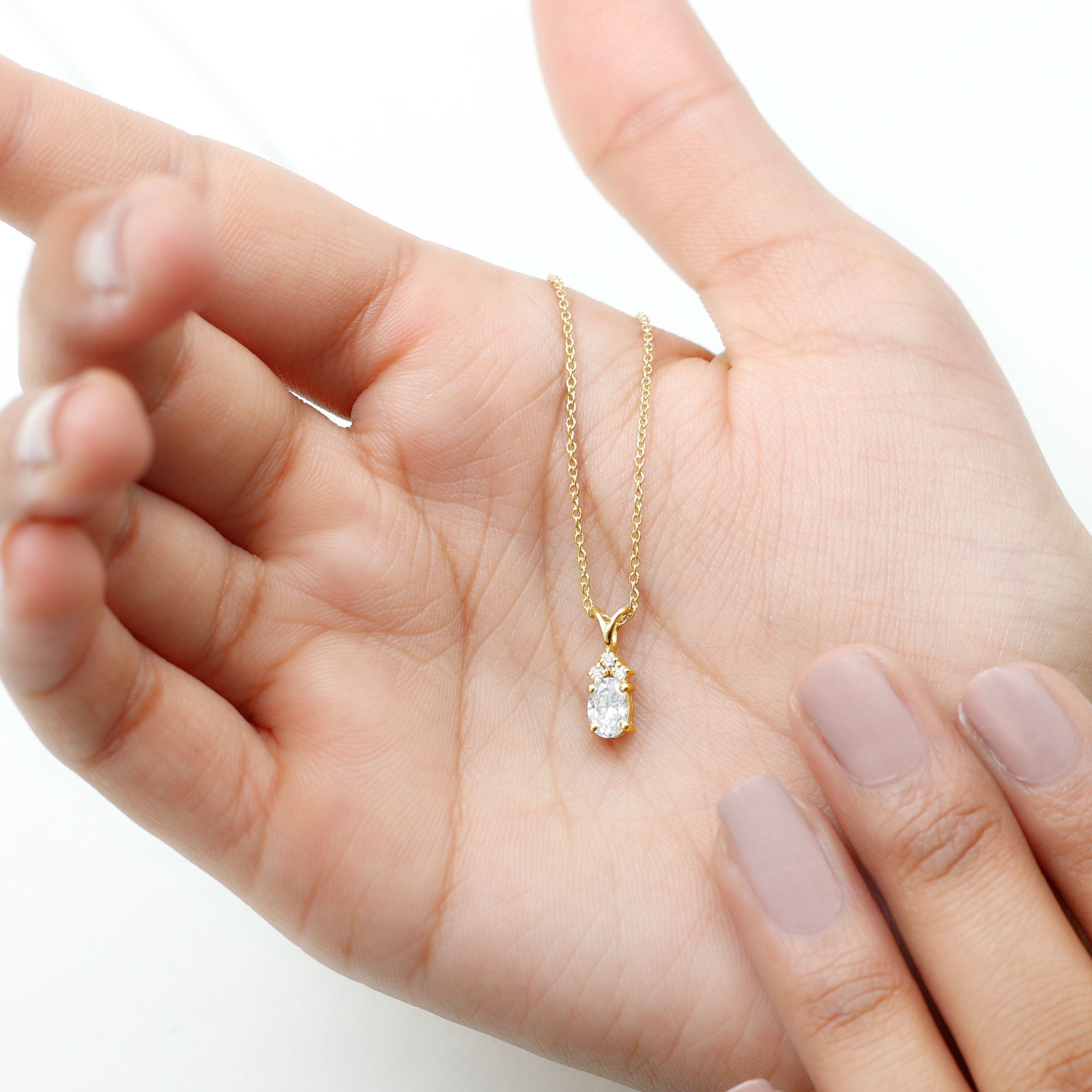 Oval and Round Cut Moissanite Minimal Solitaire Pendant Necklace