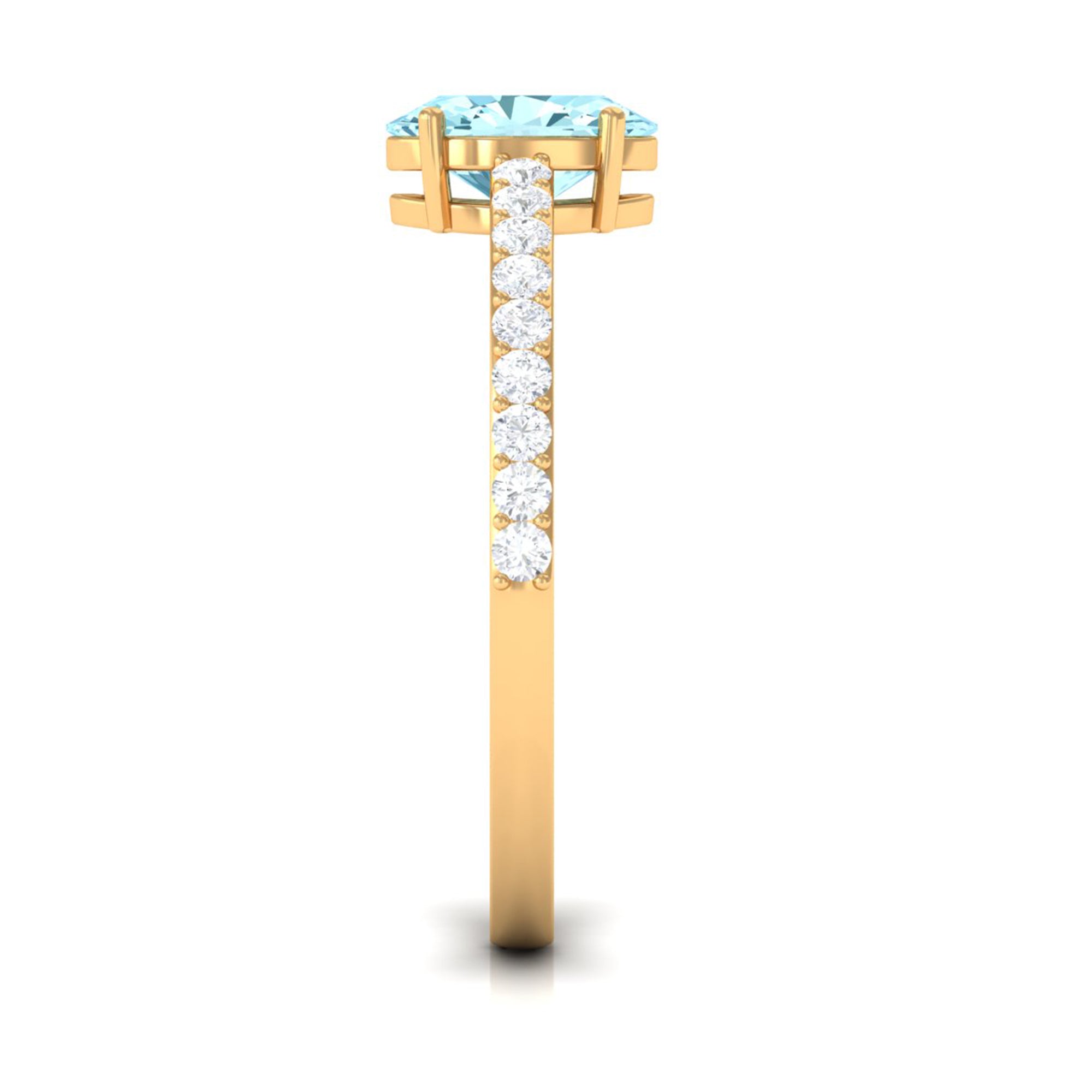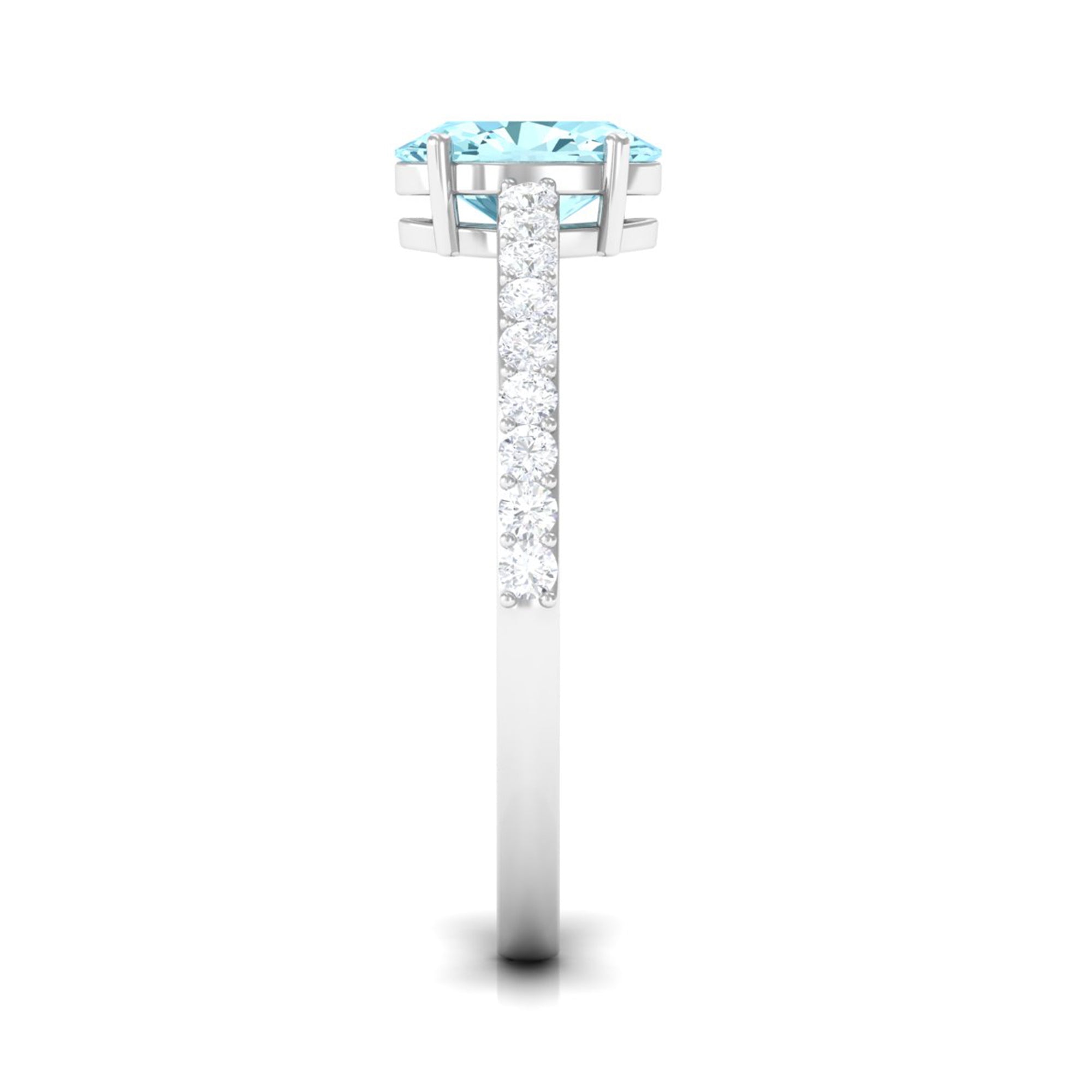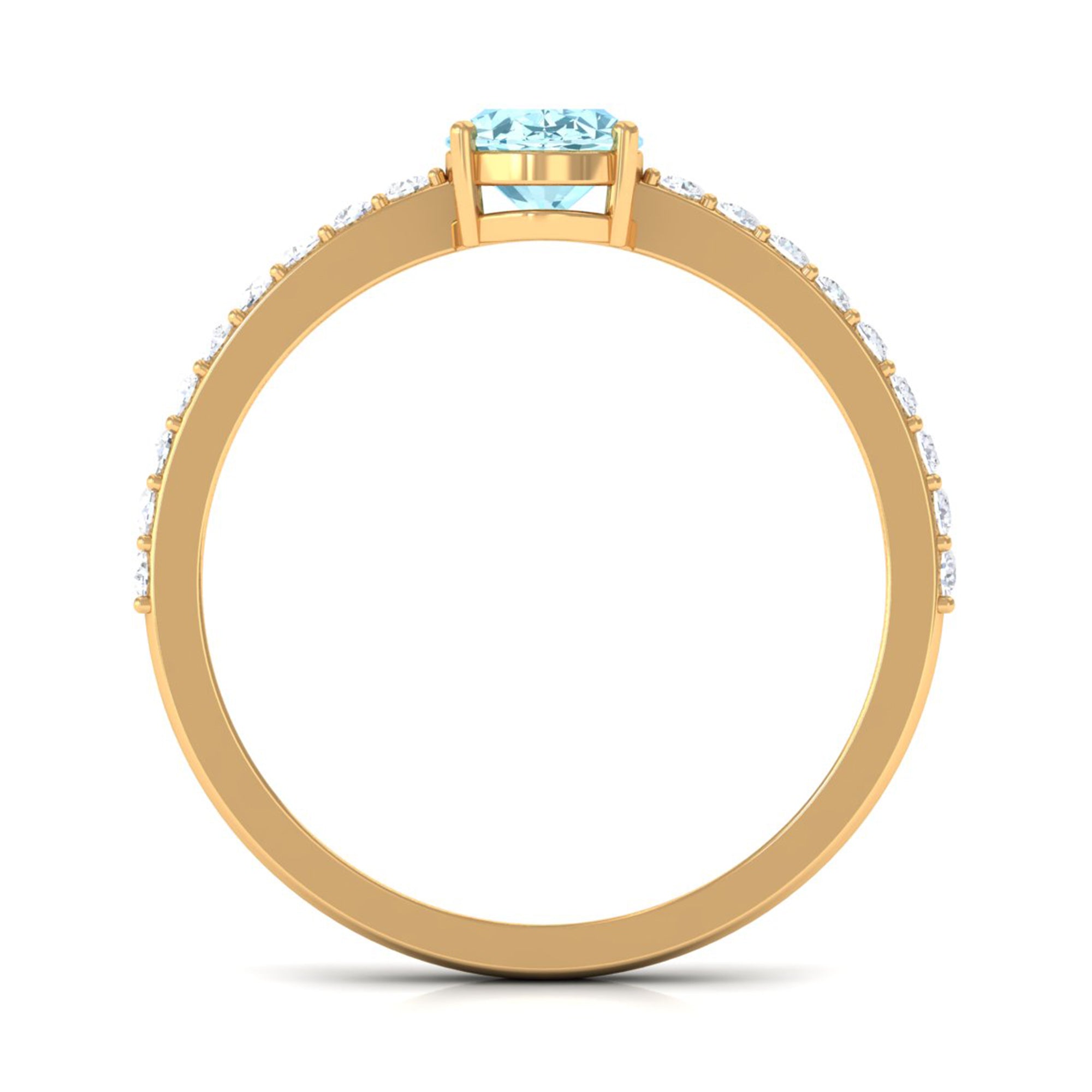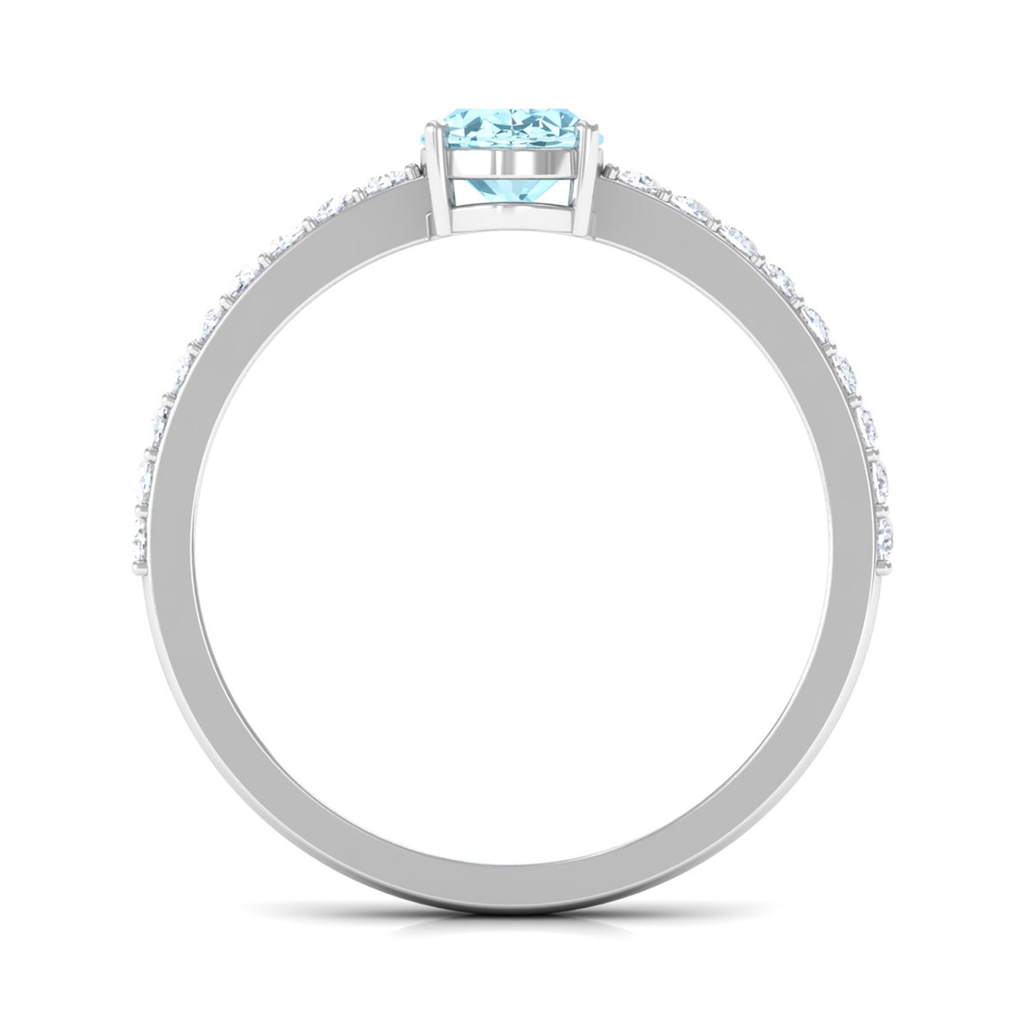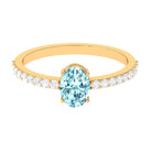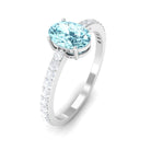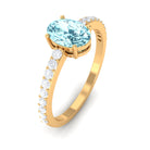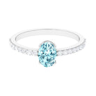 Genuine 6X8mm Solitaire Aquamarine Oval Engagement Ring with Diamond