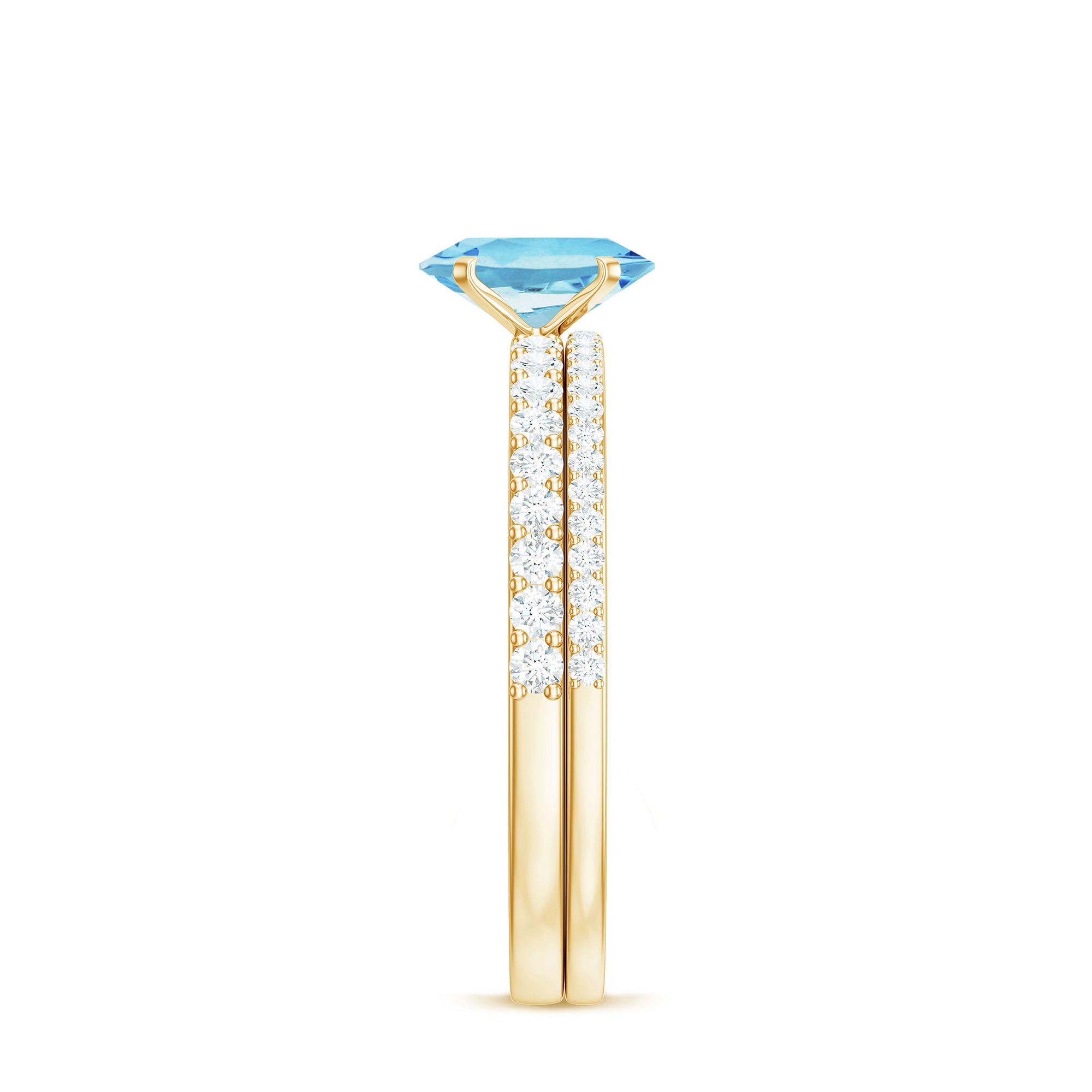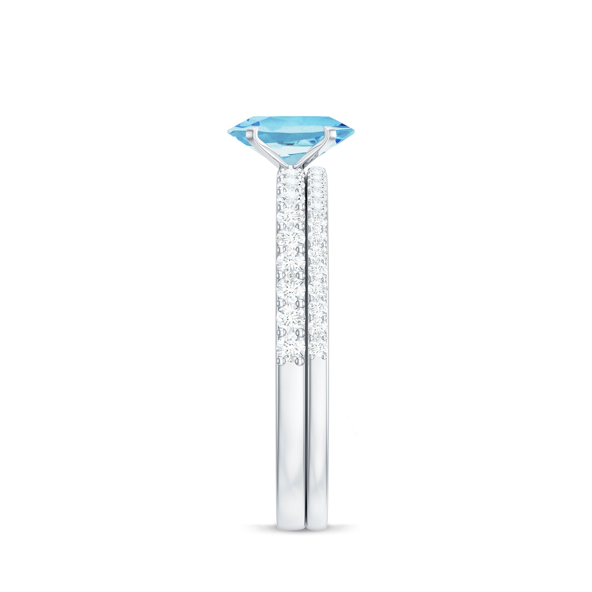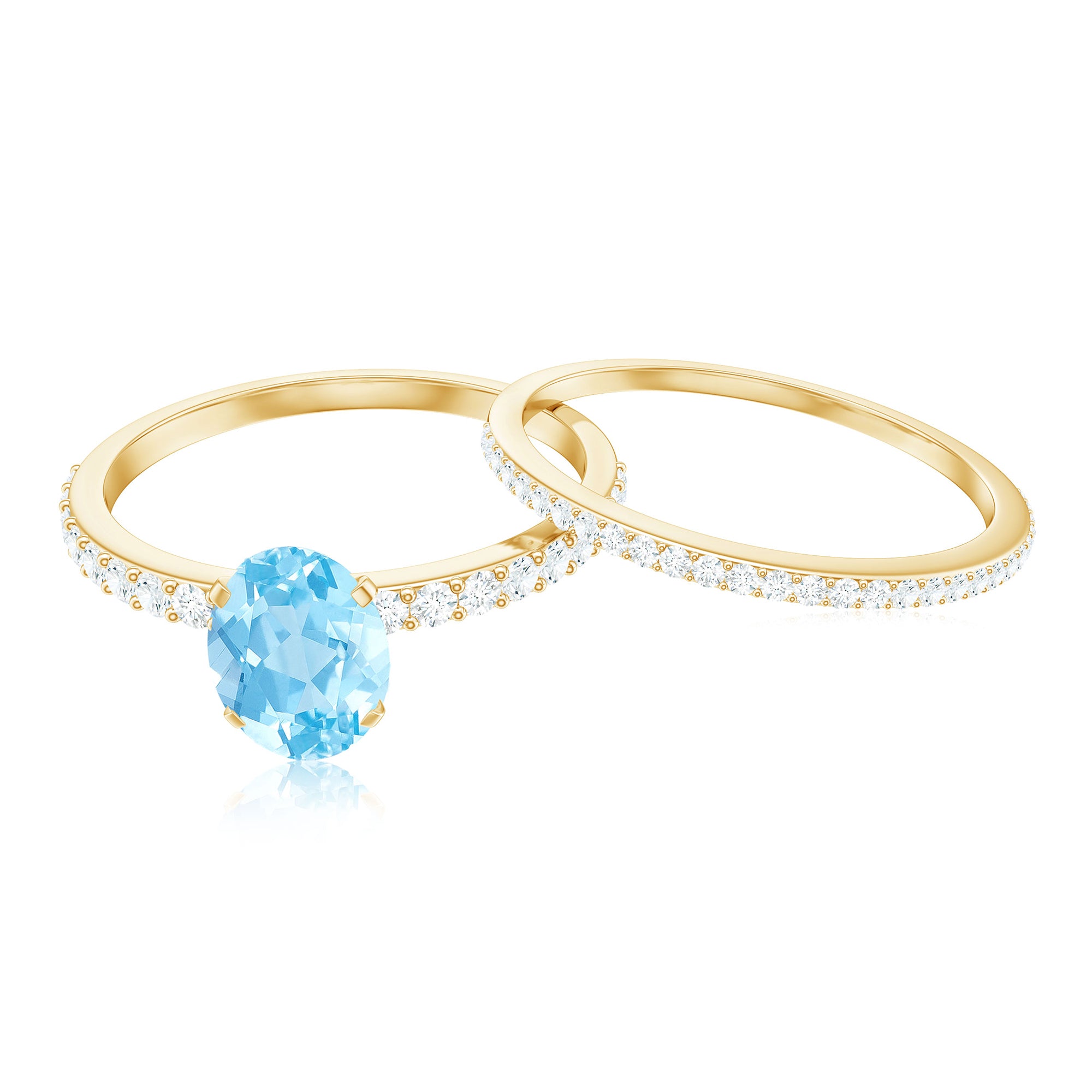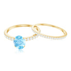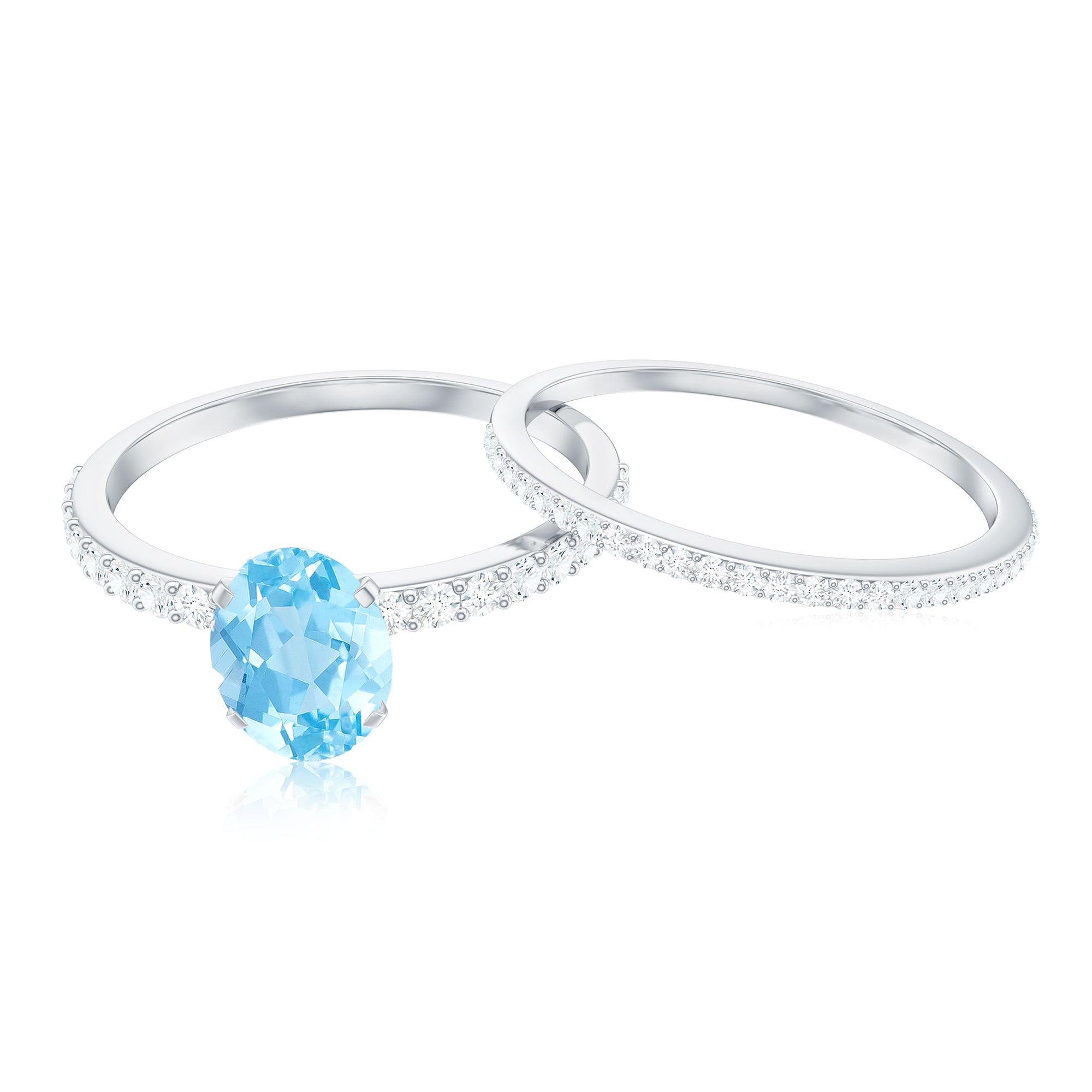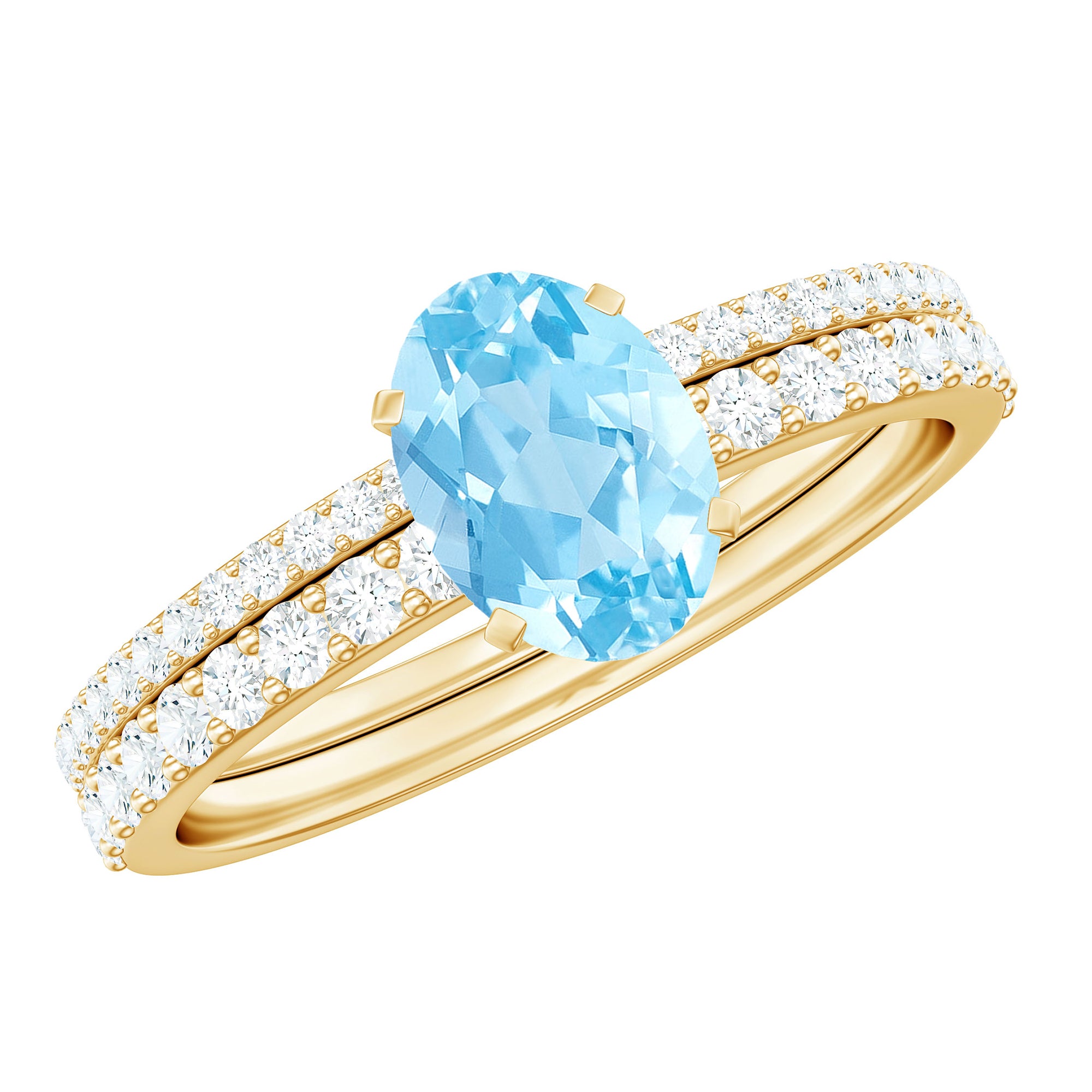 Natural Aquamarine Diamond Oval Engagement Ring with Wedding Band