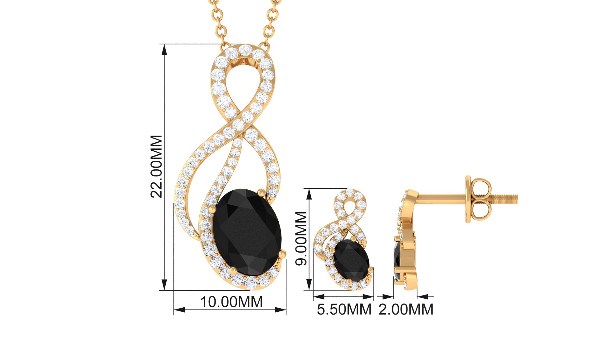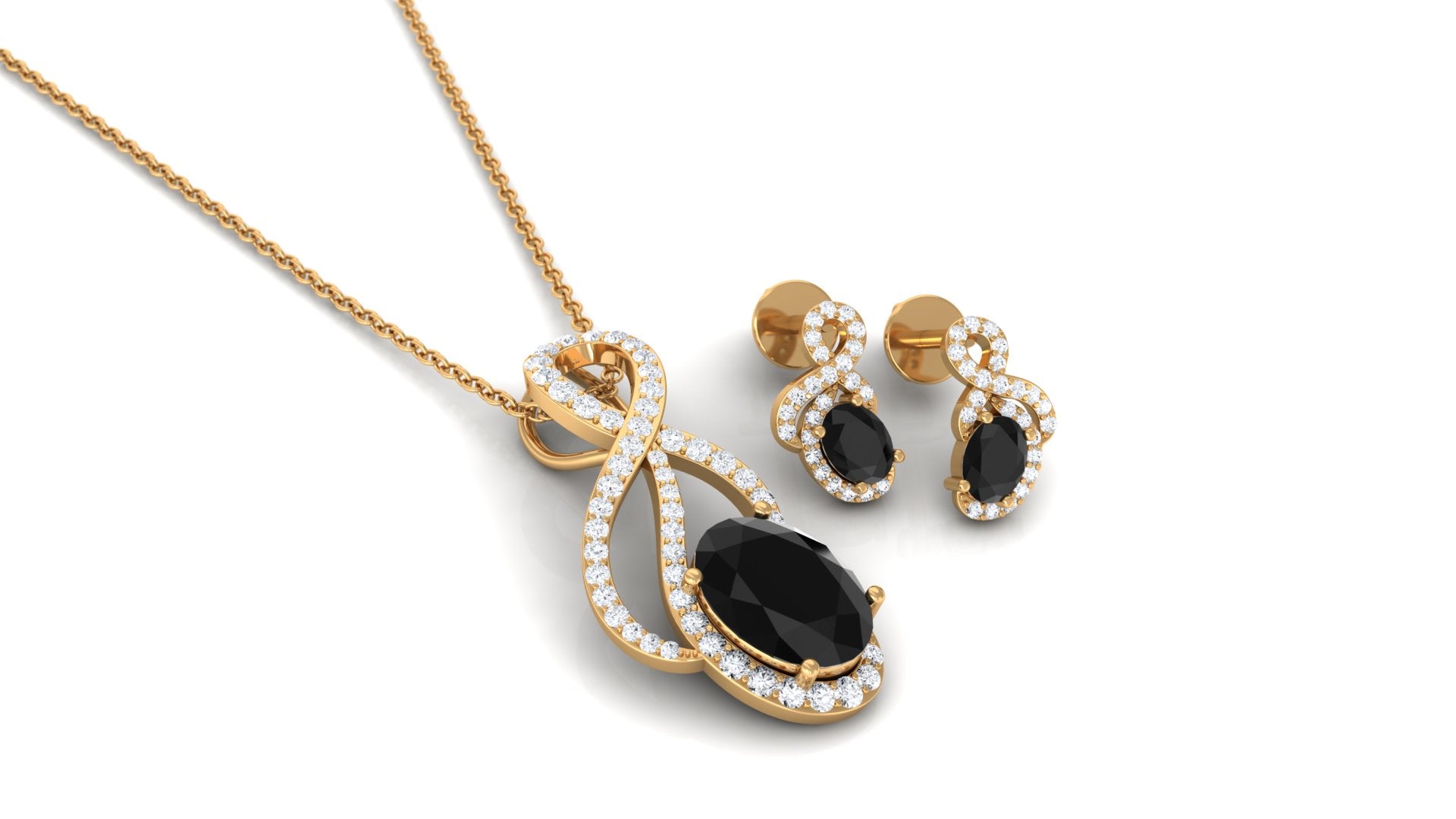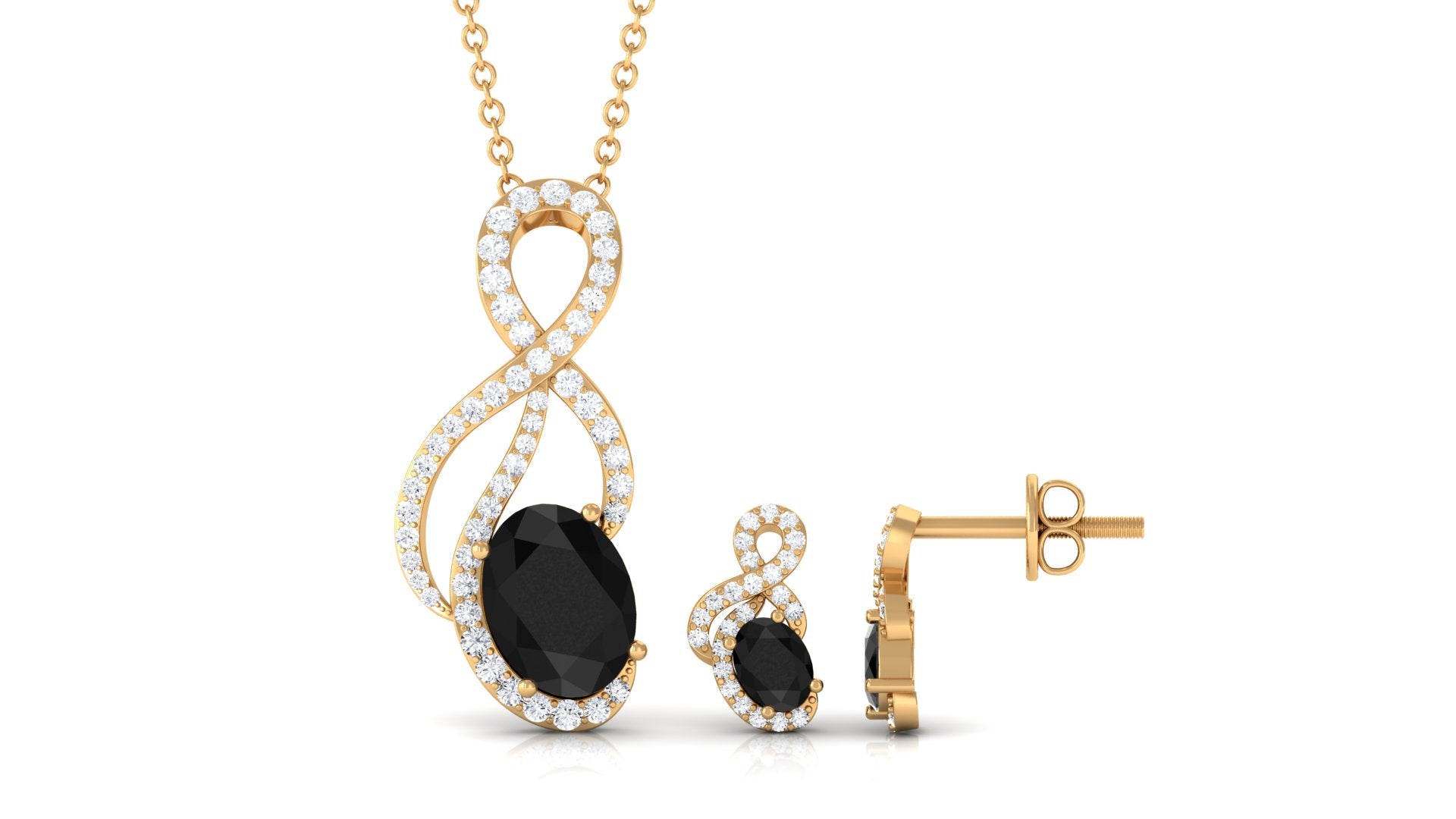 Oval Black Onyx Infinity Jewelry Set with Diamond
