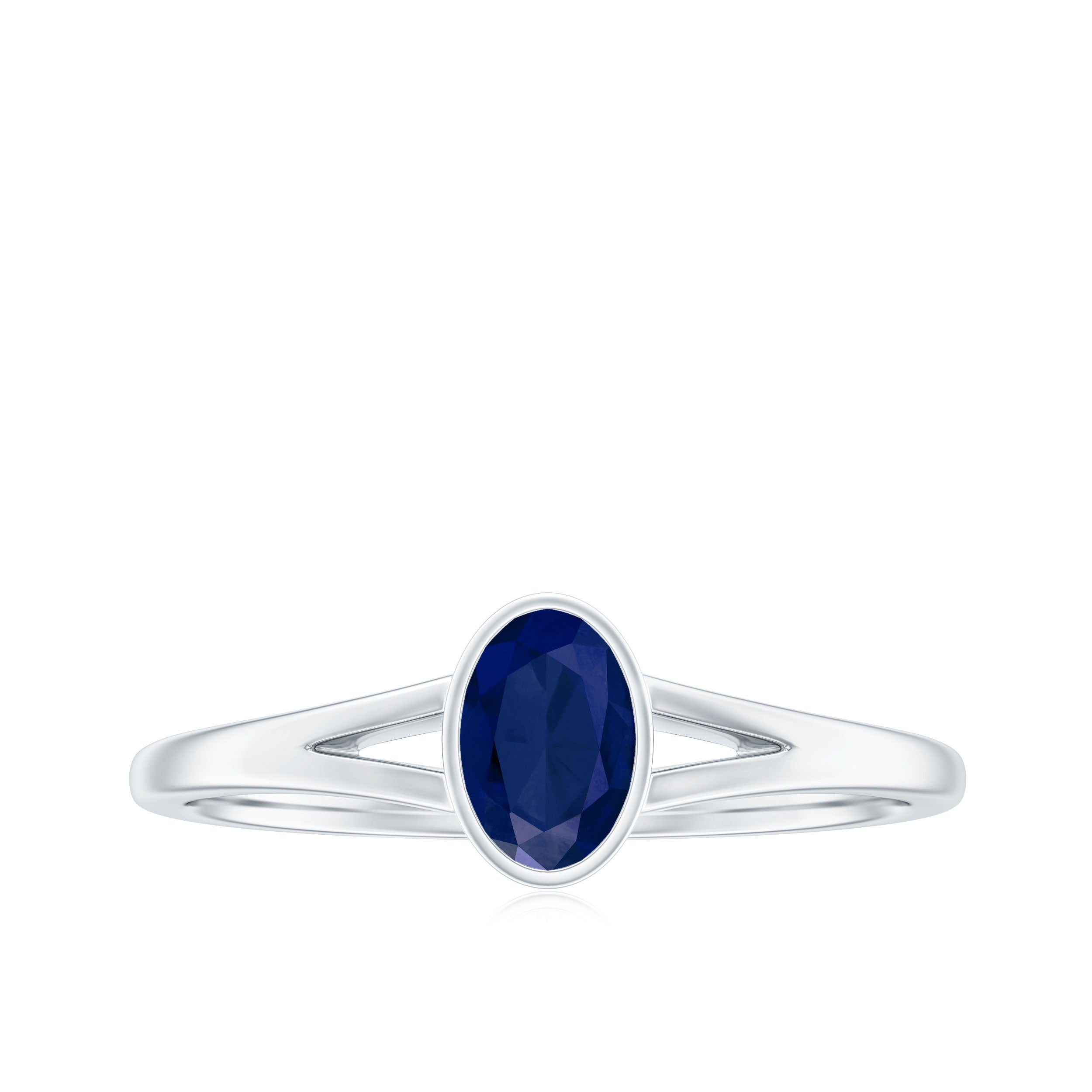Oval Blue Sapphire Solitaire Engagement Ring in Split Shank
