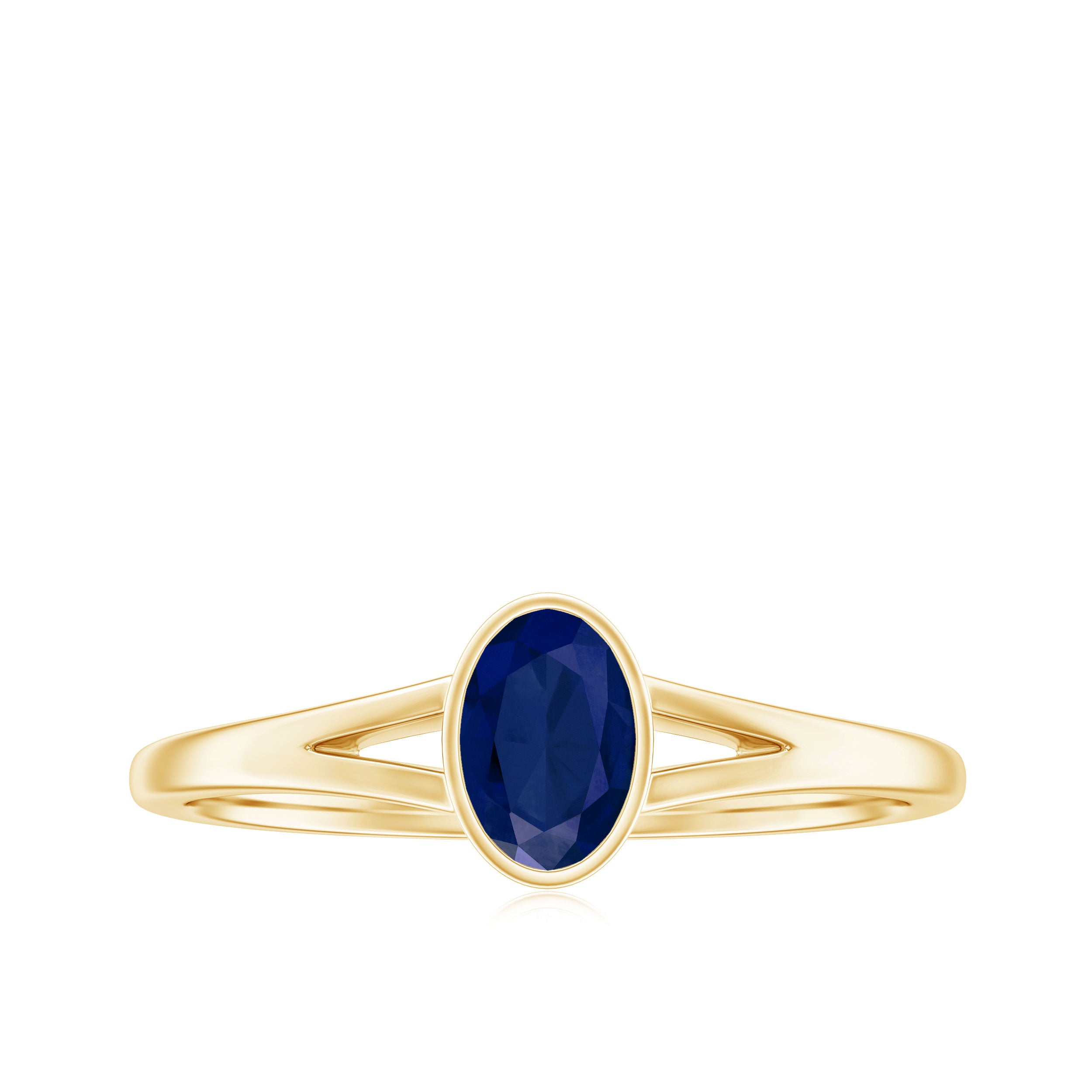 Grace your finger with the understated elegance of this Classic Blue Sapphire Ring. Adorned with an Oval Shape Blue Sapphire gemstone set delicately in a Bezel Setting in Split Shank, this Solitaire Engagement Ring is meticulously crafted in various metal options.