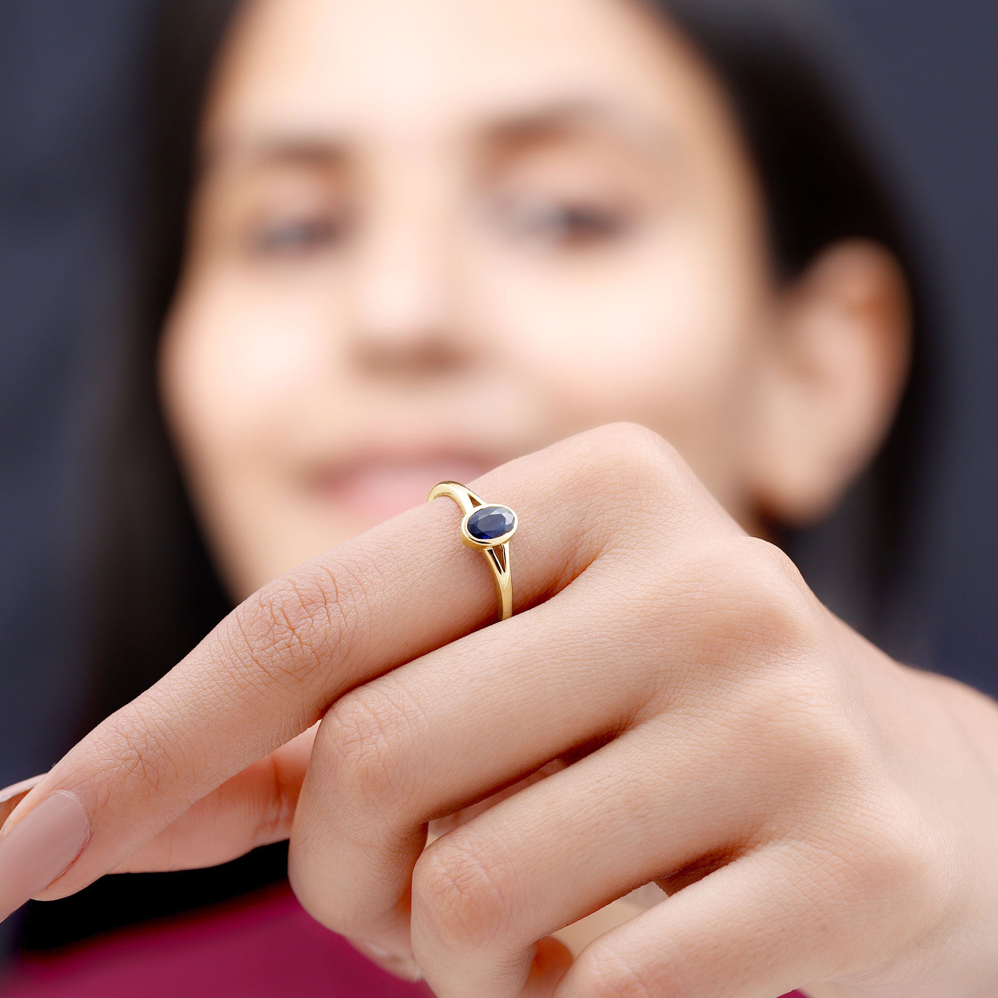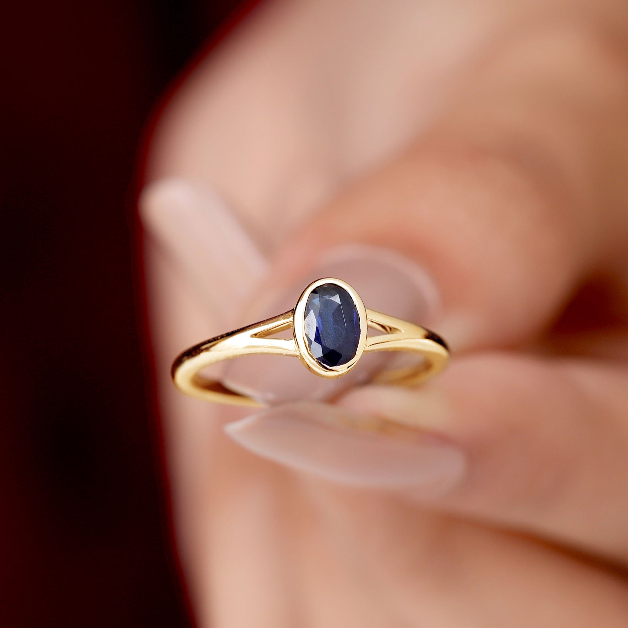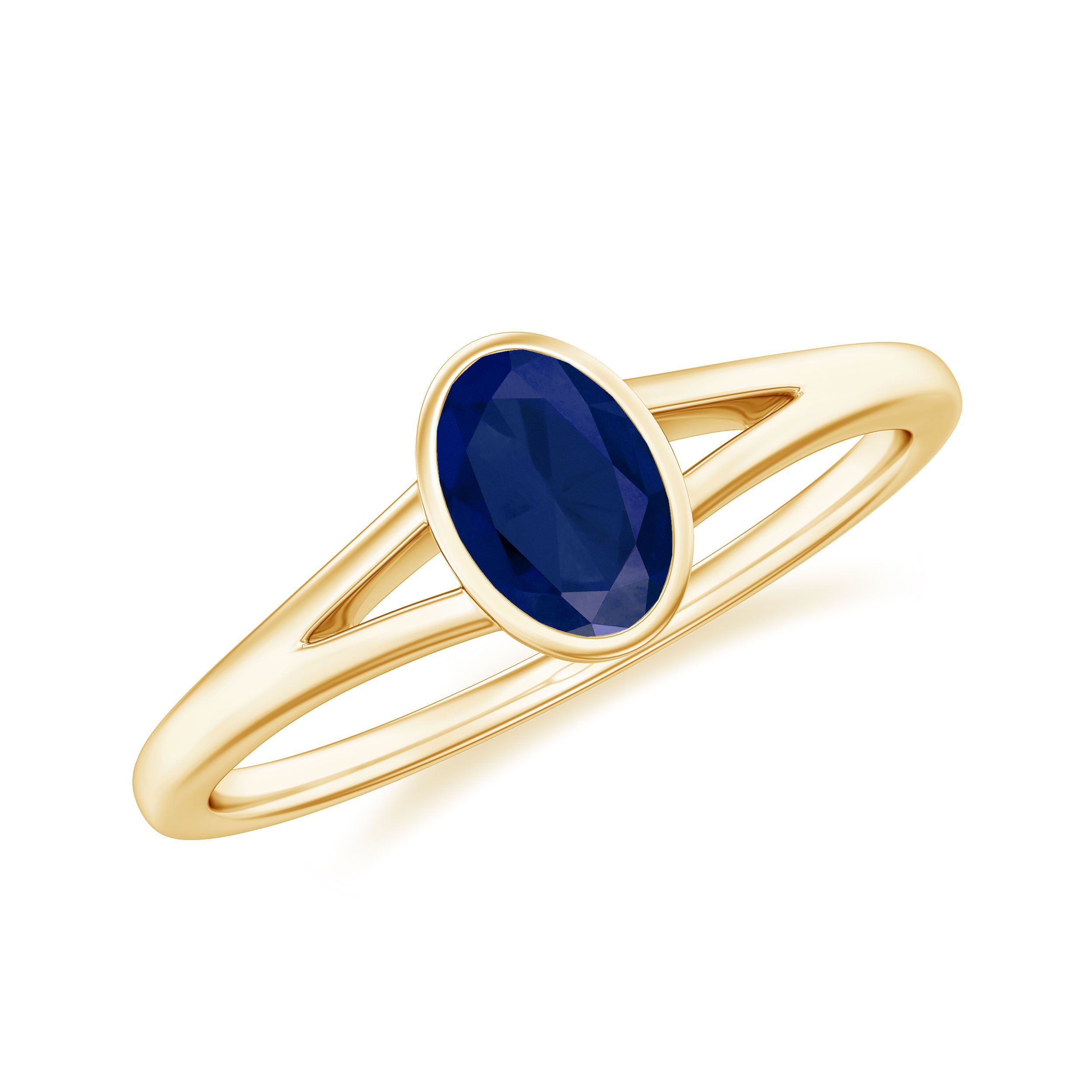 Grace your finger with the understated elegance of this Classic Blue Sapphire Ring. Adorned with an Oval Shape Blue Sapphire gemstone set delicately in a Bezel Setting in Split Shank, this Solitaire Engagement Ring is meticulously crafted in various metal options.