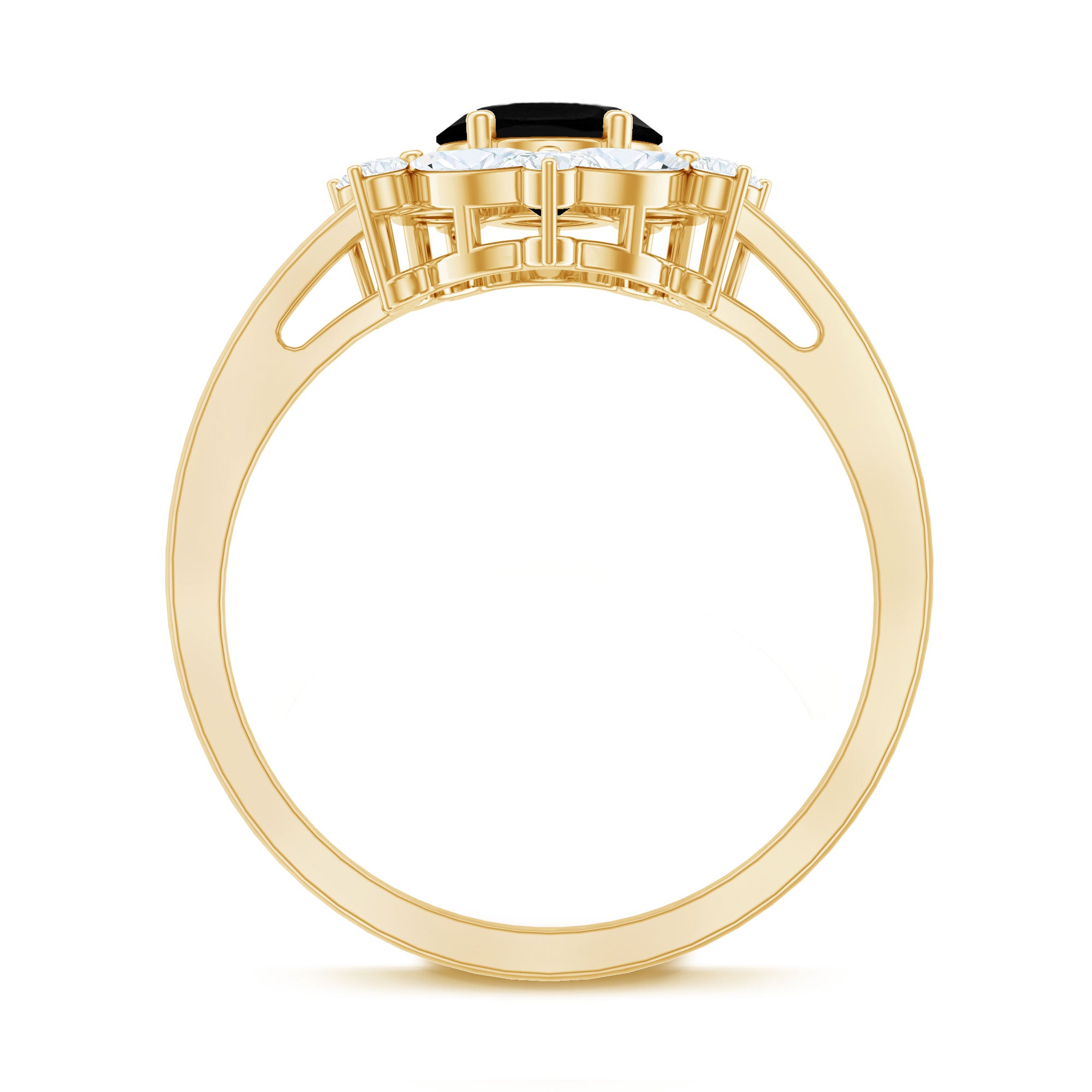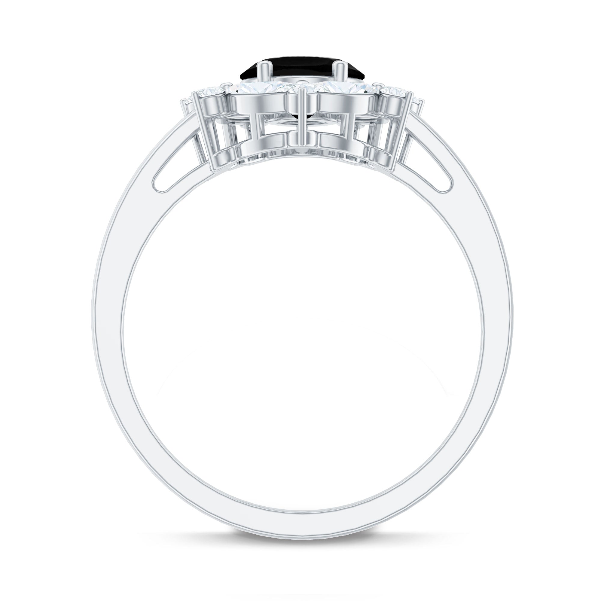 Crafted with love, this Halo Engagement Ring showcases an Oval Cut Lab Created Black Diamond secured in Prong Setting while Marquise and Round Shape Moissanite studded as Halo. You can present this charming Created Black Diamond Ring Set to your special one as a Birthday Gift or Anniversary Gift, she will definitely love it.