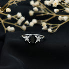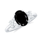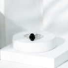 Oval Created Black Diamond Solitaire Ring with Diamond in Split Shank
