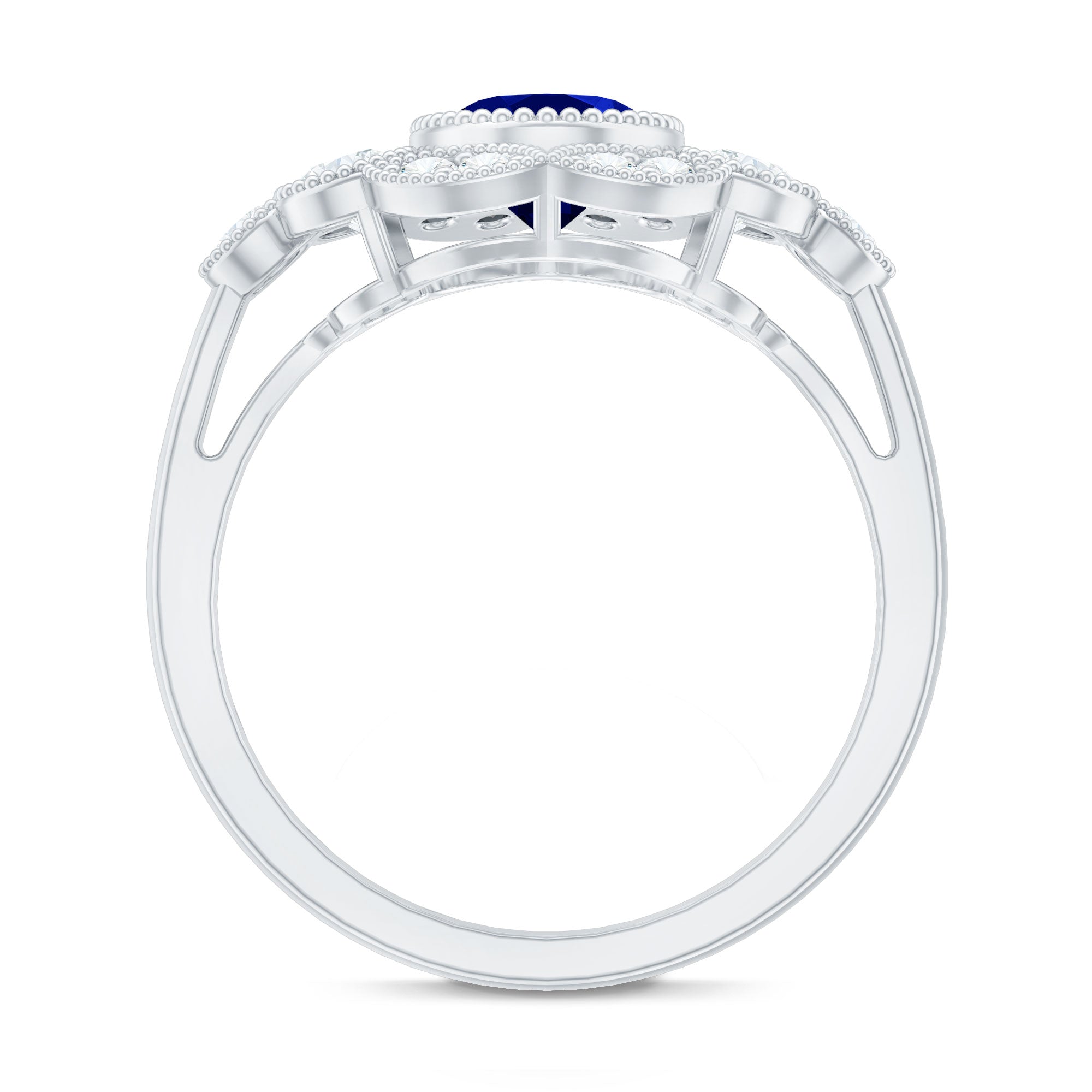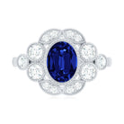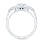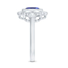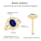 Oval Created Blue Sapphire Statement Engagement Ring with Diamond Halo