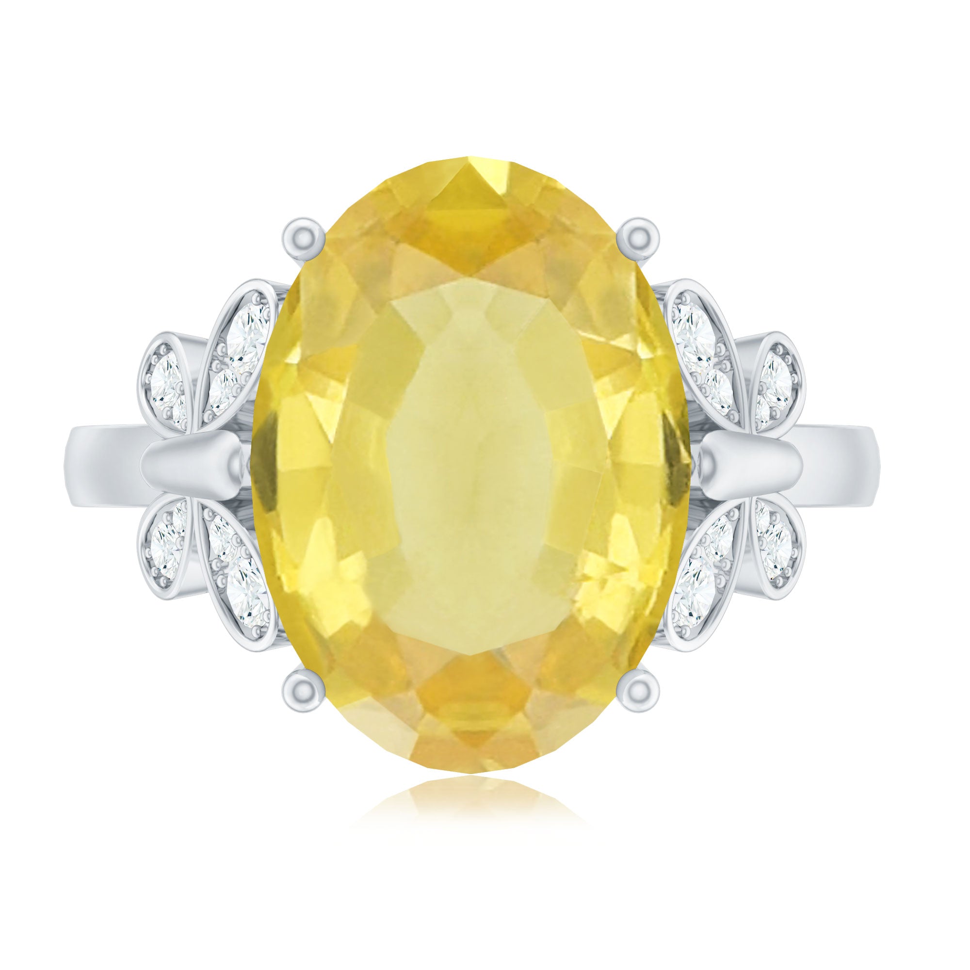 Oval Created Yellow Sapphire Solitaire Engagement Ring