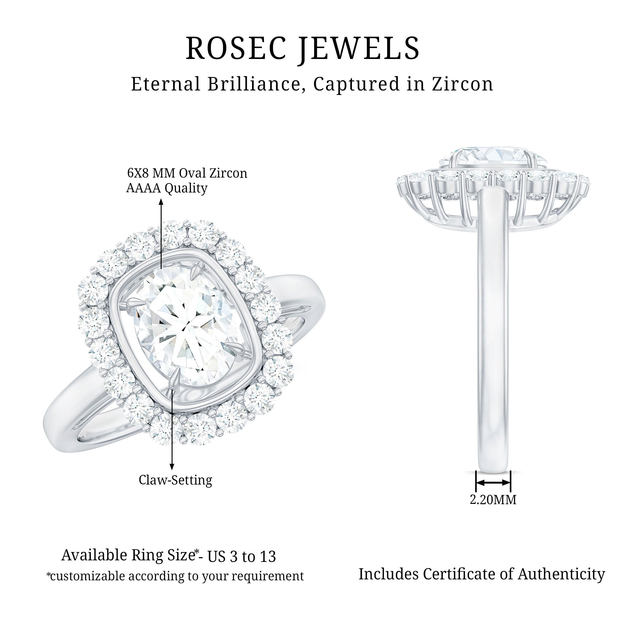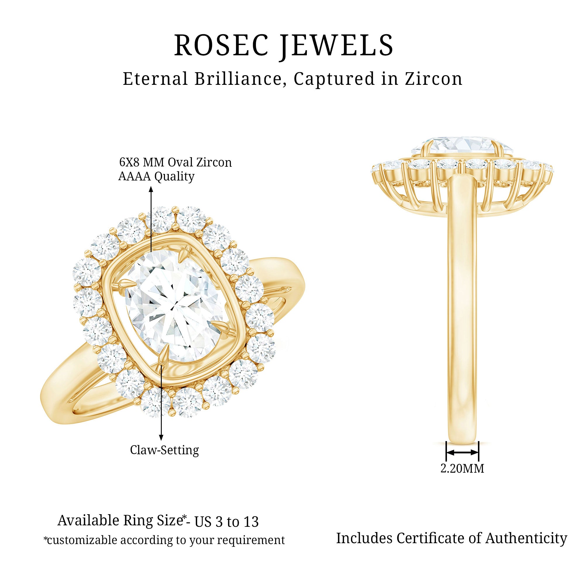 The Oval Cut Zircon in Claw Setting and Halo on Solitaire Engagement Ring is a stand-alone piece. Celebrate the milestone of your life with this CZ Ring.