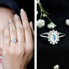 Inspired by Princess Diana’s iconic engagement ring, this Oval Moonstone Engagement Ring is a dreamy tribute to love, grace, and everlasting charm. Crafted in elegant white gold plated silver, this timeless piece is designed for the modern romantic who loves classic details. At the heart of this Halo Engagement Ring lies a glowing 5X7 MM oval cut moonstone, set in prong setting. Surrounding the center stone is a brilliant halo of round lab grown diamonds, each one is prong set to maximize sparkle. The contrast between the smooth shimmer of the moonstone and the fiery brilliance of the diamonds creates a breathtaking balance. The band itself is smooth and polished, keeping the focus on the intricate halo and the luminous center. Its white gold tone adds warmth and romance, complementing the beauty of the moonstone perfectly. Whether you are planning a proposal, celebrating an anniversary, or simply falling in love with something beautiful, this Princess Diana Inspired Oval Engagement Ring makes a statement that is both timeless and unique. With its royal-inspired design and modern craftsmanship, its a ring meant for someone who shines with quiet strength and undeniable elegance. This Moonstone and Diamond Ring is not just jewelry, it is a symbol of love that lasts, a story that glows, and a promise as eternal as the moonlight.