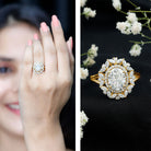 This Oval Moissanite Ring represents everlasting love with its stunning design, adding a hint of elegance and sparkle to your engagement day. It features a 7X9 MM Oval Shaped Moissanite set in a prong setting, surrounded by a double halo of petite round and marquise cut Moissanite stones. The eye-catching design includes a split shank that really enhances its overall look. With maximum brilliance and a unique mix of classic charm and modern flair, this Chunky Engagement Ring captures hearts with its timeless beauty. On your special day, adorn her finger with our classic 2 Carat Oval Moissanite Ring, which has a sophisticated touch that reflects its enduring charm and elegance. This Moissanite Engagement Ring for Women is a timeless piece that will draw attention to her, making her the star of the show. It enhances her beauty and serves as a constant reminder of cherished memories of love.