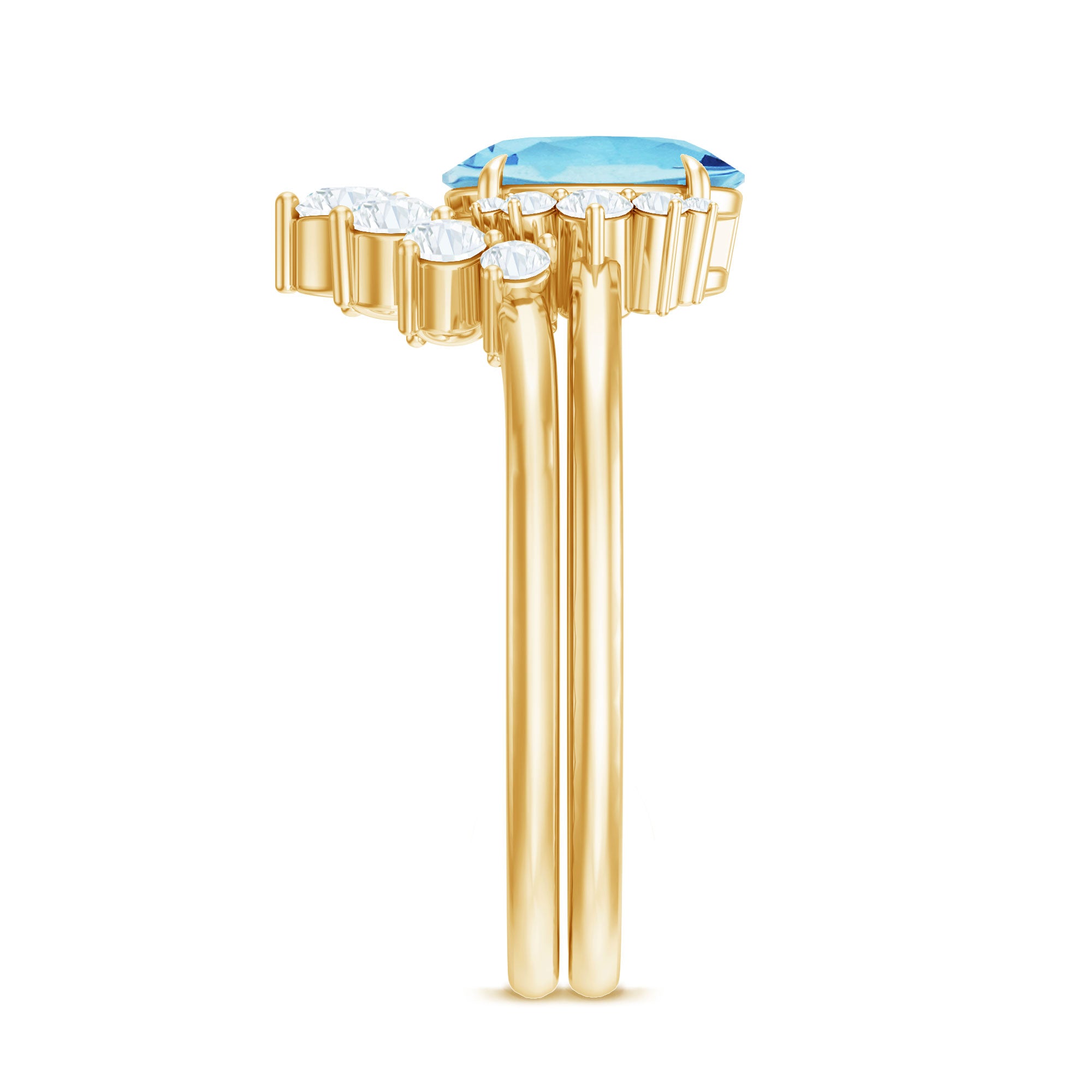 Embrace the perfect blend of beauty and elegance with this exquisite Solitaire Wedding Ring Set, featuring a mesmerizing 6X8MM Oval Shape Aquamarine stone that sits elegantly as the centerpiece in secure claw setting. The solitaire is complemented by sparkling Round Shape Diamond stones that are set in prong setting on the curved enhancer band. Crafted in high quality metal, this Aquamarine and Diamond Ring Set exudes a luxurious and opulent charm, making it the perfect choice to grace your special day. Every gemstone is certified and meticulously inspected for quality, so you can trust that your Oval Bridal Ring Set will endure for years to come. This design beautifully combines comfort and style, making the Engagement Ring and Wedding Band Set perfect for everyday wear while still looking fabulous for special events. With its contemporary sparkle, this set will always remind her of the promises you cherish.