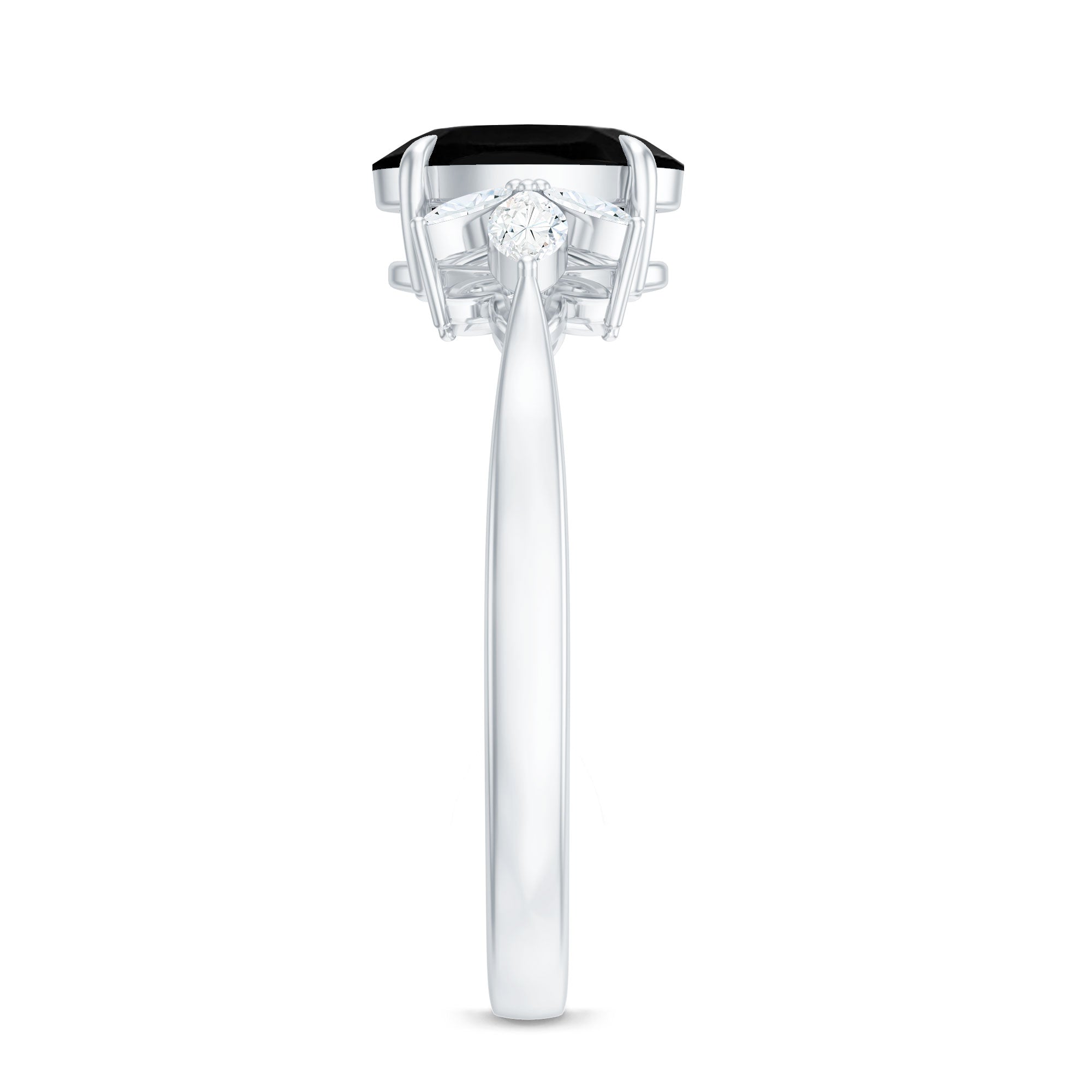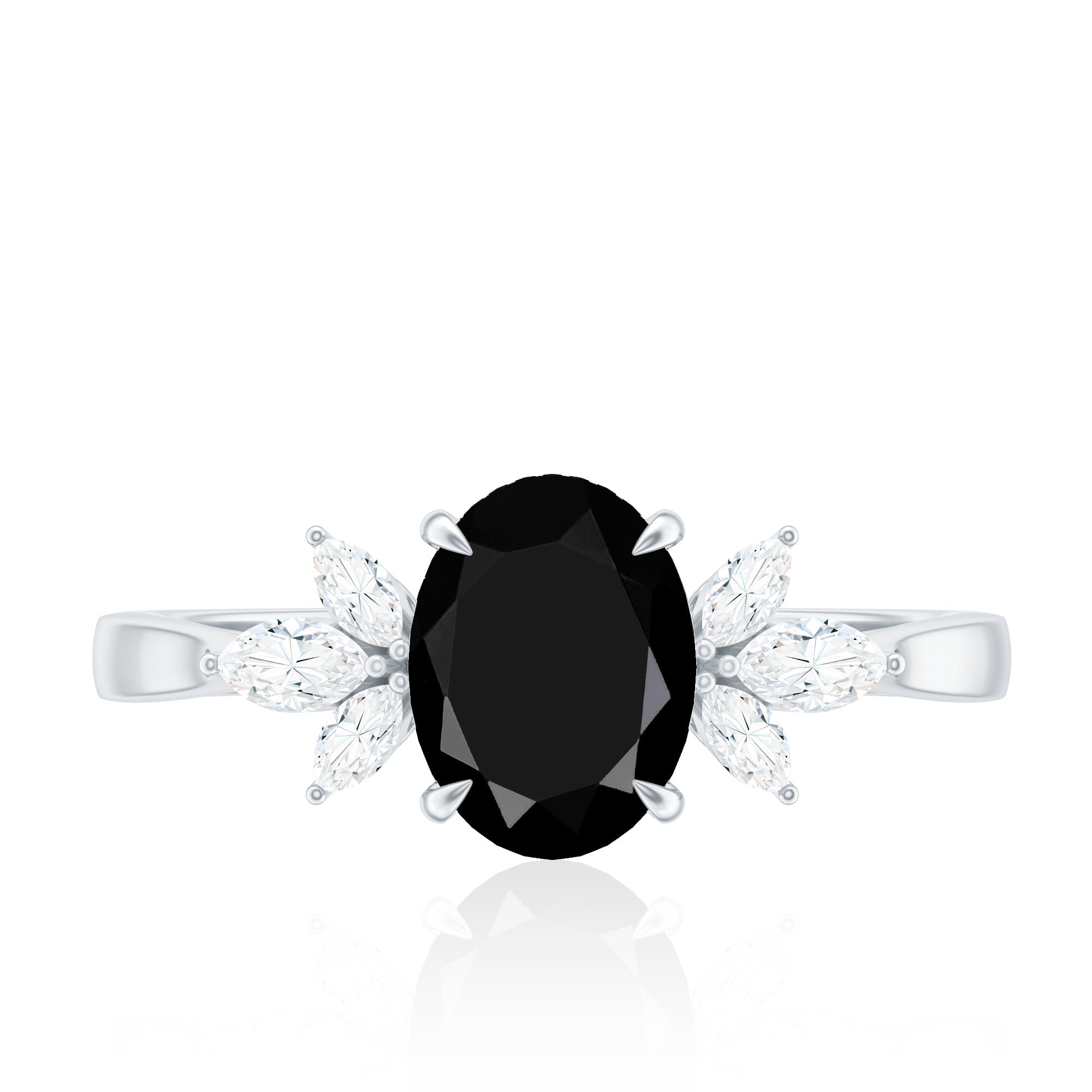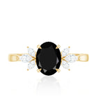 Oval Cut Black Onyx Engagement Ring with Diamond Trio