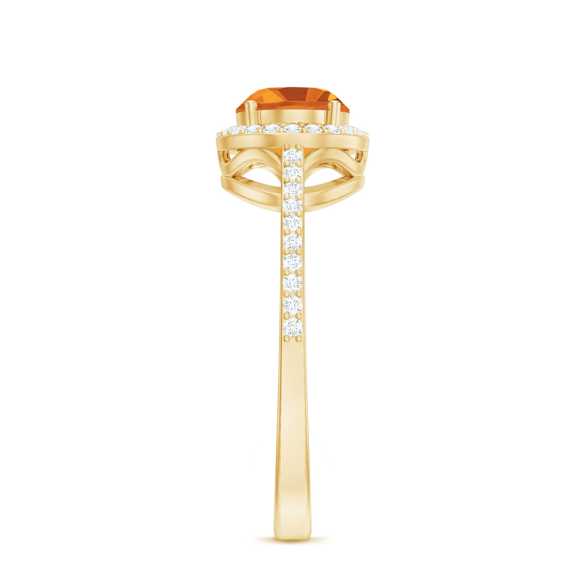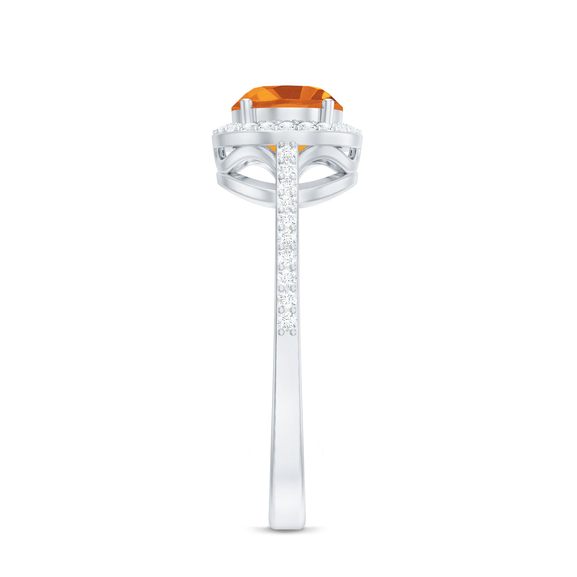 Oval Cut Citrine East West Engagement Ring with Diamond Halo