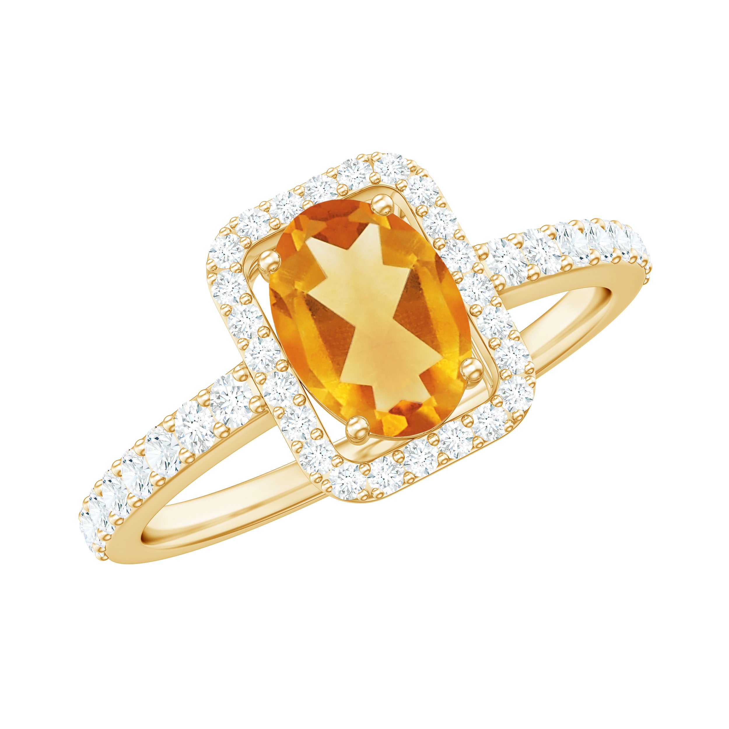 Oval Cut Citrine Engagement Ring with Moissanite Halo