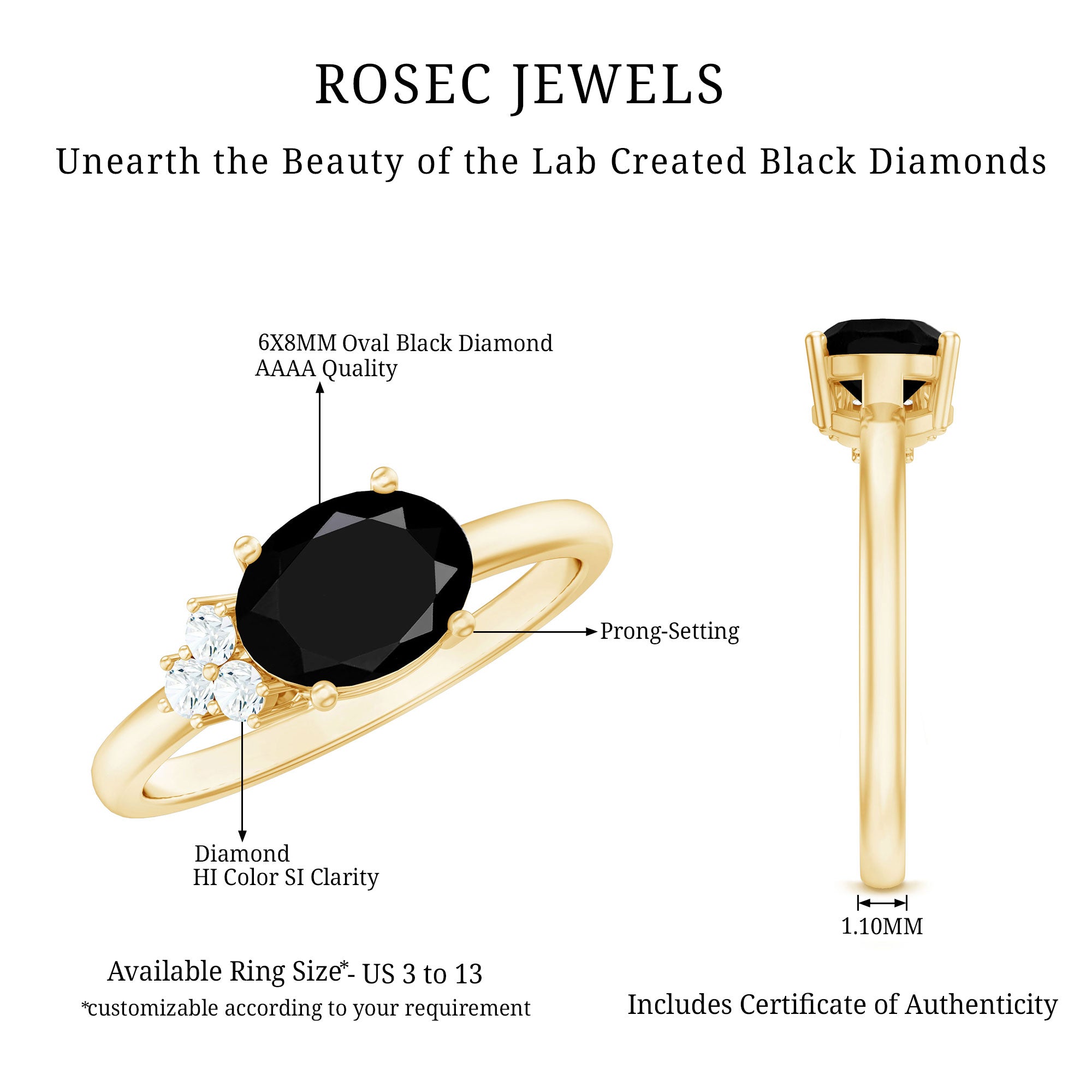 Oval Cut Created Black Diamond Minimal Ring with Diamond Trio