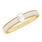 Experience the timeless symbol of love and commitment with this classic Real Diamond Engagement Ring. With its sparkling stones and high quality metal, it is a simple yet elegant design that has stood the test of time. The Classic Ring features a 3X5 MM oval shaped diamond in the center flanked by pave set side stones, making this stunning piece more unique and elegant on its own. The prong setting ensures the correct placement and durability of the center stone. This Oval Engagement Ring is a beacon of love and hope, a promise of a lifetime of happiness together. At first glance to forever promises, this Oval Diamond Ring inspires you to glow even more and love with all your heart. Plus, your purchase includes a quality guarantee certificate and is elegantly wrapped in a chic, protective box, making it ideal for gifting or keeping safe when not worn. Give her this Side Stone Engagement Ring that is sure to catch the eye. Start your adventure with a sparkle that will be treasured for a lifetime.