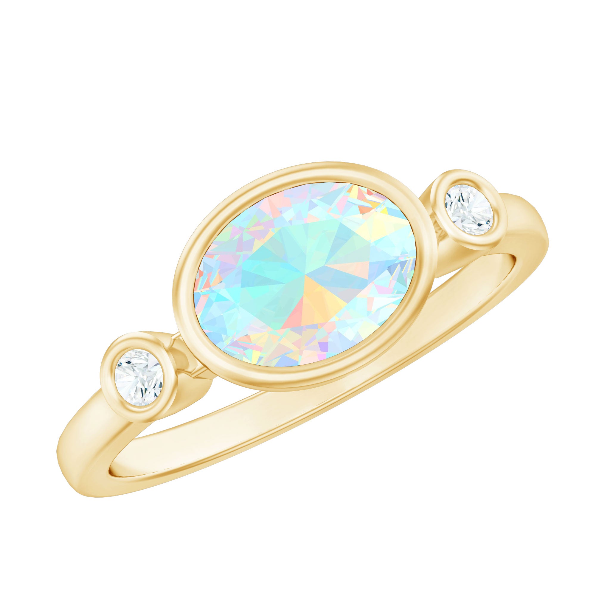 Oval Cut Ethiopian Opal East West Engagement Ring with Diamond