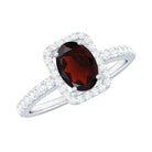 Classic 6X8mm Garnet Oval Engagement Ring with Diamond Halo