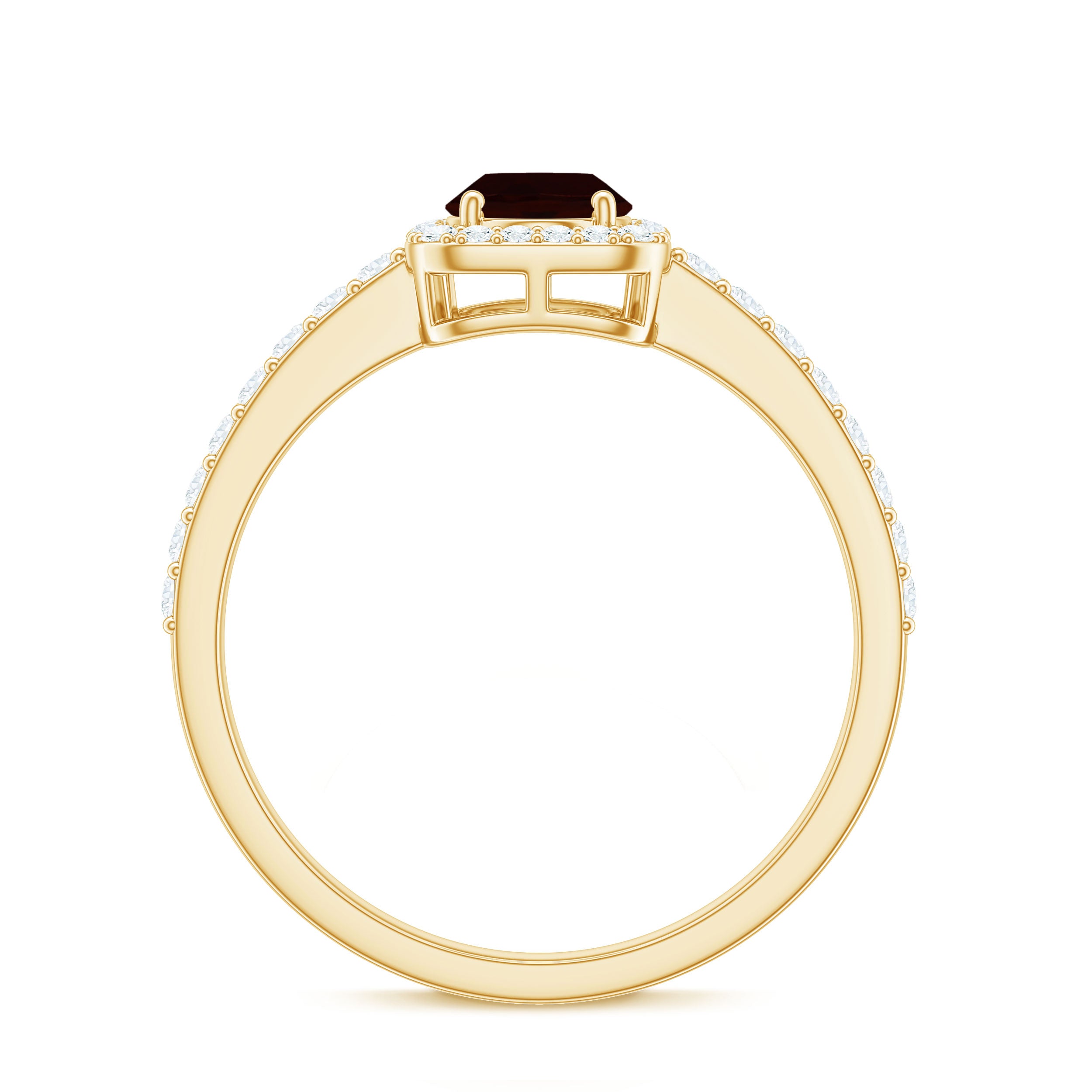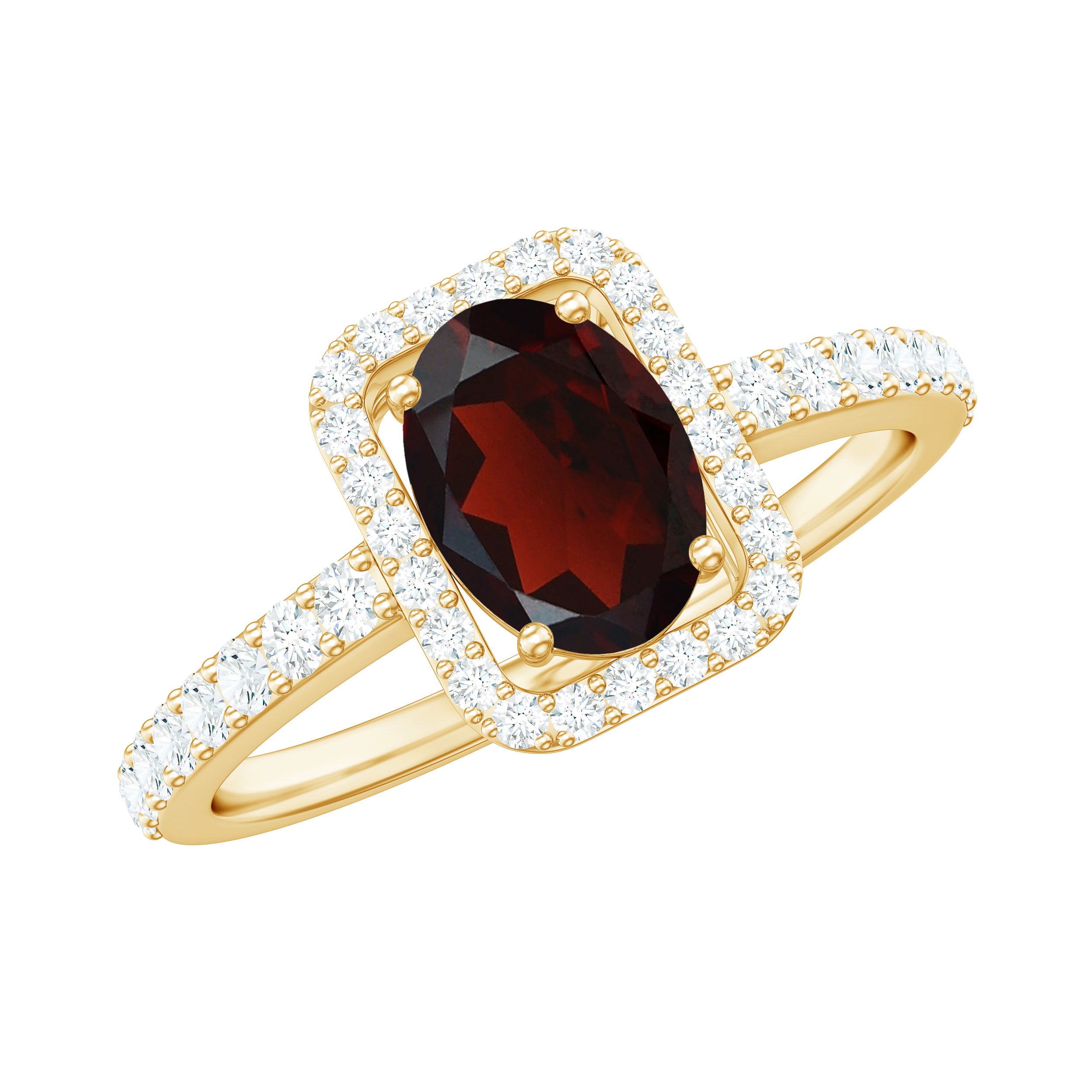 Enhance your love story with this Classic Engagement Ring, a piece that beautifully captures the essence of timeless romance. The rich, 6X8 mm Oval Shape Garnet at the center glows with a deep red hue, symbolizing the passion and commitment you share. Surrounded by a Halo of Diamond stones, the AAA Quality Garnet is further enhanced, creating a stunning contrast of light and color. The delicate Diamond Side stones along the band add extra sparkle, giving the ring an elegant look that is both classic and captivating. Crafted to perfection, this Oval Engagement Ring is a symbol of love that will last forever, its elegance and brilliance shining through with every glance. Presented in a signature jewelry box and available in a variety of sizes, this Garnet Engagement Ring is the perfect choice for a proposal that will take her breath away or a meaningful gift to mark a special occasion. Whether worn every day or on unforgettable moments, this Halo Engagement Ring is a celebration of your love that will endure through time.