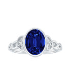 Oval Cut Lab Grown Blue Sapphire Celtic Knot Solitaire Ring
