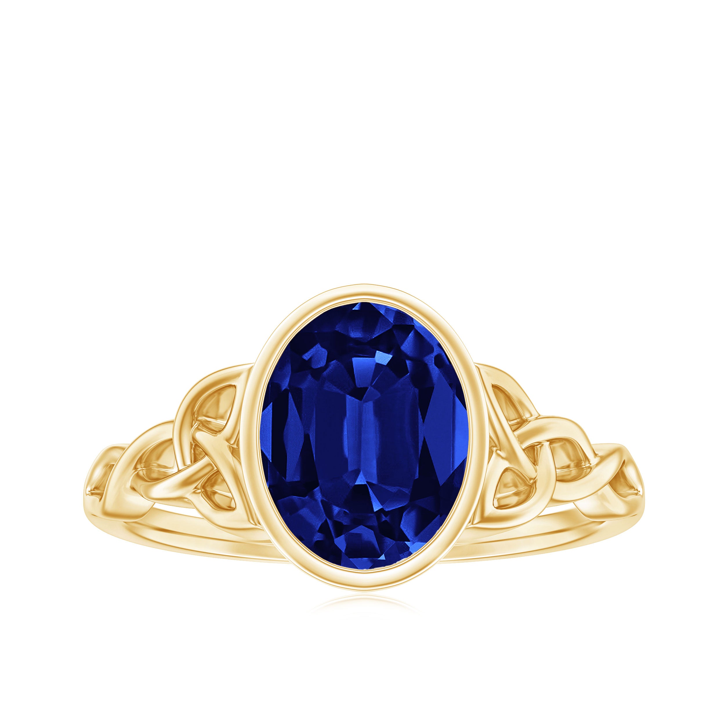 Unveil the pinnacle of refinement and grace with this Lab Grown Blue Sapphire Solitaire Ring, a flawless embodiment of your profound feelings. This captivating ring features an Oval Shaped Lab Grown Blue Sapphire nestled gently within Bezel Setting, radiating an enchanting and alluring aura. Inspired by Celtic art, this Solitaire Ring will forever stand as a treasured symbol of your lasting love and devotion in her heart.