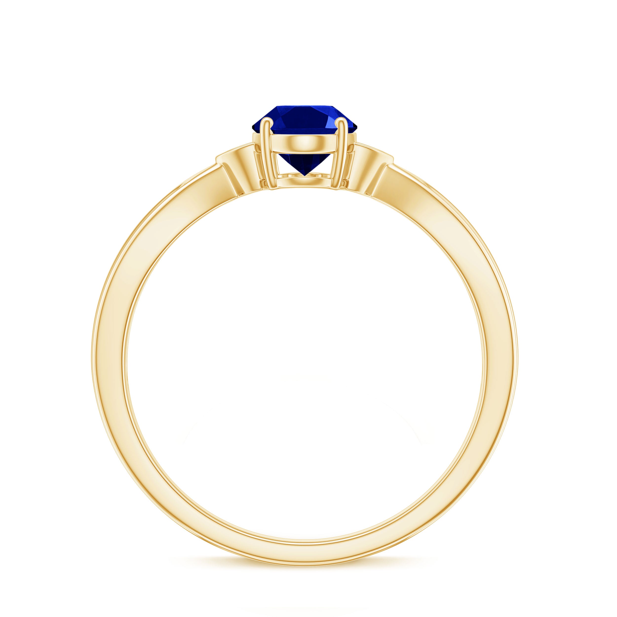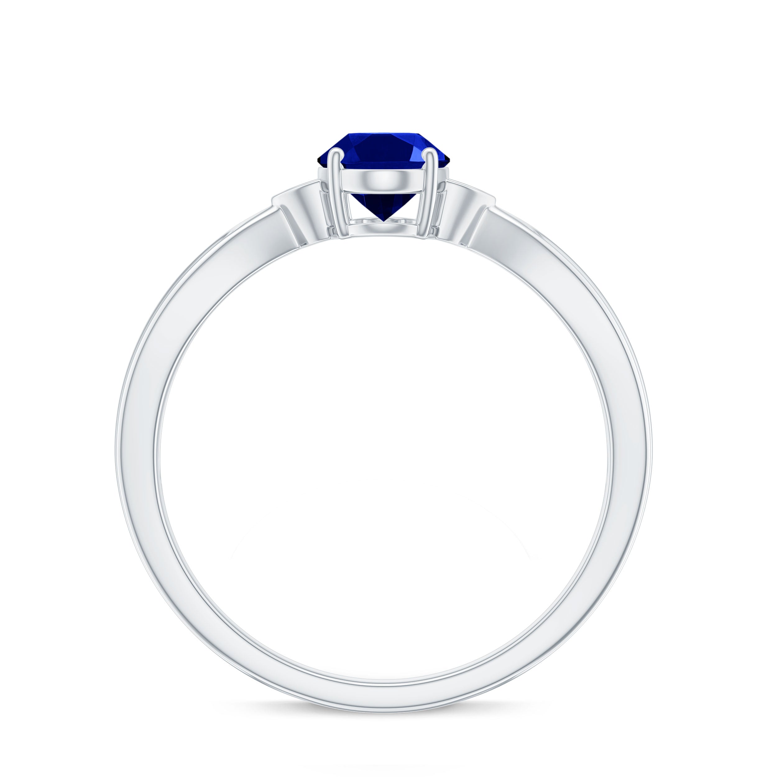 Surprise your beloved with this exquisite Solitaire Ring, a gift that will leave her utterly captivated. This Ring features a splendid Oval Cut Created Blue Sapphire in a secure prong setting with round diamonds. Its elegant design is perfect for celebrating your love and commitment, making it an ideal choice for your special occasion.