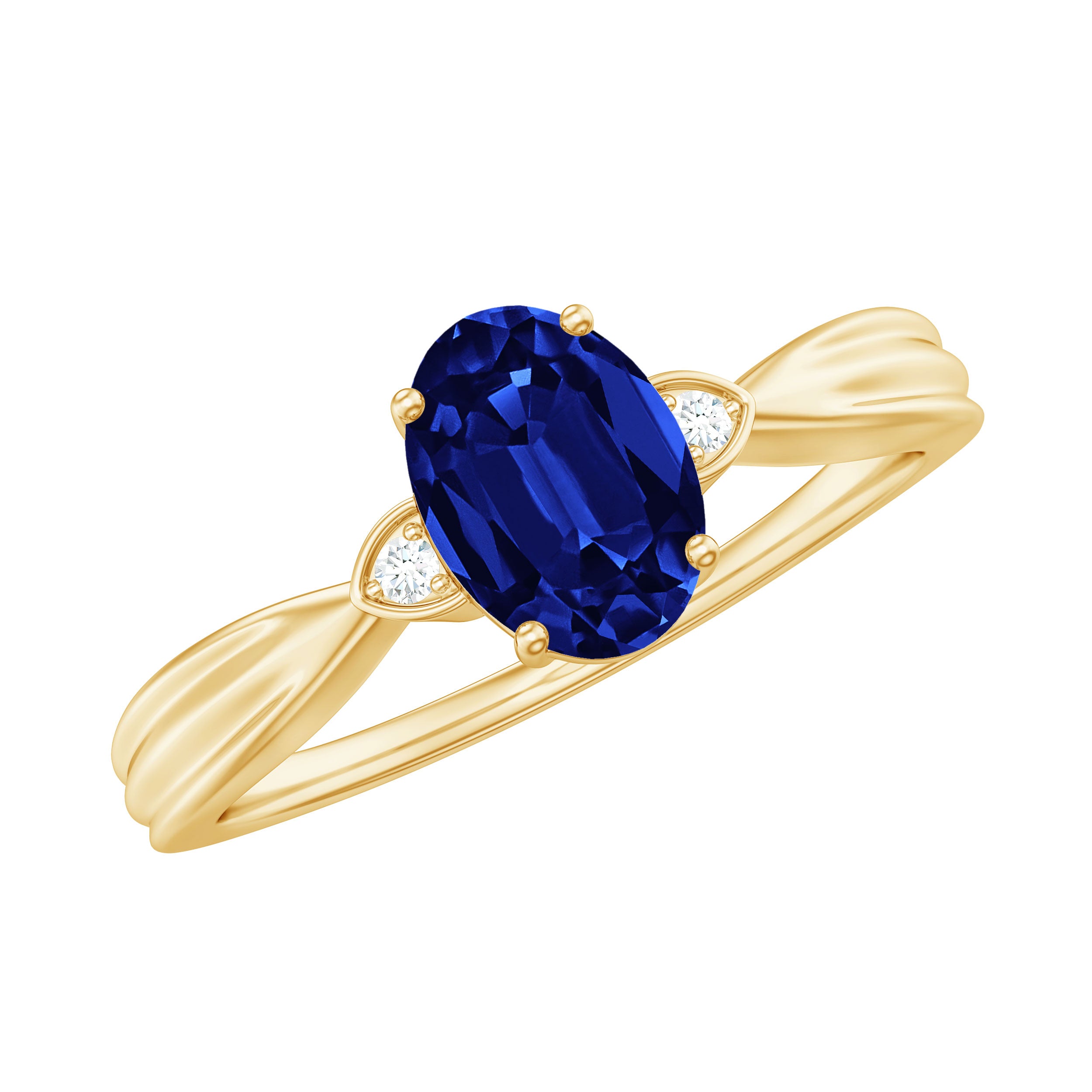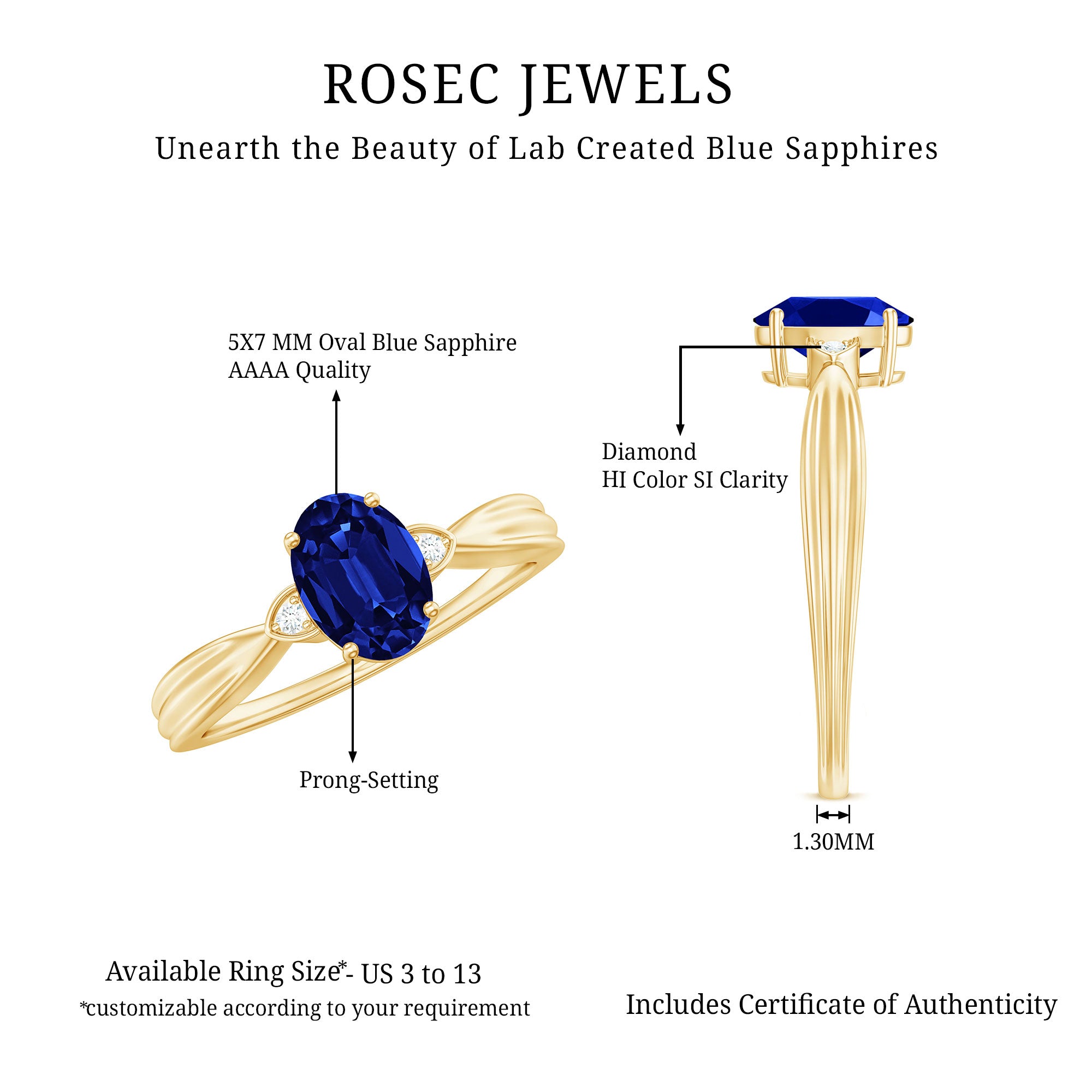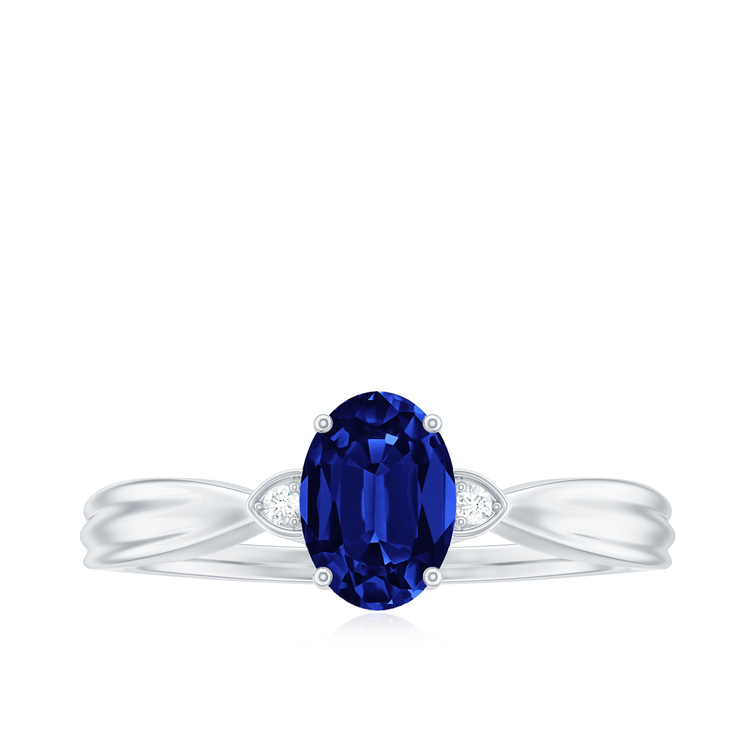 Oval Cut Lab Grown Blue Sapphire Solitaire Ring with Diamond