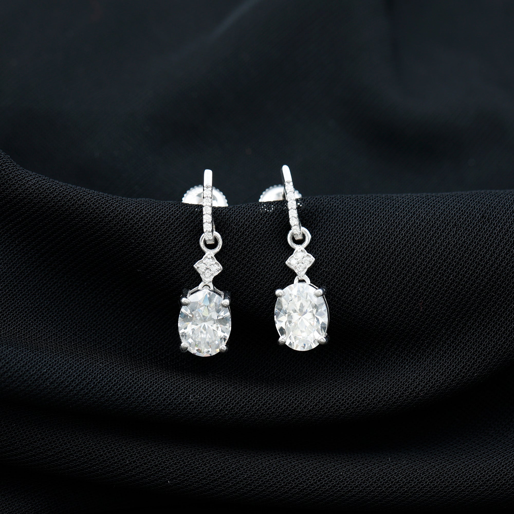 Oval Cut Lab Grown Diamond Dangling Earrings For Bride