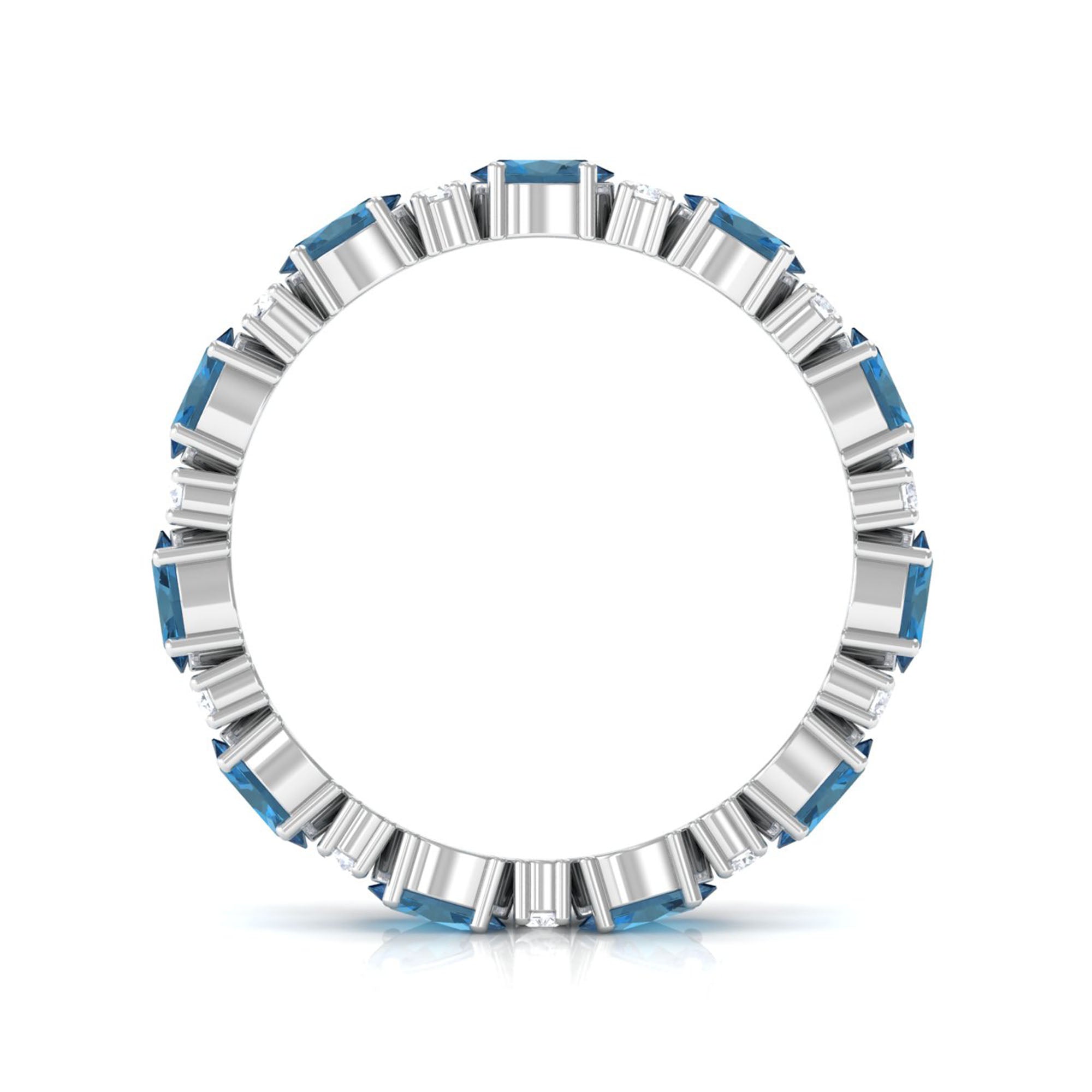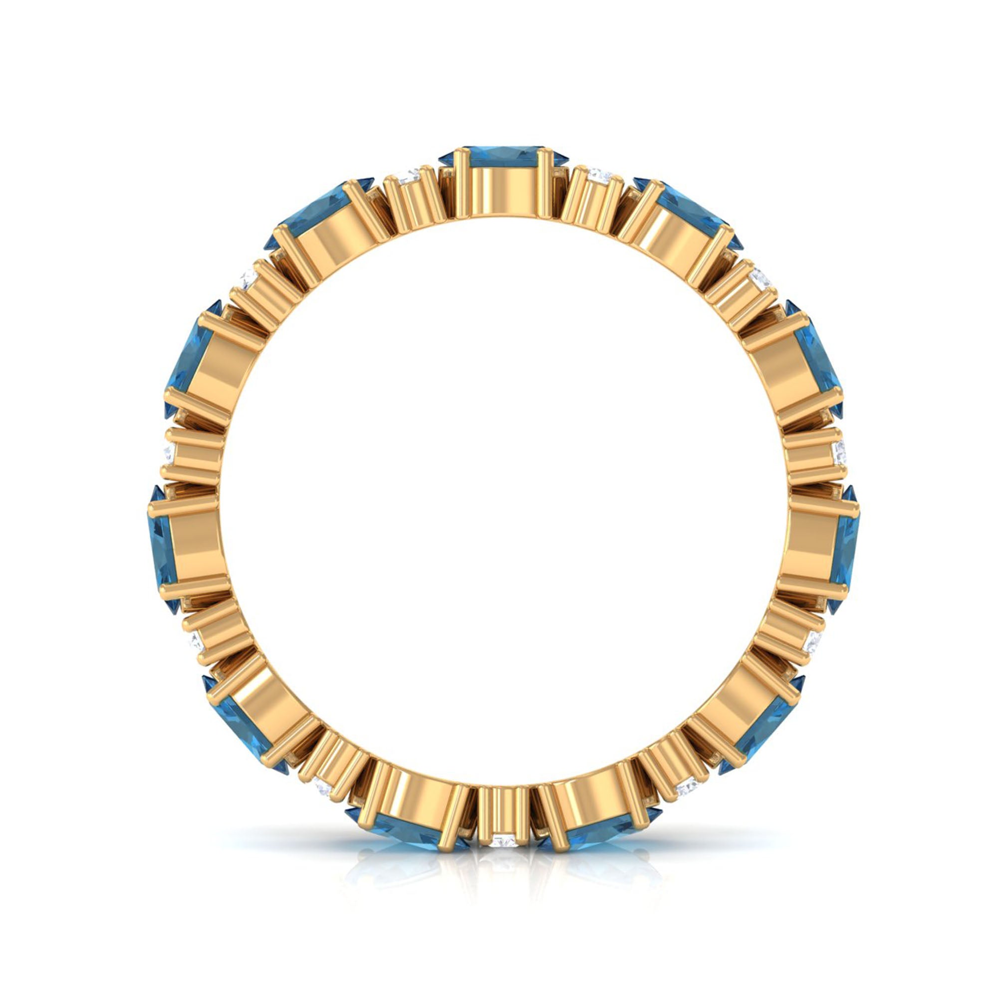 Enhance your daily style with a touch of elegance through this exquisitely crafted London Blue Topaz Eternity Ring. It is designed to be both understated and striking, showcasing a refined arrangement of oval cut London Blue Topaz and round Diamond stones in an alternating fashion. Each stone is meticulously positioned in a secure prong setting, providing the Eternity Stackable Ring with a sleek and polished appearance. The striking contrast between the bold blue topaz and the shimmering diamonds imparts a timeless and distinctive quality. This London Blue Topaz Ring is an excellent option for stacking or wearing on its own. It offers a comfortable fit on the finger and complements both casual and formal attire. Whether you are going to work or attending a special event, this Full Eternity Ring contributes just the right amount of charm. Additionally, it serves as a thoughtful gift, particularly for individuals born under the Leo zodiac sign. Whether you are purchasing for yourself or seeking a meaningful present, this ring is a beautiful way to honor style, strength, and significant moments. Crafted with care and meticulous attention to detail by Rosec Jewels, it is a piece to cherish every day.