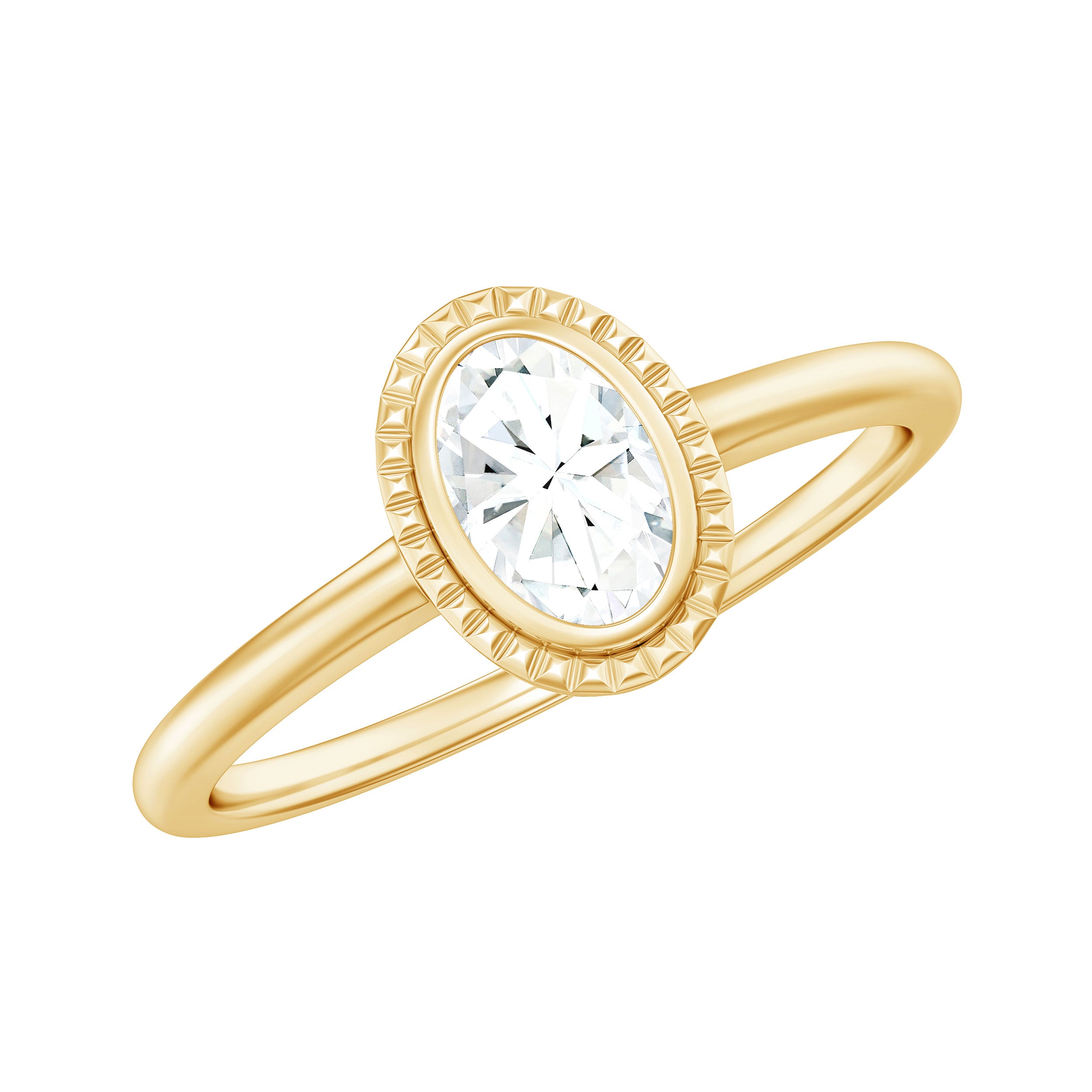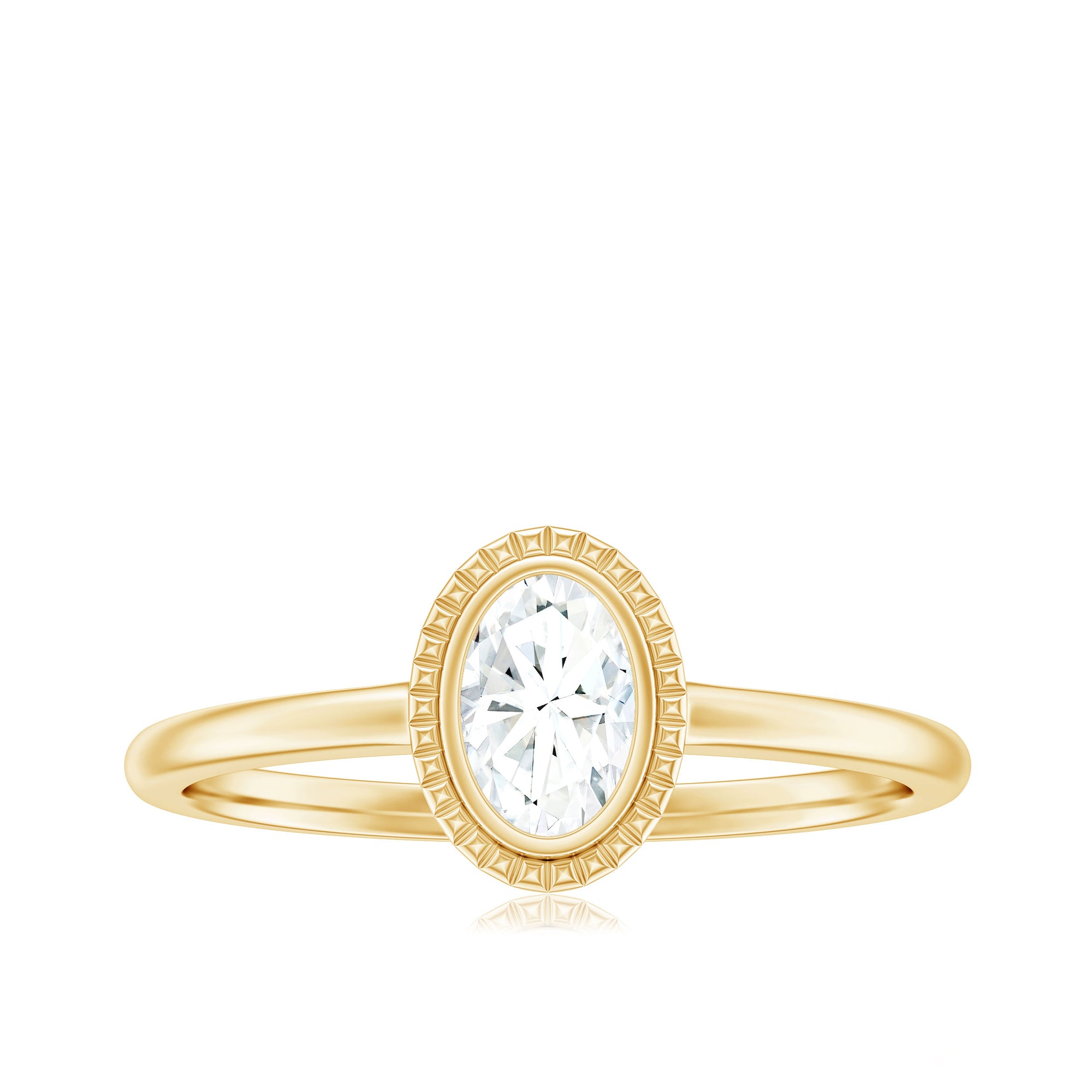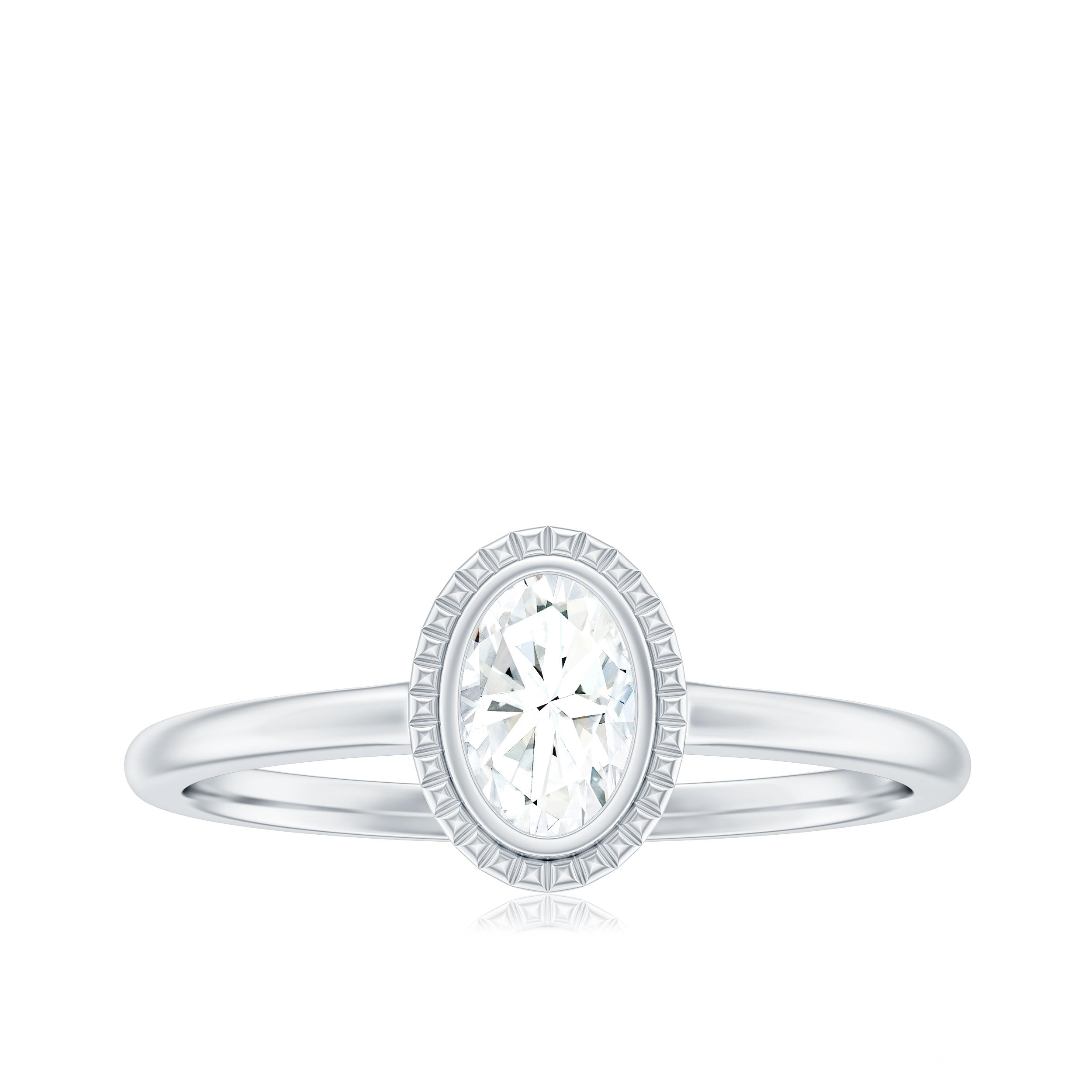 4X6mm Oval Cut Moissanite Solitaire Ring in Bezel Setting