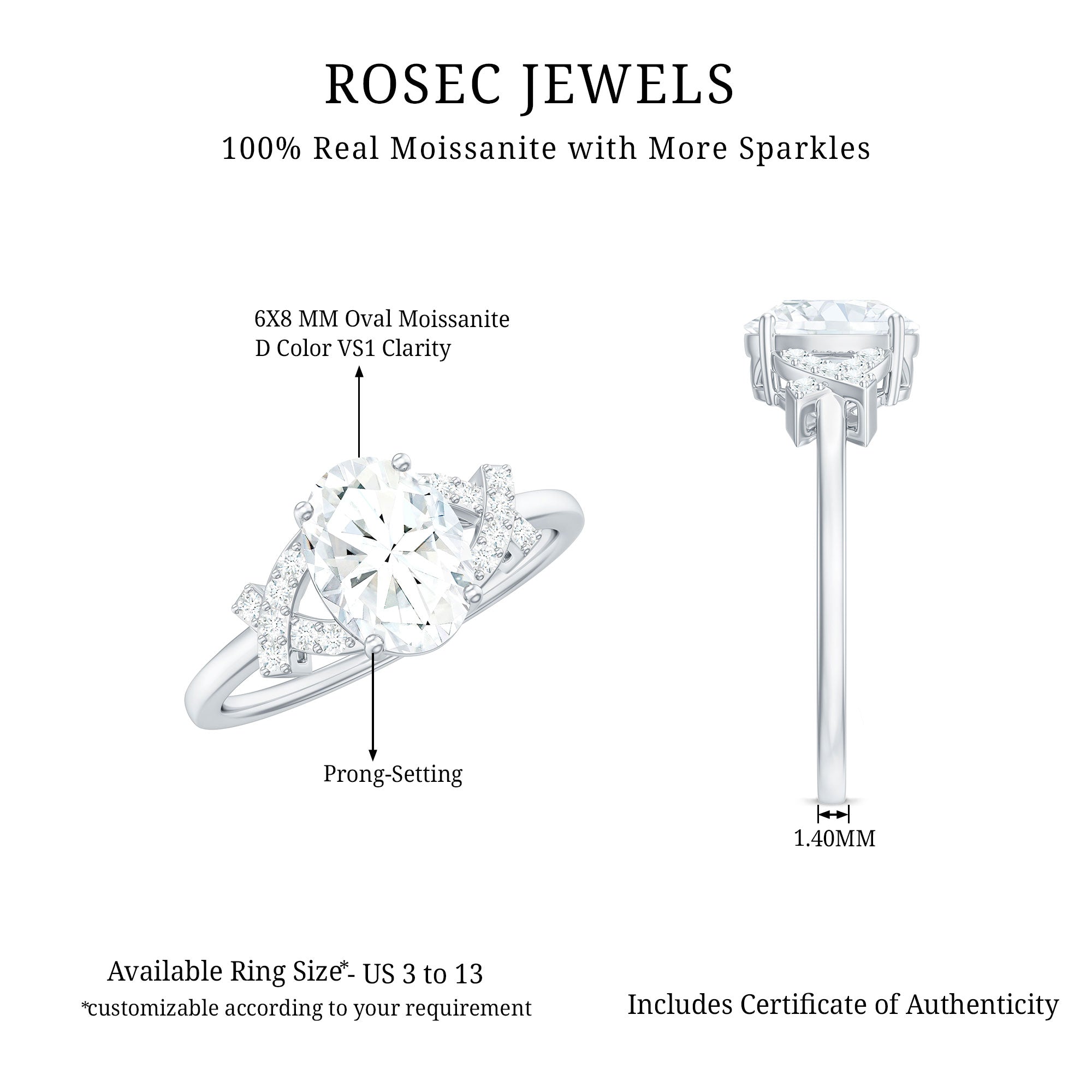 Bezel Set Oval Cut Moissanite Promise Ring in Split Shank