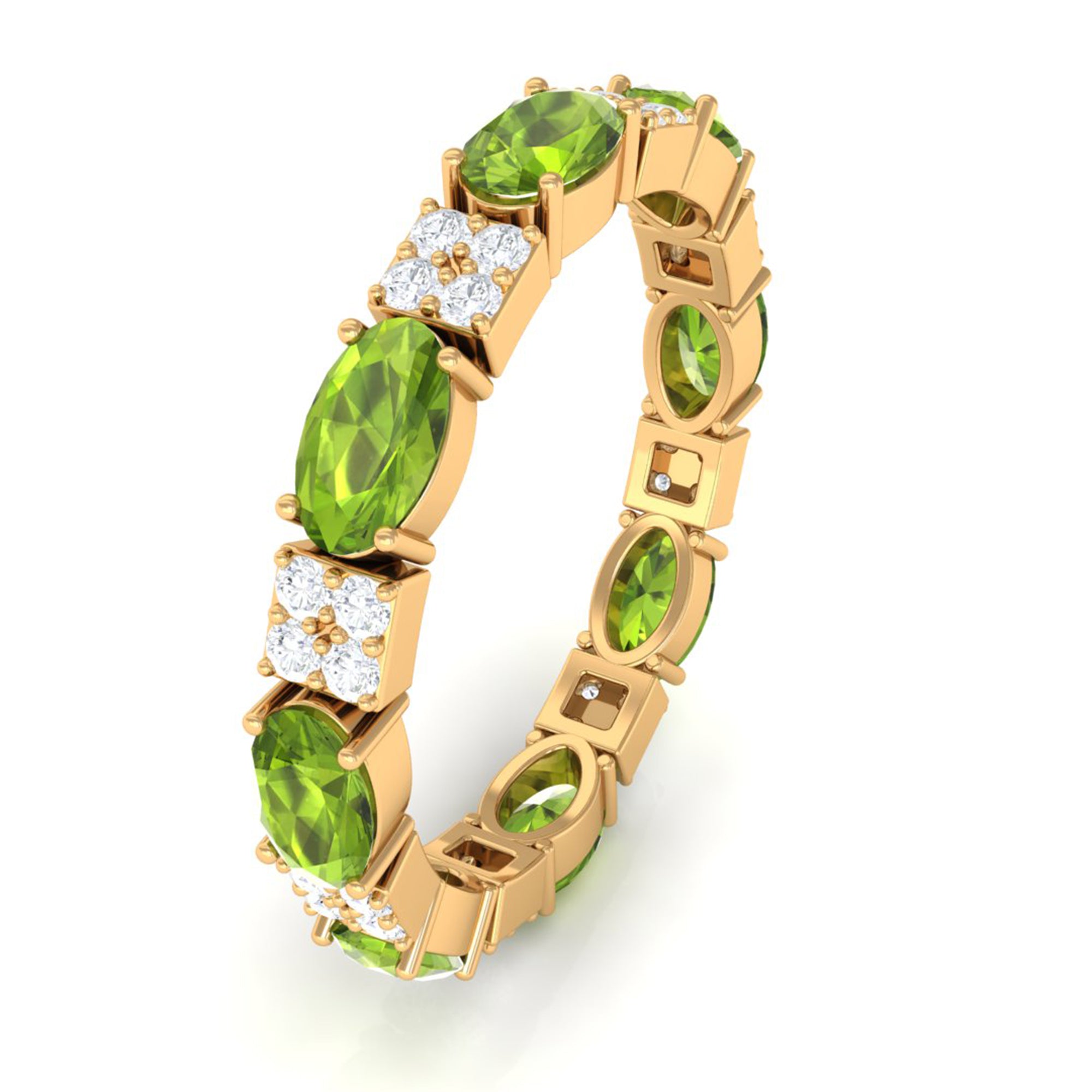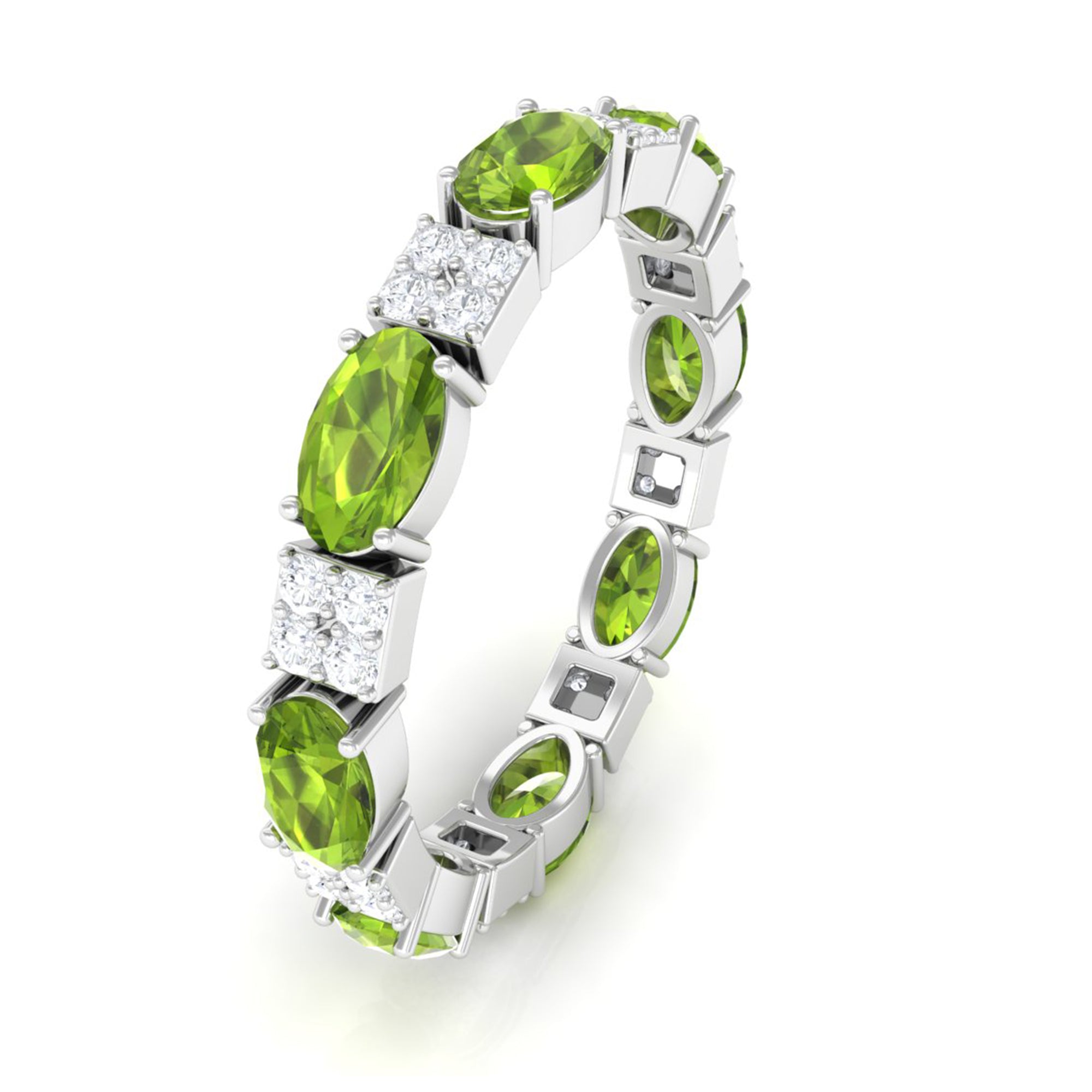 Embrace eternal beauty with this Oval Cut Peridot and Diamond Eternity Ring, a dazzling circle of celestial charm and everlasting allure.