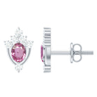 Oval Cut Pink Sapphire and Diamond Stud Earrings for Women